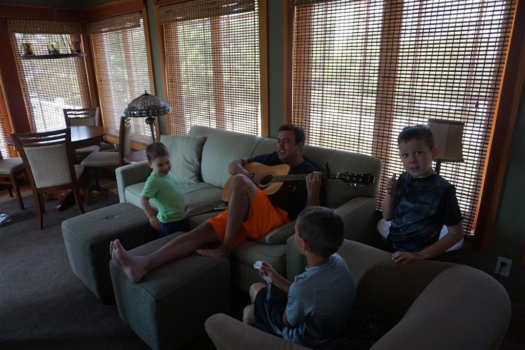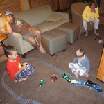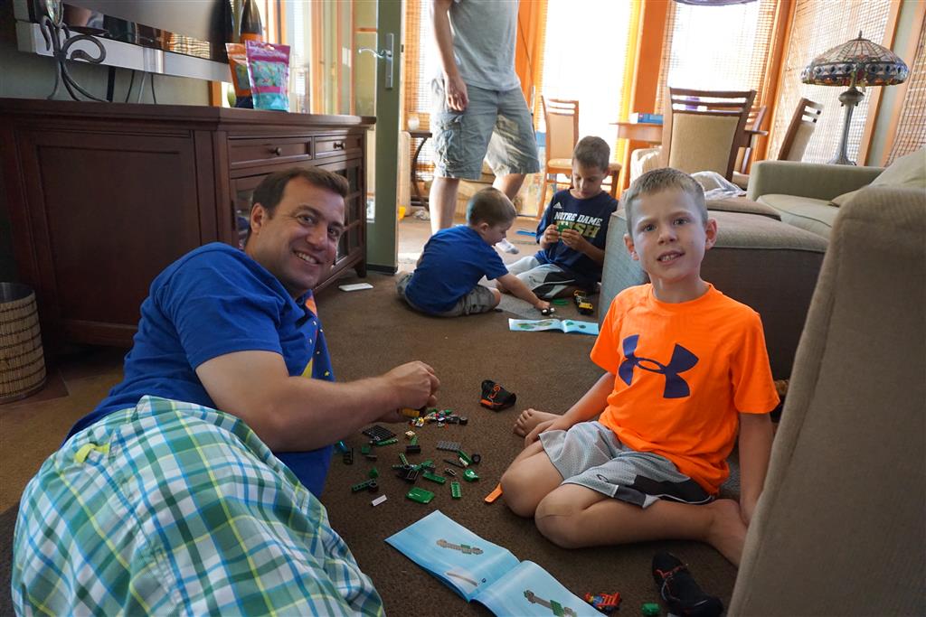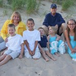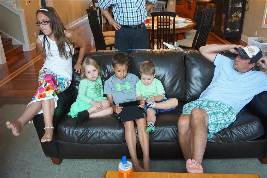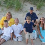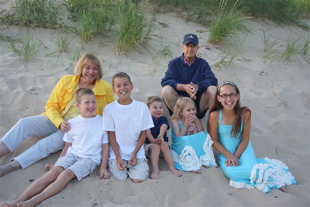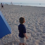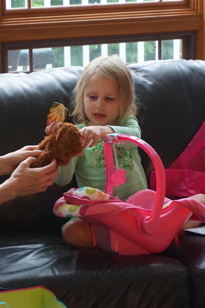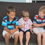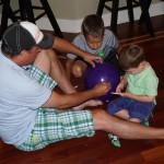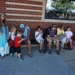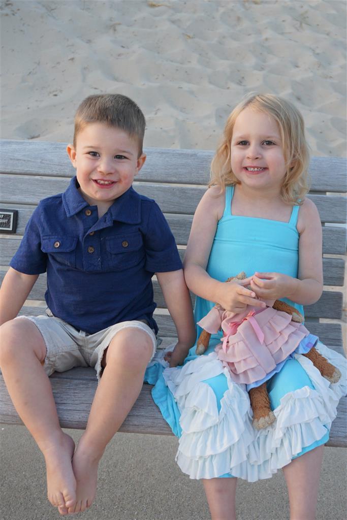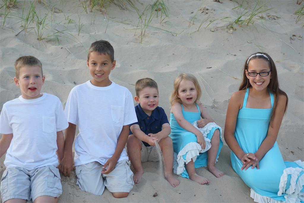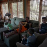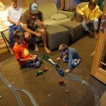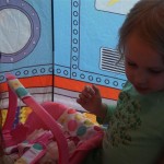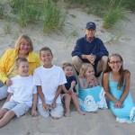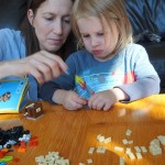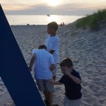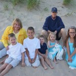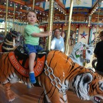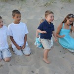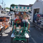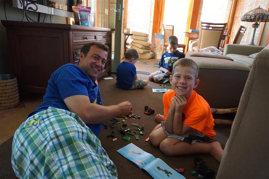 Eleanor and Henry had a fun week at the beach. We had an early celebration for Eleanor’s birthday, and she received a super fun rocket ship play tent, and some great puppets and a puppet theater. I’m sure both will be big hits! Uncle B brought along a bunch of Legos for rainy day entertainment – Eleanor really liked doing the small size and worked with Mom to follow the instructions and pick out all the right pieces. Henry loved the train, although he couldn’t participate much in the building process. We seem to have neglected to take any pictures while enjoying the beach – but we definitely enjoyed swimming and building sand castles. Eleanor spent a long time in the water, but preferred to be on a float toy or held – we couldn’t convince her that swimming would be the same as in the pool. We also enjoyed lots of trips to the ice cream shop in town, and a bicycle built for seven! Henry slept in a big bed every night except the first, and did great! He never fell off, although he did seem to end up snuggled up with Dad by morning time We had a cold front move through one day, so we spent the afternoon at a blueberry patch. We also seemed to have missed documenting that with photos, but I’m pretty sure it was a first for both Eleanor and Henry. Unfortunately, they both fell asleep in the car ride on the way there, so they were a bit groggy when we got there.