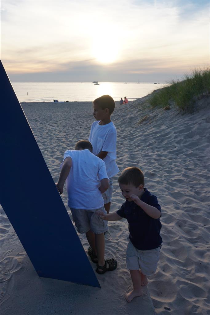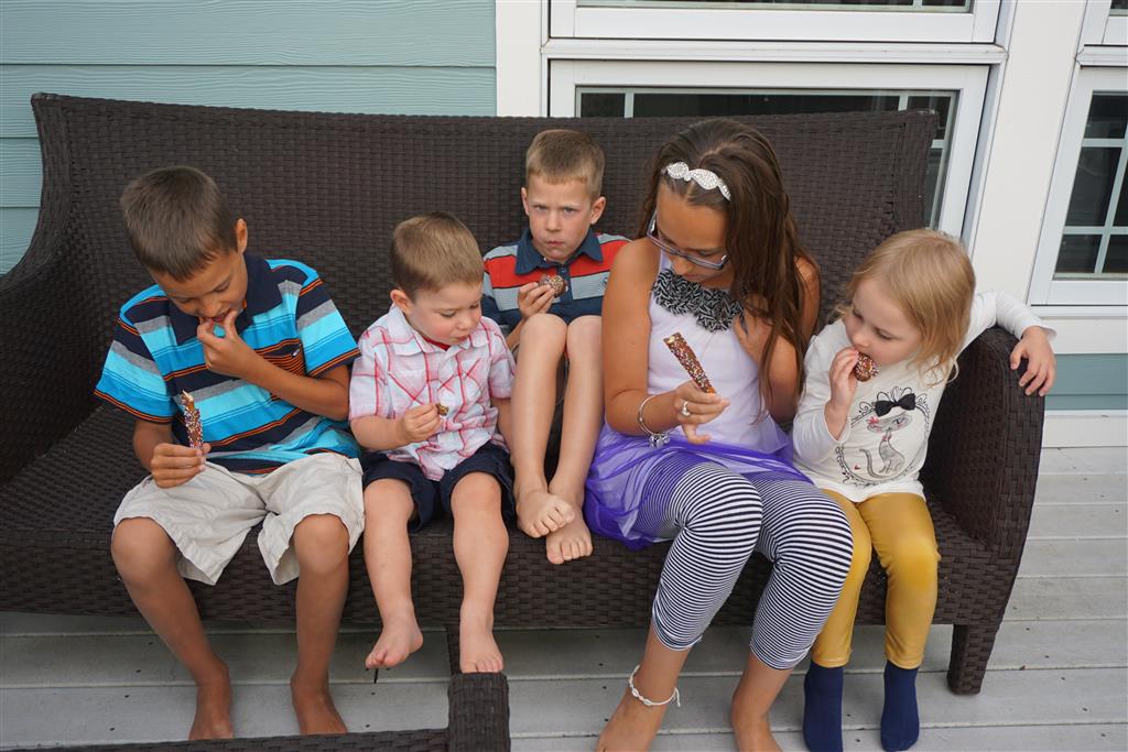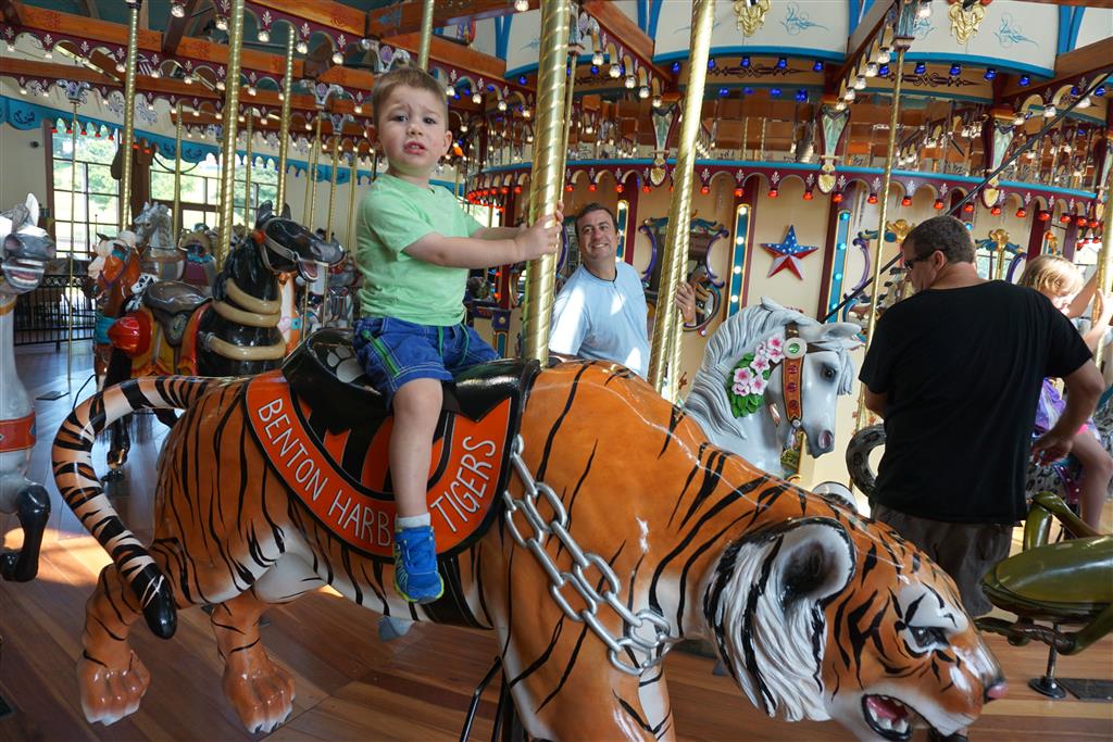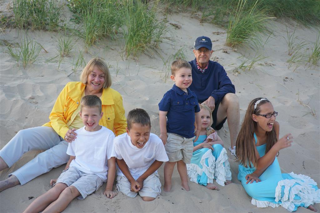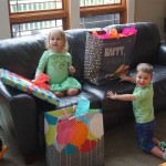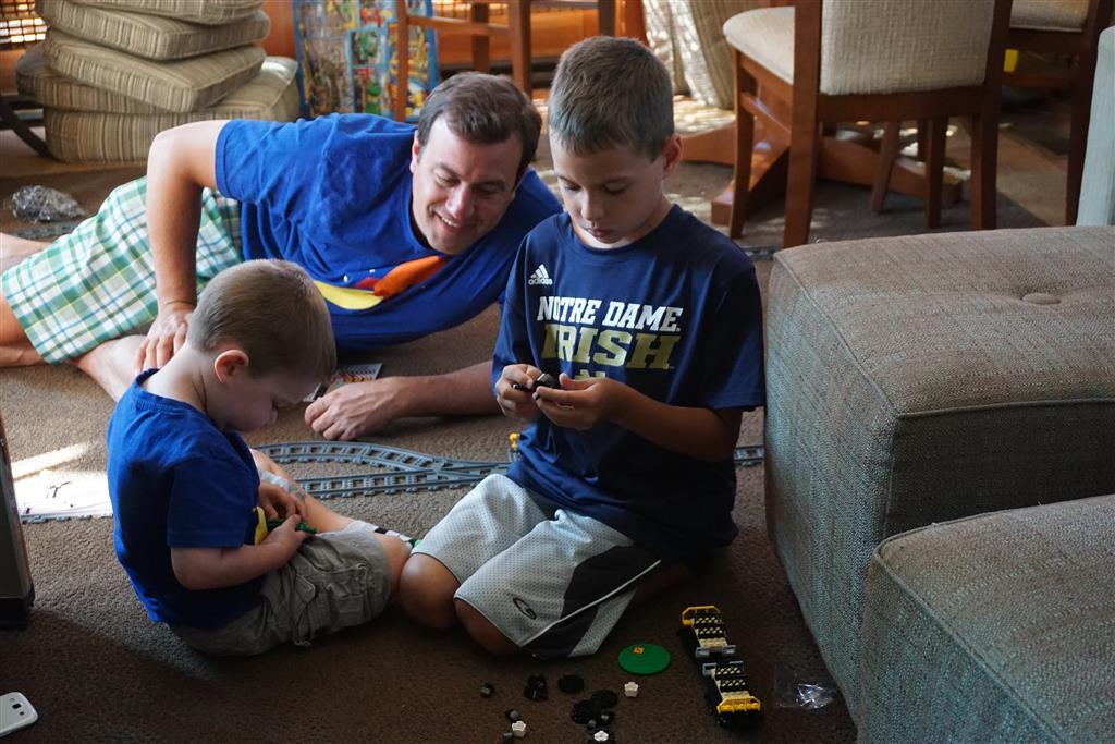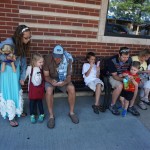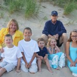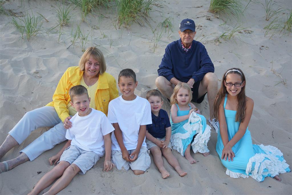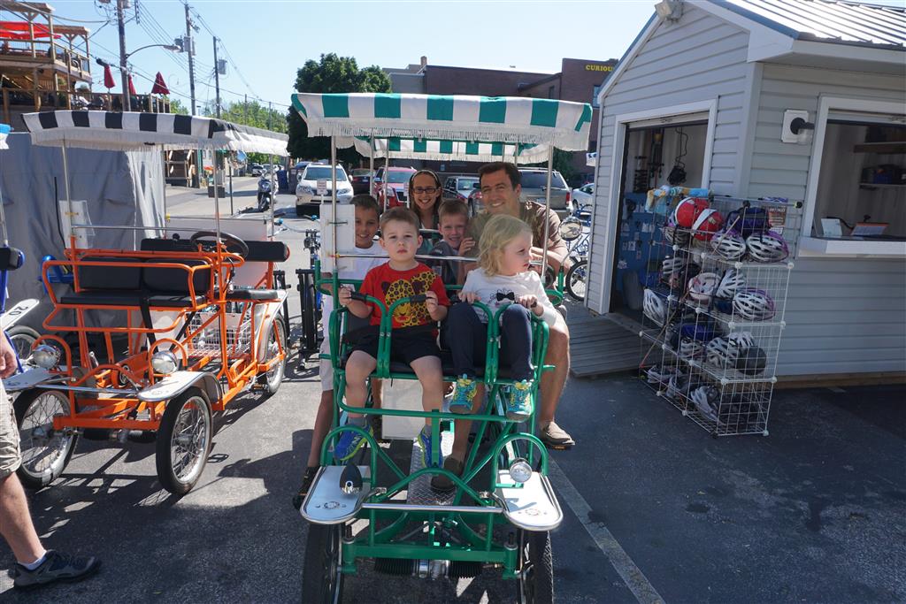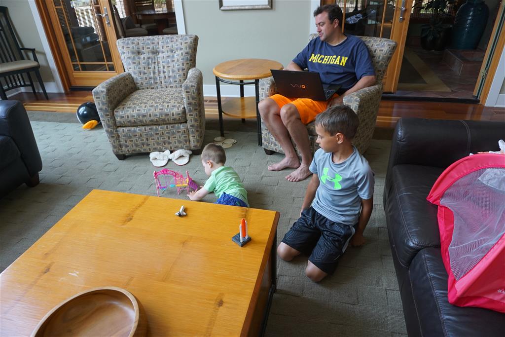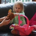 Eleanor and Henry had a fun week at the beach. We had an early celebration for Eleanor’s birthday, and she received a super fun rocket ship play tent, and some great puppets and a puppet theater. I’m sure both will be big hits! Uncle B brought along a bunch of Legos for rainy day entertainment – Eleanor really liked doing the small size and worked with Mom to follow the instructions and pick out all the right pieces. Henry loved the train, although he couldn’t participate much in the building process. We seem to have neglected to take any pictures while enjoying the beach – but we definitely enjoyed swimming and building sand castles. Eleanor spent a long time in the water, but preferred to be on a float toy or held – we couldn’t convince her that swimming would be the same as in the pool. We also enjoyed lots of trips to the ice cream shop in town, and a bicycle built for seven! Henry slept in a big bed every night except the first, and did great! He never fell off, although he did seem to end up snuggled up with Dad by morning time We had a cold front move through one day, so we spent the afternoon at a blueberry patch. We also seemed to have missed documenting that with photos, but I’m pretty sure it was a first for both Eleanor and Henry. Unfortunately, they both fell asleep in the car ride on the way there, so they were a bit groggy when we got there.