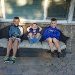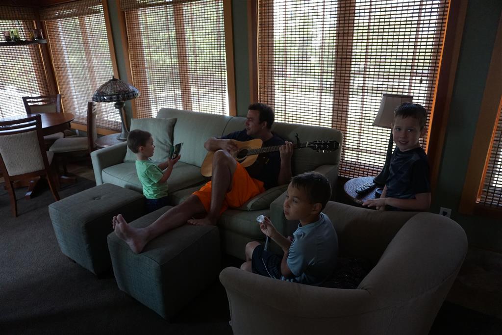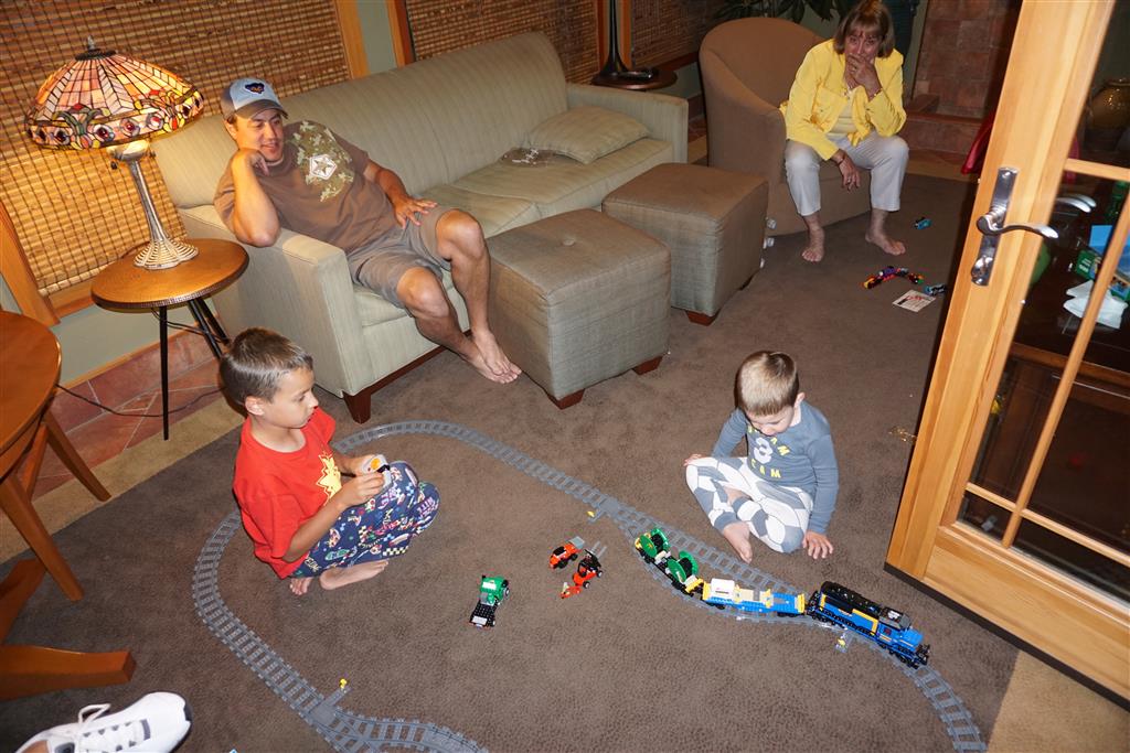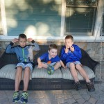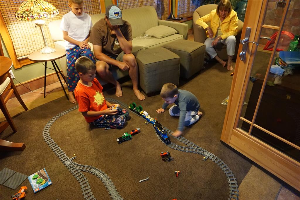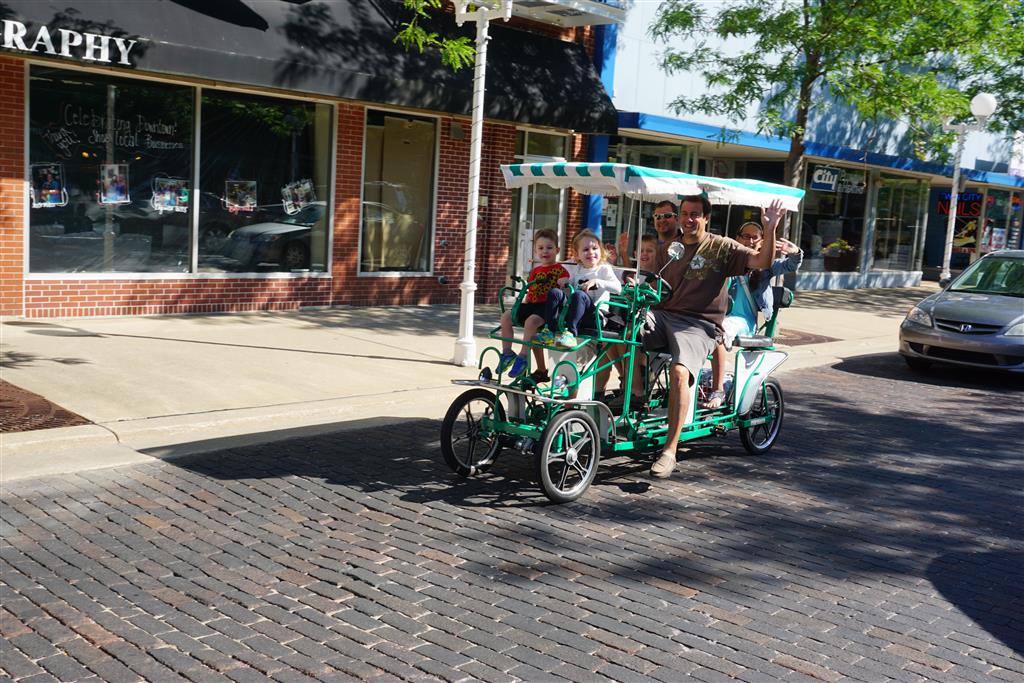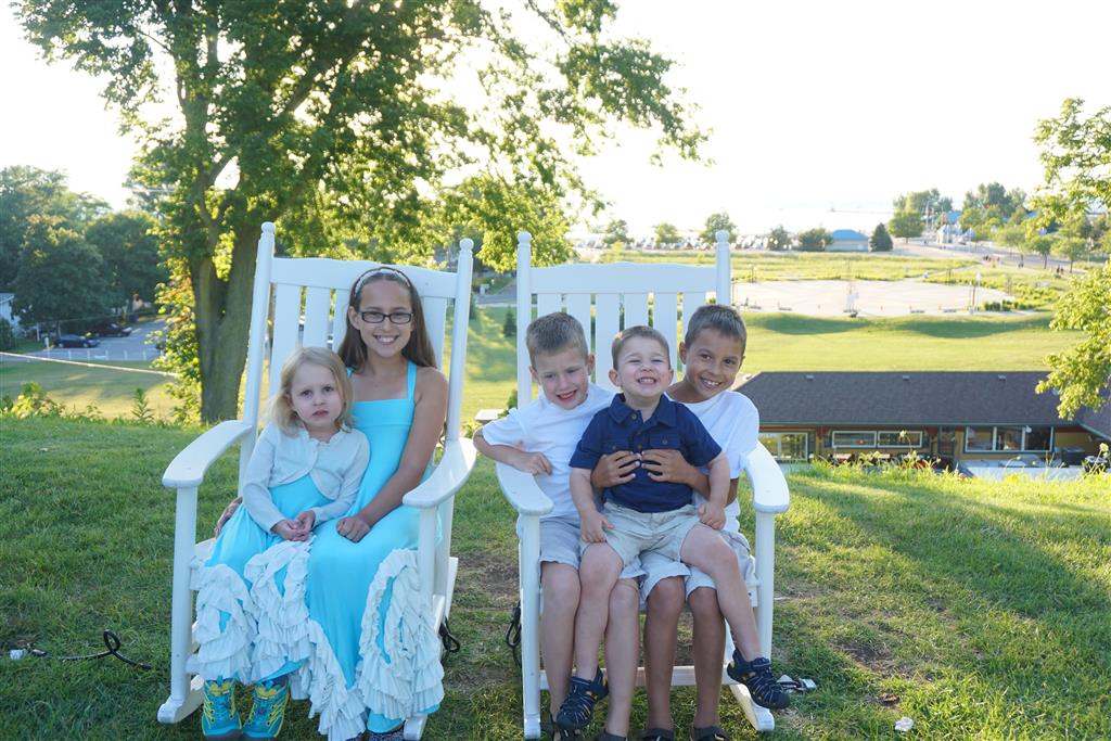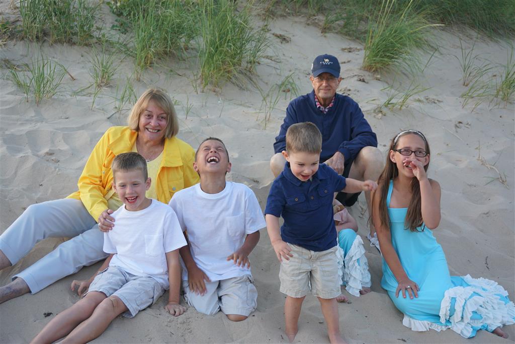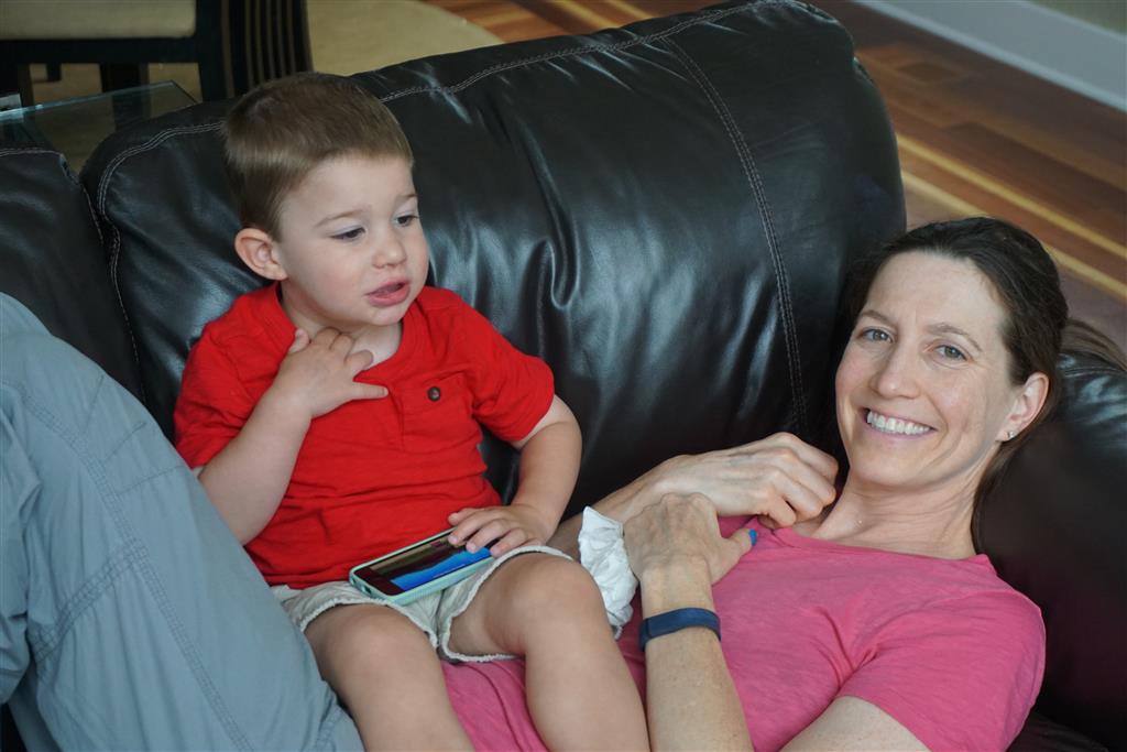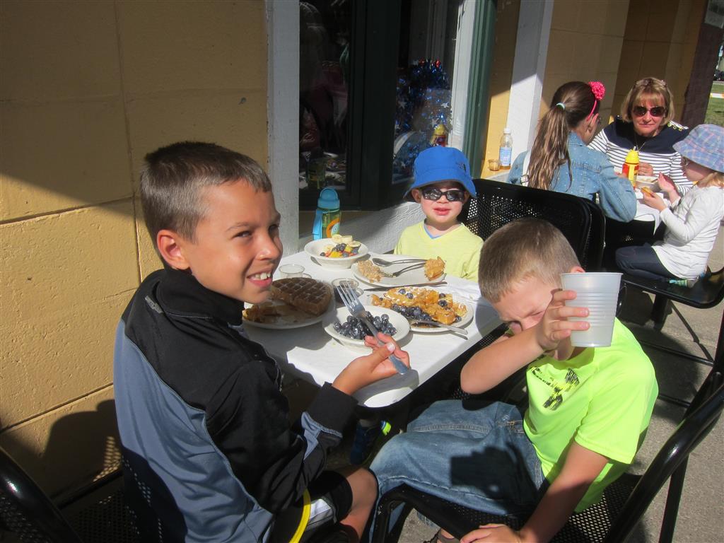 Eleanor and Henry had a fun week at the beach. We had an early celebration for Eleanor’s birthday, and she received a super fun rocket ship play tent, and some great puppets and a puppet theater. I’m sure both will be big hits! Uncle B brought along a bunch of Legos for rainy day entertainment – Eleanor really liked doing the small size and worked with Mom to follow the instructions and pick out all the right pieces. Henry loved the train, although he couldn’t participate much in the building process. We seem to have neglected to take any pictures while enjoying the beach – but we definitely enjoyed swimming and building sand castles. Eleanor spent a long time in the water, but preferred to be on a float toy or held – we couldn’t convince her that swimming would be the same as in the pool. We also enjoyed lots of trips to the ice cream shop in town, and a bicycle built for seven! Henry slept in a big bed every night except the first, and did great! He never fell off, although he did seem to end up snuggled up with Dad by morning time We had a cold front move through one day, so we spent the afternoon at a blueberry patch. We also seemed to have missed documenting that with photos, but I’m pretty sure it was a first for both Eleanor and Henry. Unfortunately, they both fell asleep in the car ride on the way there, so they were a bit groggy when we got there.