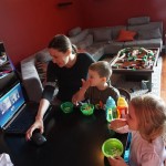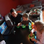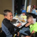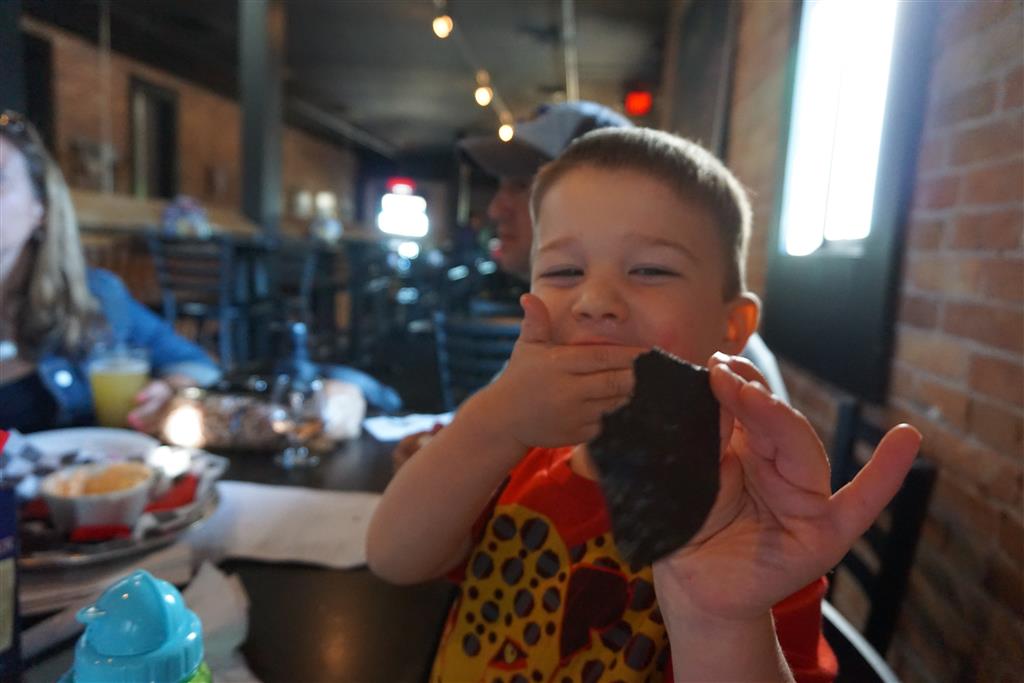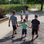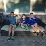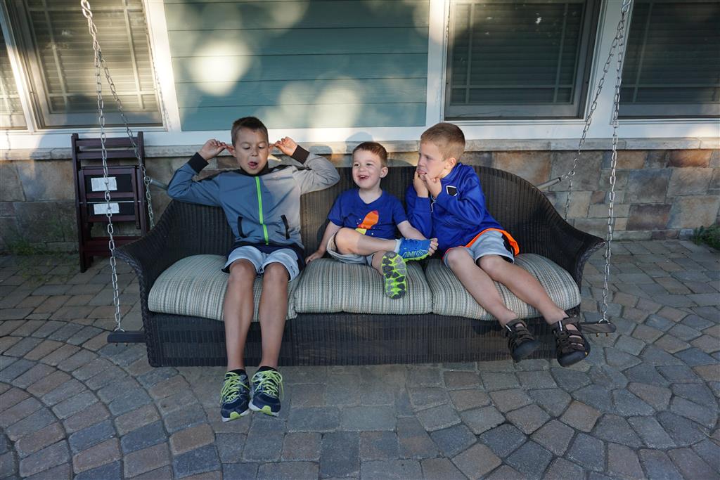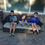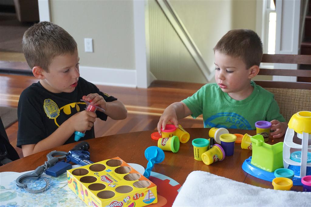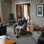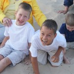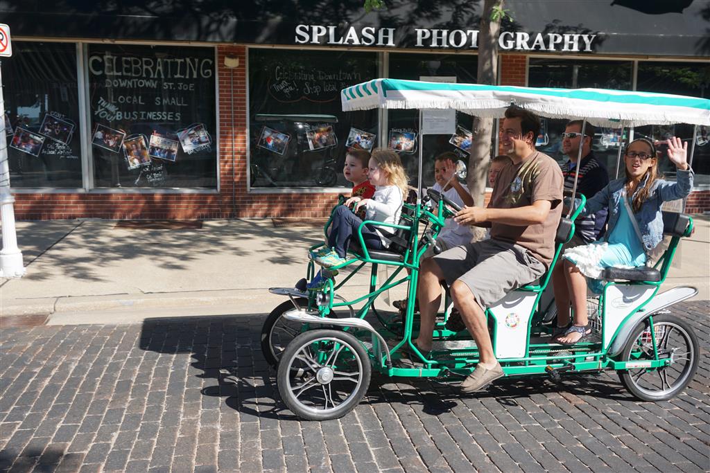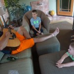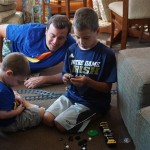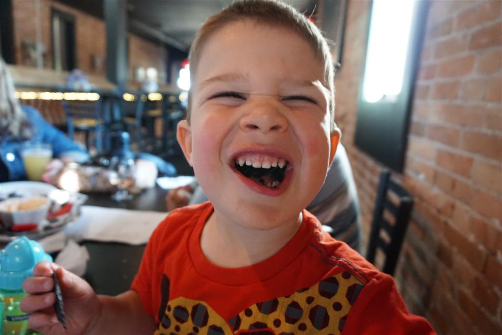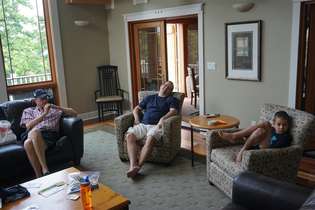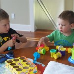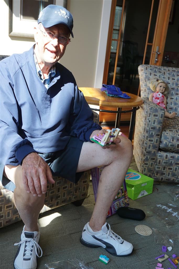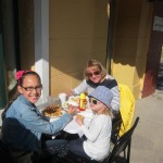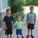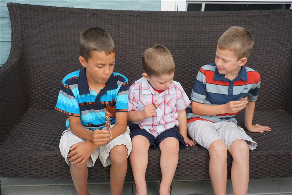 Eleanor and Henry had a fun week at the beach. We had an early celebration for Eleanor’s birthday, and she received a super fun rocket ship play tent, and some great puppets and a puppet theater. I’m sure both will be big hits! Uncle B brought along a bunch of Legos for rainy day entertainment – Eleanor really liked doing the small size and worked with Mom to follow the instructions and pick out all the right pieces. Henry loved the train, although he couldn’t participate much in the building process. We seem to have neglected to take any pictures while enjoying the beach – but we definitely enjoyed swimming and building sand castles. Eleanor spent a long time in the water, but preferred to be on a float toy or held – we couldn’t convince her that swimming would be the same as in the pool. We also enjoyed lots of trips to the ice cream shop in town, and a bicycle built for seven! Henry slept in a big bed every night except the first, and did great! He never fell off, although he did seem to end up snuggled up with Dad by morning time We had a cold front move through one day, so we spent the afternoon at a blueberry patch. We also seemed to have missed documenting that with photos, but I’m pretty sure it was a first for both Eleanor and Henry. Unfortunately, they both fell asleep in the car ride on the way there, so they were a bit groggy when we got there.