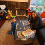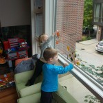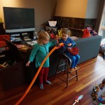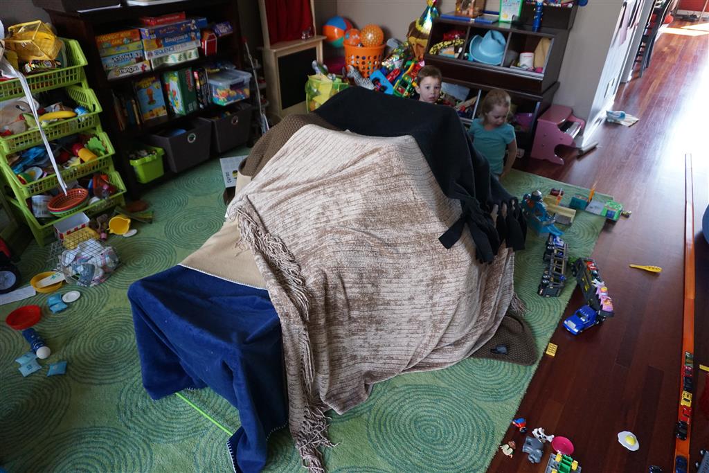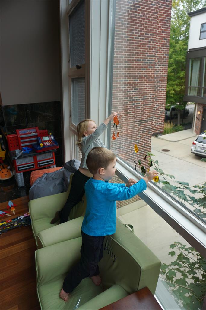 We had fun this week putting up some fall GelJams – Eleanor got clever and spelled “Henry” out of letters meant to spell Halloween – notice how she made the “R” and “Y”. We built a new crazy fort on Sunday, checking out the igloo configuration. Both kids were pretty excited, but I think the tunnel is still their favorite. Mom caught Eleanor in the act of constructing a tower in order to reach her crunchy cereal snack – I’m sure this isn’t the last crazy contraption that we will find them climbing on over the next 15 years….