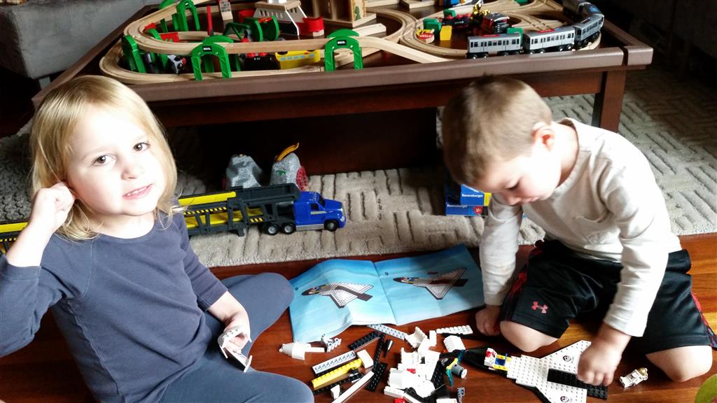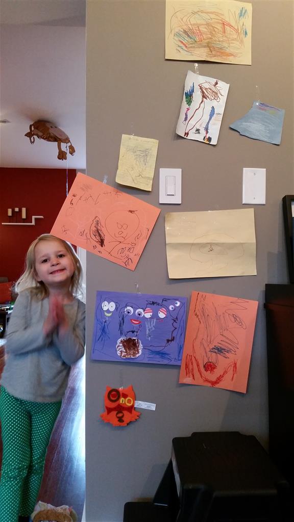A visit from Grandma capped off a fun filled week for Eleanor and Henry. Eleanor had another gymnastics class, and this time she was super excited and participated in every activity – what a difference a week makes! Eleanor is also doing great at drop off time for school, she now walks down the hallway all by herself, and after a hug and a wave she is into class. She has been making some really impressive drawings lately, on Tuesday she came home with a picture that included everyone in the family, including Zapa, and Zapa had fluffy fur and a food bowl and a water glass and a pink tongue that was eating and drinking. Quite an impressive improvement from her usual “scribble scrabble”! Unfortunately, on Wednesday she came down with a fever so she had to miss the rest of the week. The good news was that she got a few alone days with Dad as he was in charge while Mom was on vacation.