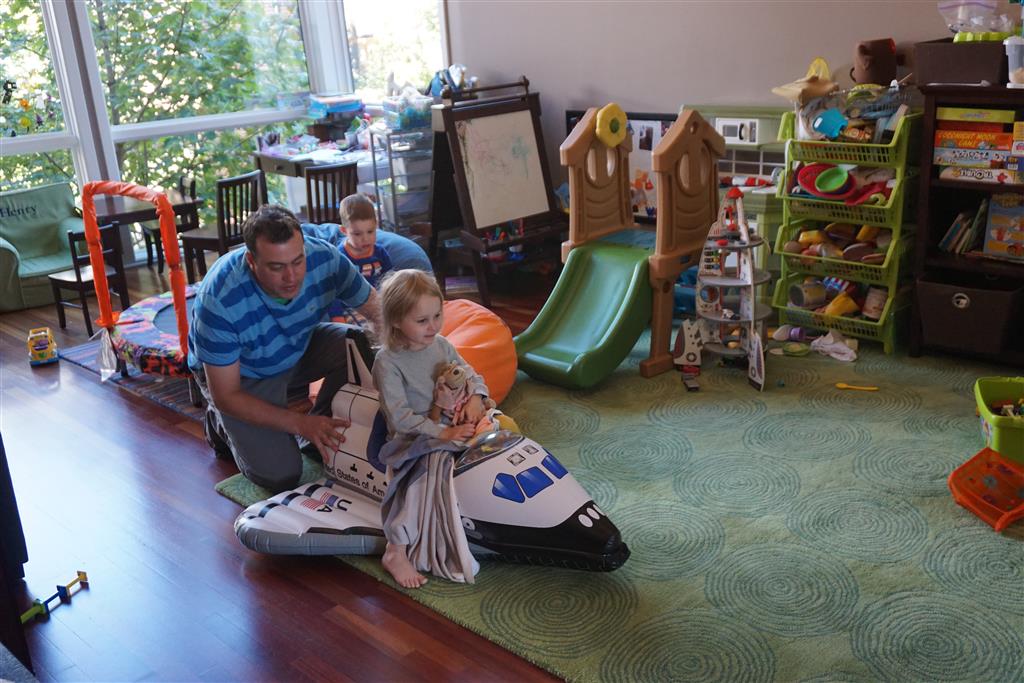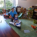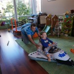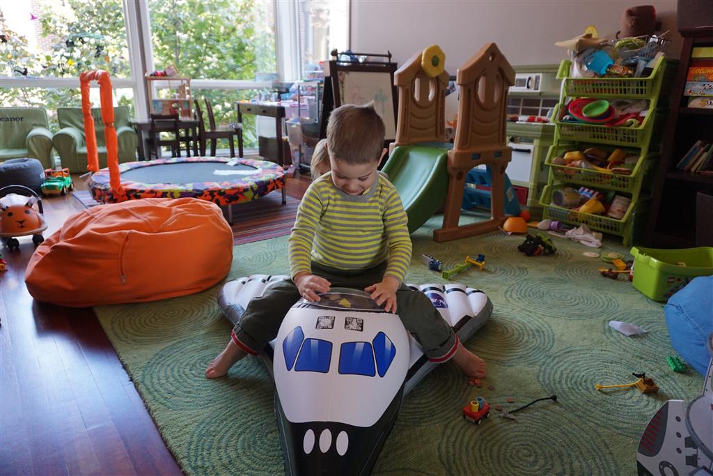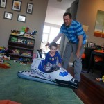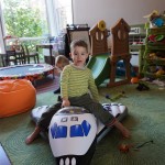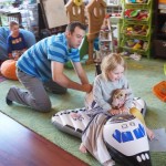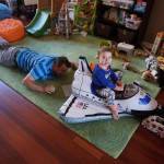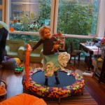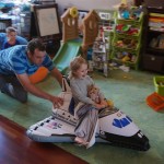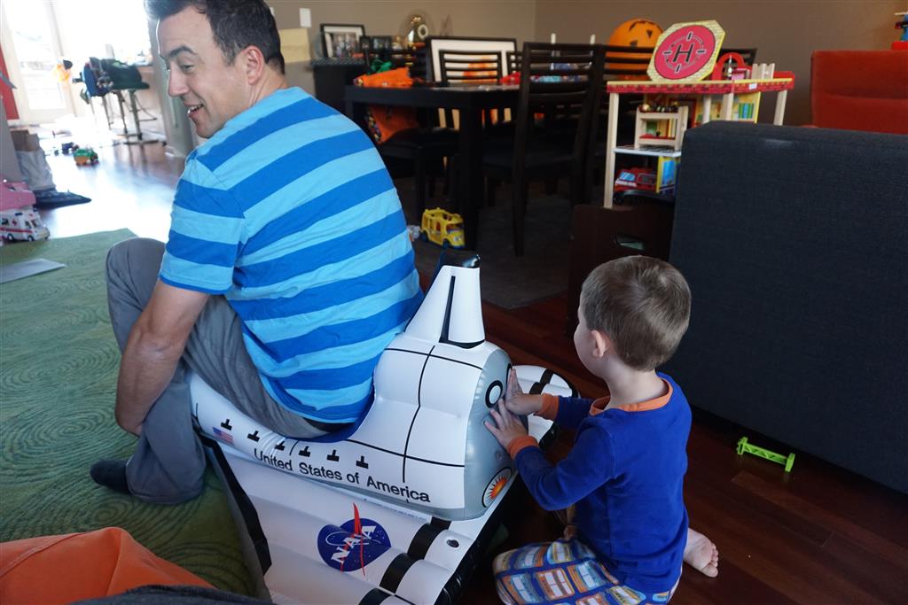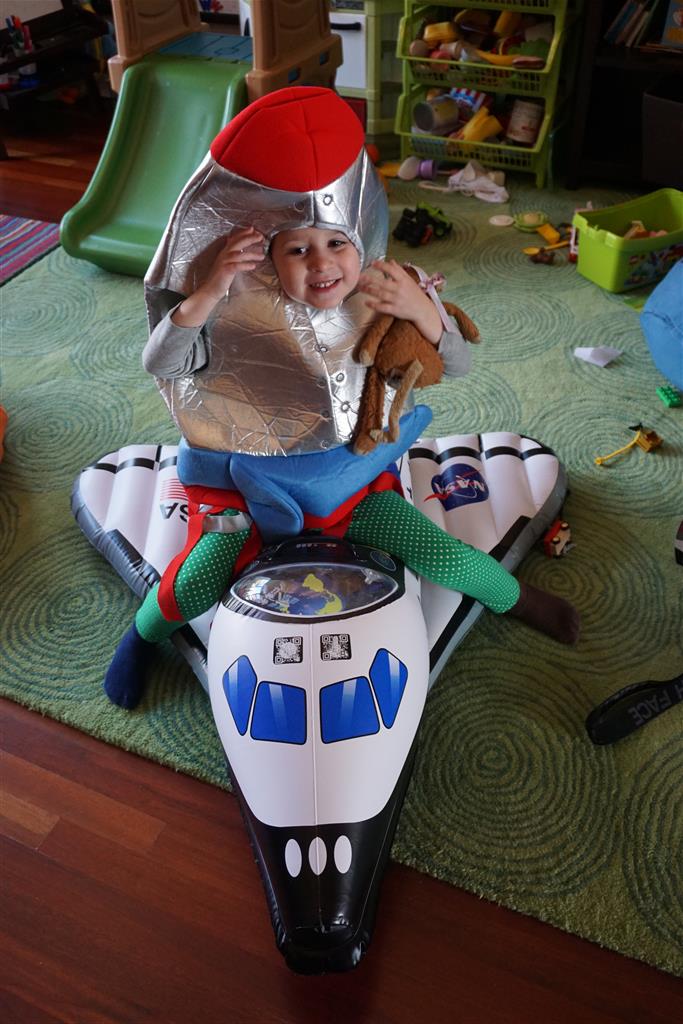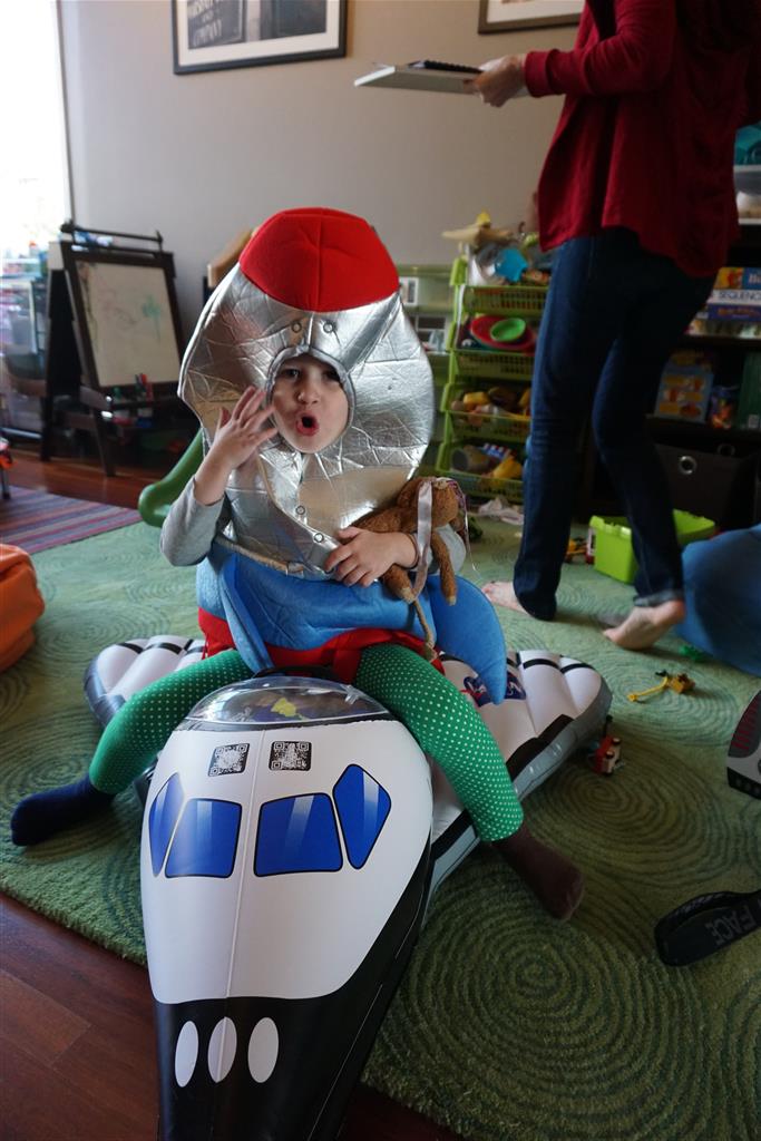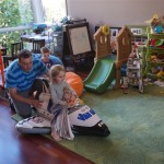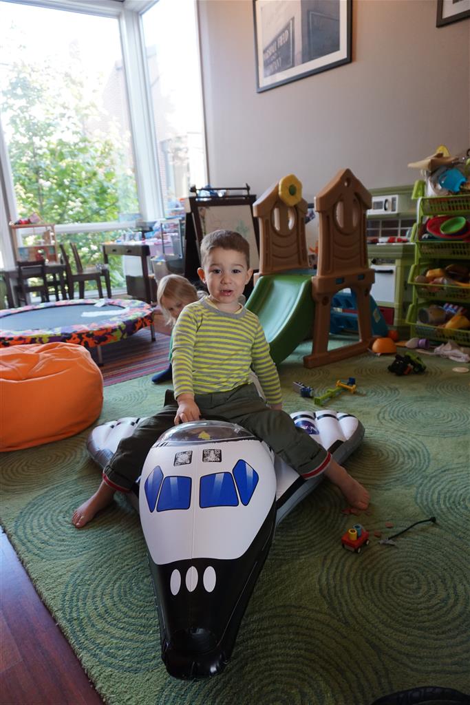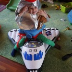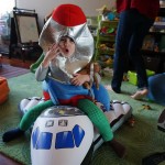 Eleanor an Henry were happy to be back home after our big trip. While shopping for Halloween costumes we discovered a fun Space Shuttle pool float and couldn’t resist ordering it. Uncle B invented a new game with it, sending the kids on launch rides across the carpet. Eleanor also got into her rocket ship Halloween costume and then road the space shuttle float for a space daily double. We also hit our local pumpkin patch to pick up some pumpkins for the season. I’ll have to dig up some comparison shots from past years, we have this same picture with the same scarecrow in the background for at least the last five years. Also had a few pictures from Grandma’s visit a couple weeks ago that were somehow missed the camera transfer till this week.