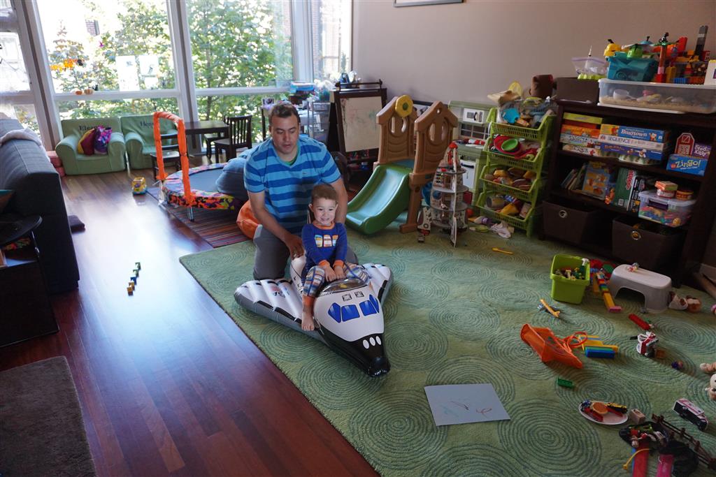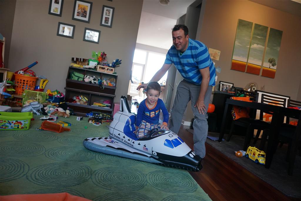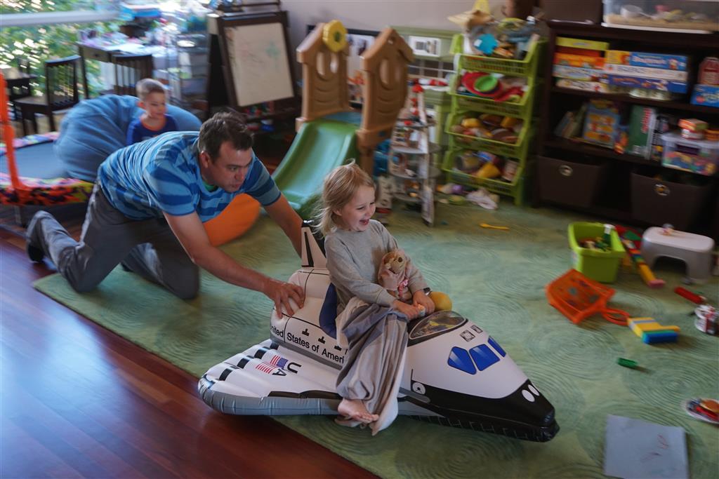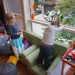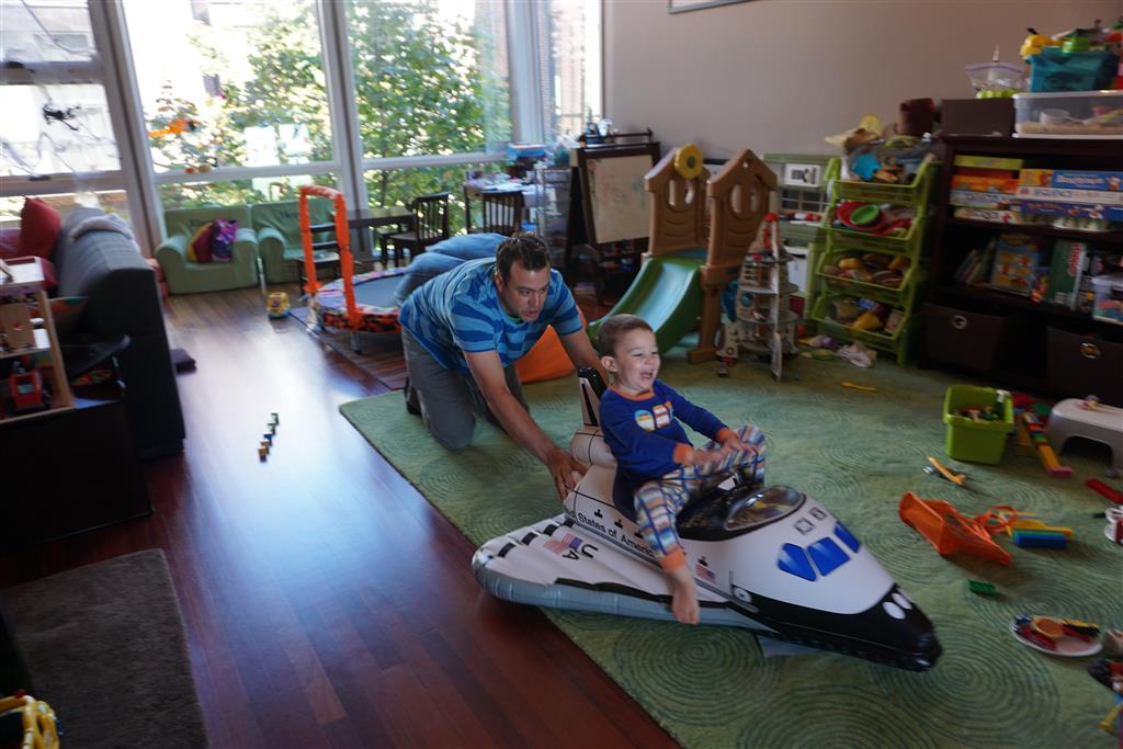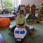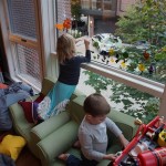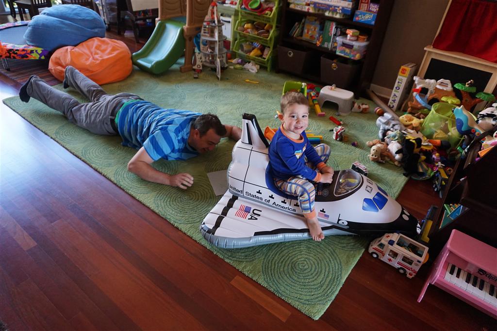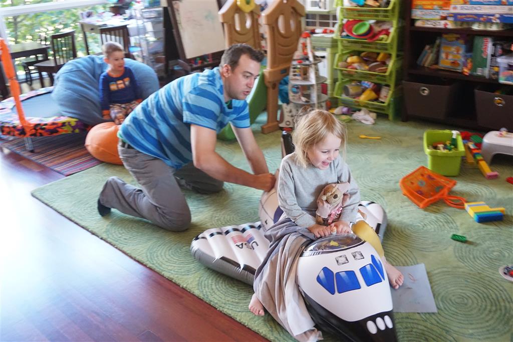 Eleanor an Henry were happy to be back home after our big trip. While shopping for Halloween costumes we discovered a fun Space Shuttle pool float and couldn’t resist ordering it. Uncle B invented a new game with it, sending the kids on launch rides across the carpet. Eleanor also got into her rocket ship Halloween costume and then road the space shuttle float for a space daily double. We also hit our local pumpkin patch to pick up some pumpkins for the season. I’ll have to dig up some comparison shots from past years, we have this same picture with the same scarecrow in the background for at least the last five years. Also had a few pictures from Grandma’s visit a couple weeks ago that were somehow missed the camera transfer till this week.