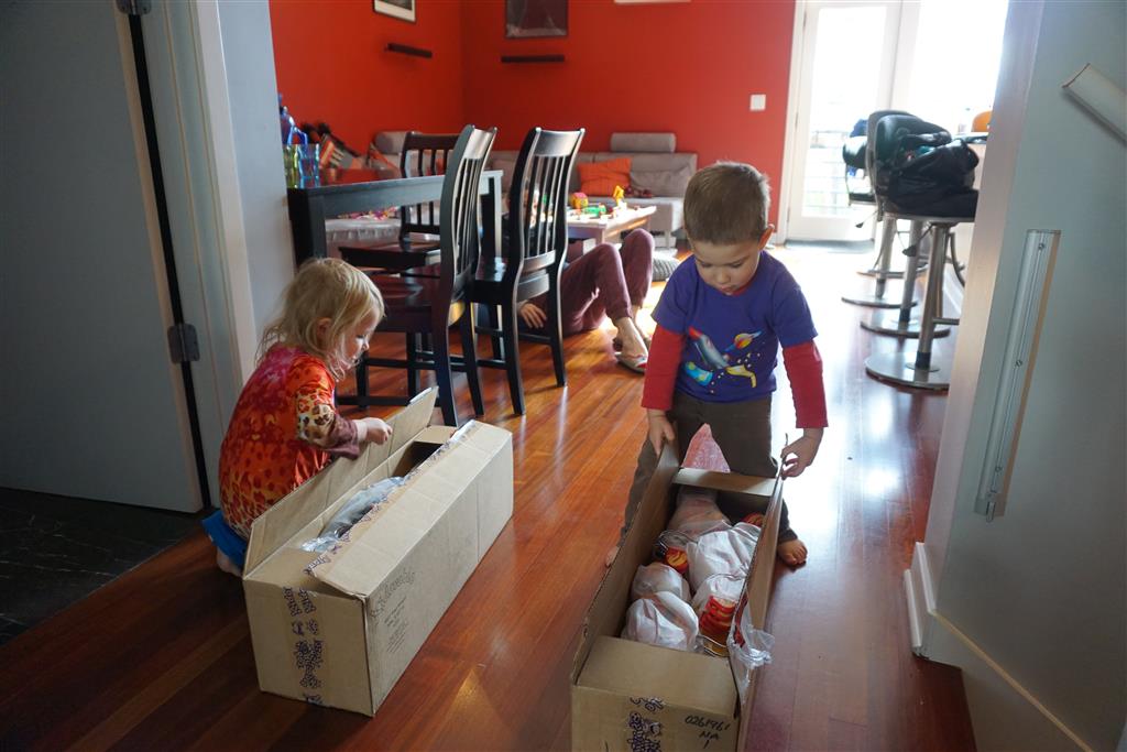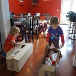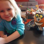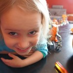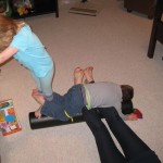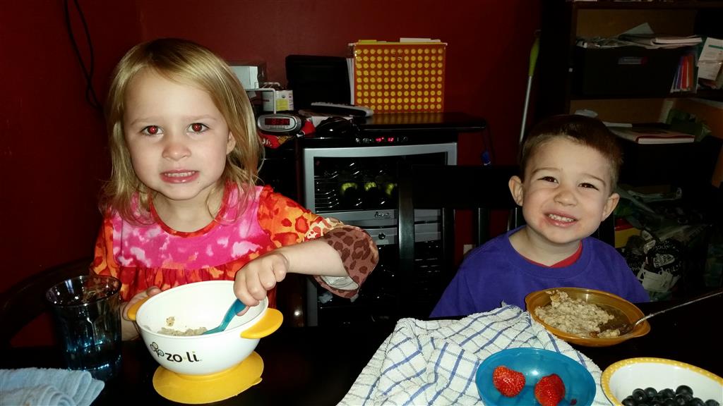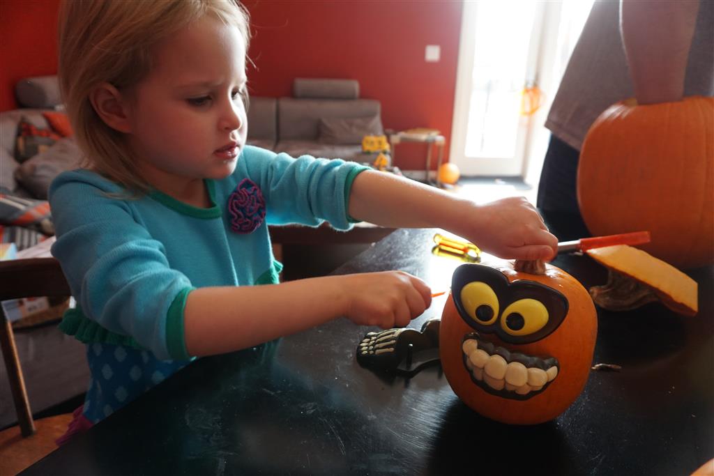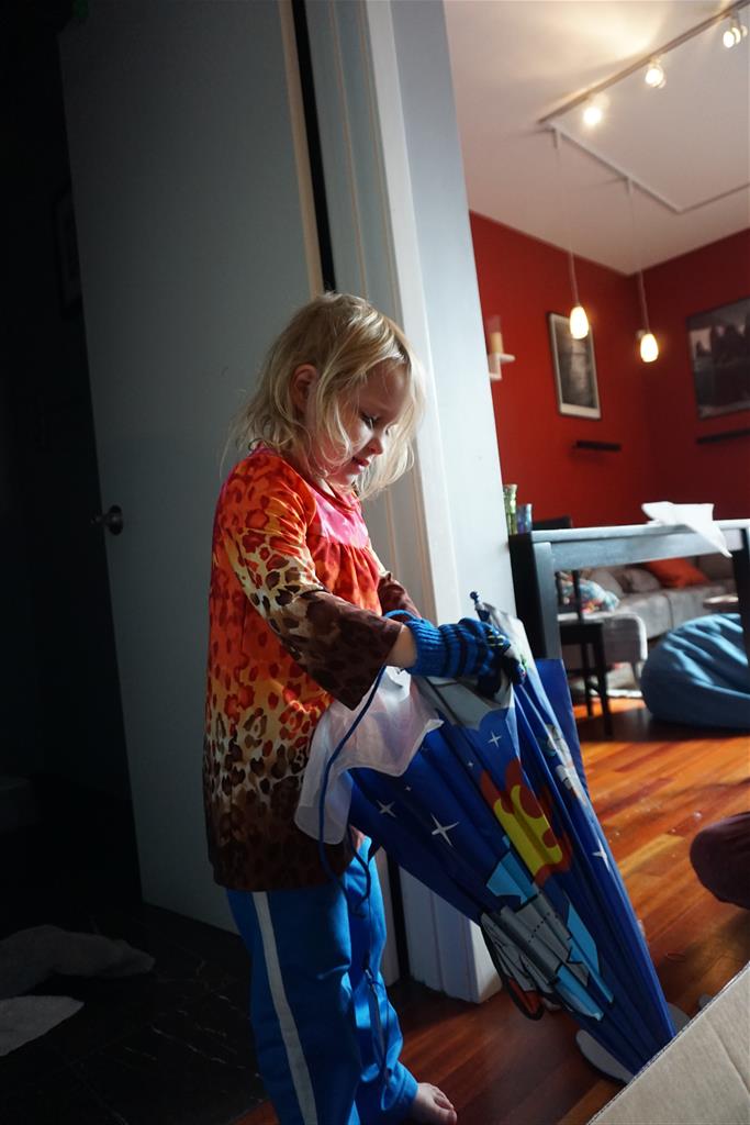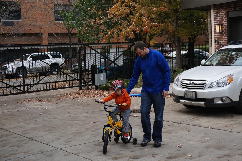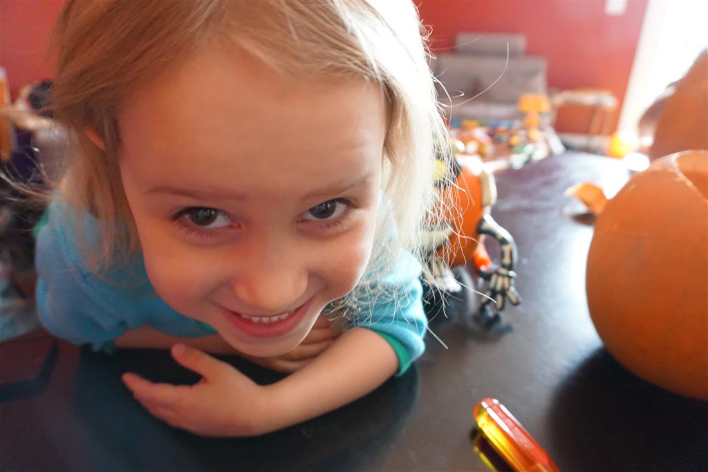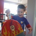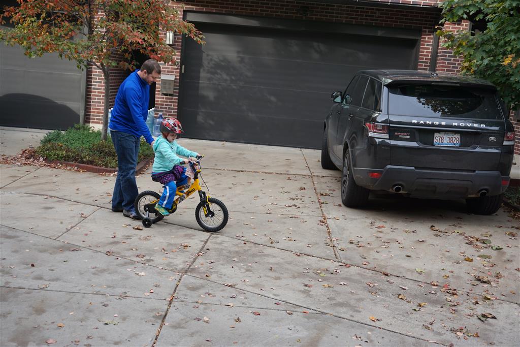 School and activities went really well this week, Eleanor and Henry really got back into the regular routine. Gymnastics class has really been a great addition, both kids love their respective days at the gym. This weekend Henry had his first birthday party for a classmate, at Pump It Up, of course. He had a blast, and it was really evident that attending so many of the parties for Eleanor’s classmates really helped him feel comfortable. On Sunday we carved up our pumpkins – Eleanor did the Mr. Potato Head decorations, Henry did stickers, Mom did a smiley face per both kids requests, and Dad tried a cat pattern that came with our pumpkin carving tool set. We also enjoyed some nice fall weather getting the bikes out in the driveway. Eleanor is starting to get a hang of the bike, and can get around the whole driveway all by herself except for the hill. Henry also likes to ride the bike, but prefers to hit the breaks and giggle when Dad is trying to push :) We also had a fun package arrive from Uncle B with space themed raincoat, umbrella and bath towel for Eleanor, and firefighter coat, umbrella and bath towel for Henry. Oh yeah – and Eleanor slept Friday night in her rocket ship tent!