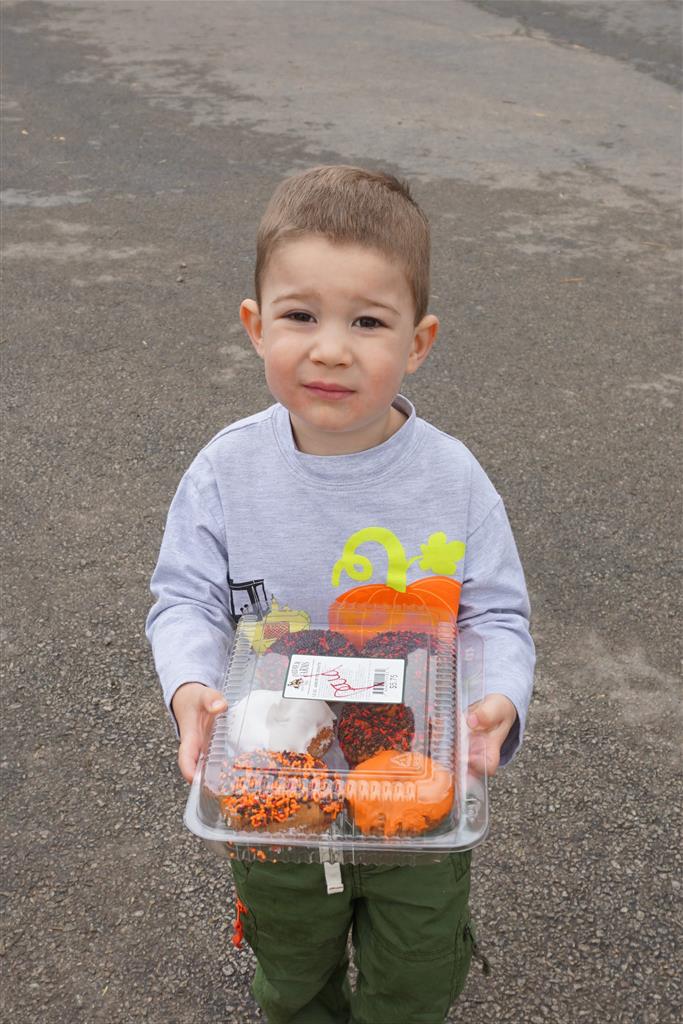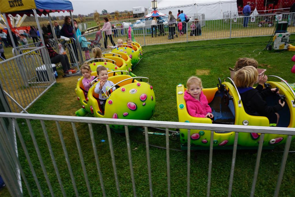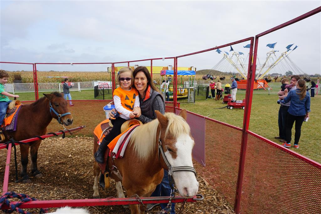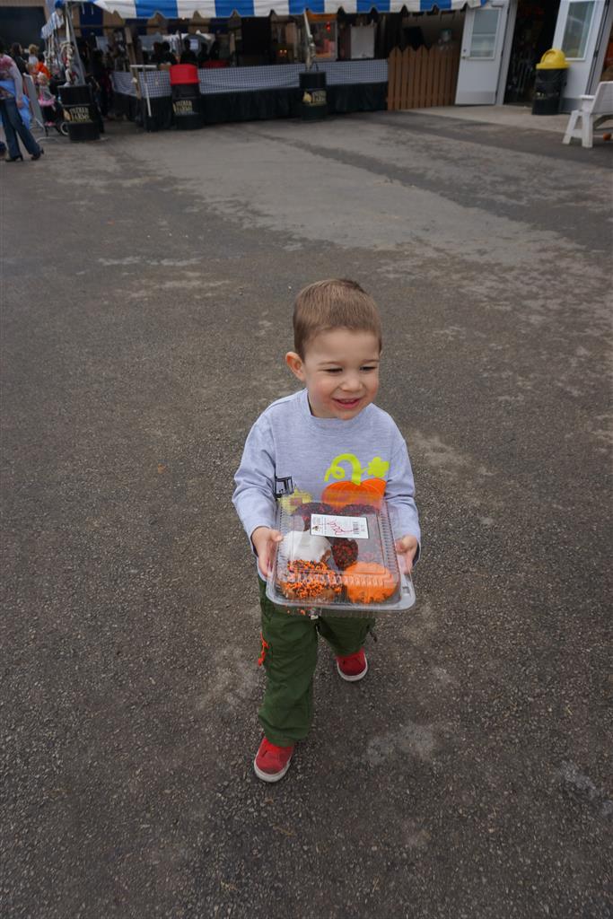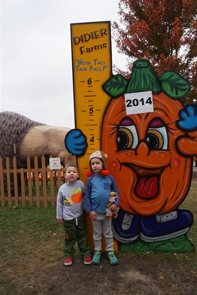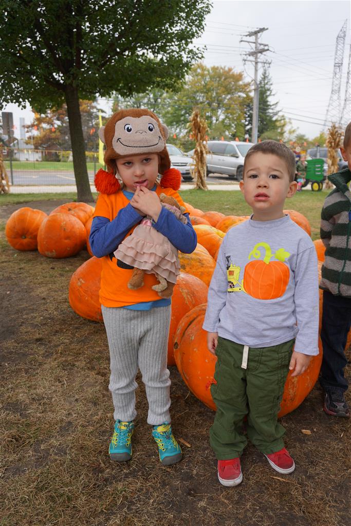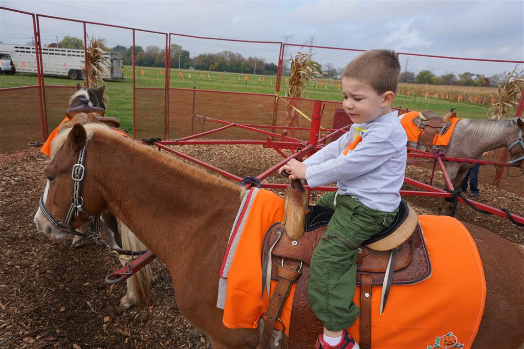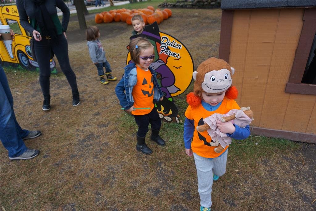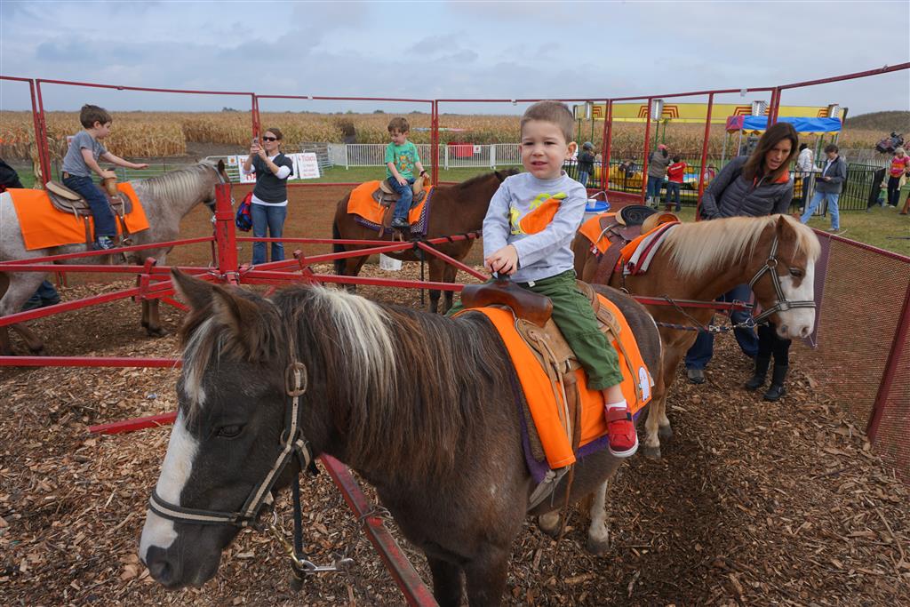 Eleanor and Henry started the week with our annual visit to the Dider Farms Pumpkin Festival. Both kids were super excited about the trip, they were looking forward to the pony rides and also to the train and rollercoaster. Henry got to ride on the same pony named “Jack” that he was so excited about last year, and Eleanor also picked the same pony “Jackson” that she rode last year. We also hit the super slide, the “Himalaya” ride, the strawberry ride, the circling cars, the train, the airplane ride, the tank ride, the frog ride, the rollercoaster, the funhouse and the camel ride. Eleanor didn’t want to do the rollercoaster again this year, but Henry was really excited about it. We were so proud of him as he bravely hoped on the ride all by himself and loved every loop. Eleanor hit the funhouse around ten times, which would have worked out to $30 worth of funhouse, but the woman working the door took a liking to Eleanor and sympathized with my ticket situation and gave us more than half of them for free. Eleanor declared the funhouse her favorite part, while Henry said the pony ride was his favorite. Henry’s least favorite was the frog ride – he was super excited to ride it with his big sis, but got a little scared – “the going down parts were a little scary” he said. He really wanted Eleanor to ride the rollercoaster with him, but Eleanor didn’t want to. The second ride that Eleanor wanted to do was the pumpkin shaped bouncy house, but when the operator told us Monkey would have to wait outside she got so sad and we ended up skipping it all together. All in all it was a great time though, and definitely worth it to see Henry’s proud smile as we let him carry the apple and pumpkin doughnuts out to the car.