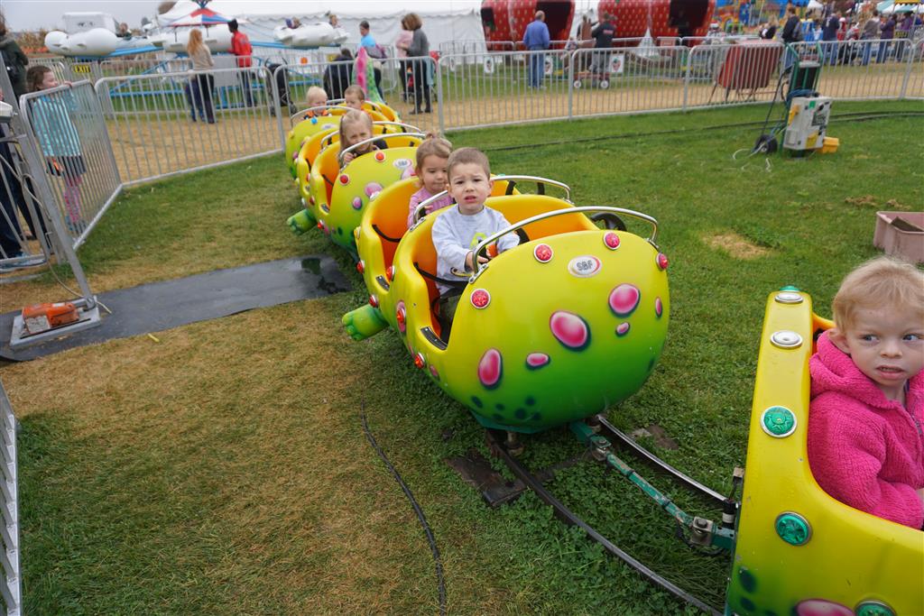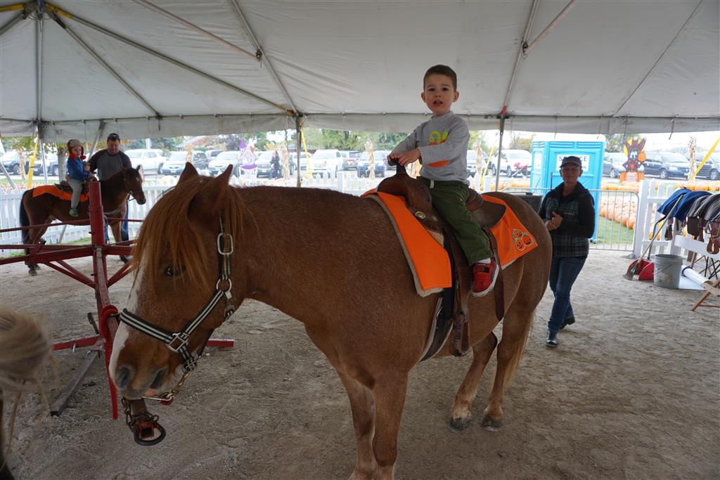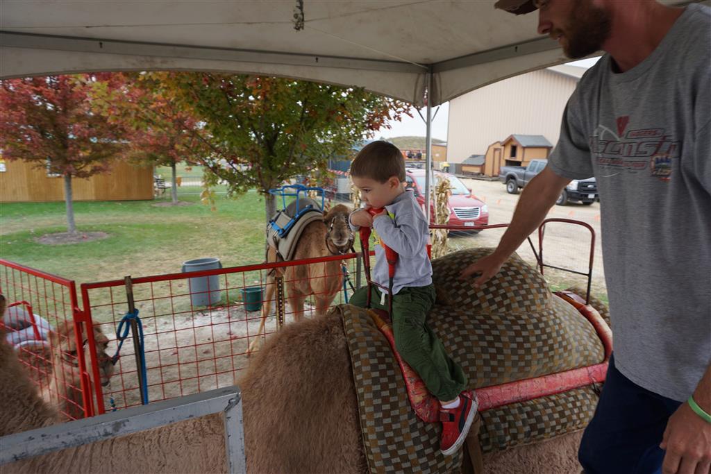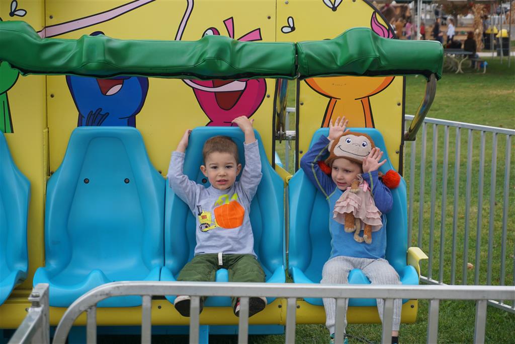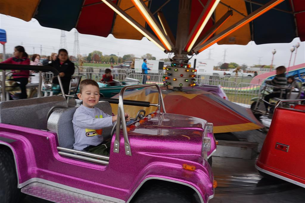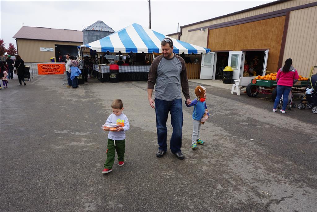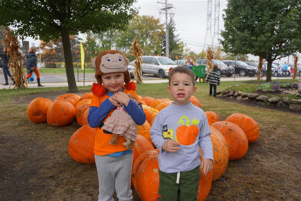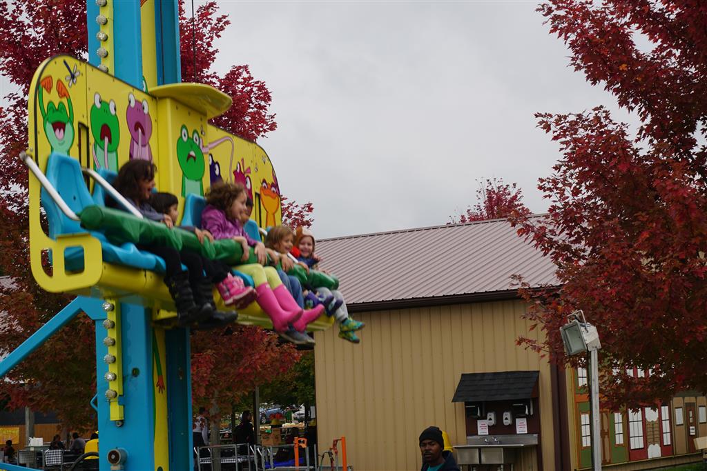 Eleanor and Henry started the week with our annual visit to the Dider Farms Pumpkin Festival. Both kids were super excited about the trip, they were looking forward to the pony rides and also to the train and rollercoaster. Henry got to ride on the same pony named “Jack” that he was so excited about last year, and Eleanor also picked the same pony “Jackson” that she rode last year. We also hit the super slide, the “Himalaya” ride, the strawberry ride, the circling cars, the train, the airplane ride, the tank ride, the frog ride, the rollercoaster, the funhouse and the camel ride. Eleanor didn’t want to do the rollercoaster again this year, but Henry was really excited about it. We were so proud of him as he bravely hoped on the ride all by himself and loved every loop. Eleanor hit the funhouse around ten times, which would have worked out to $30 worth of funhouse, but the woman working the door took a liking to Eleanor and sympathized with my ticket situation and gave us more than half of them for free. Eleanor declared the funhouse her favorite part, while Henry said the pony ride was his favorite. Henry’s least favorite was the frog ride – he was super excited to ride it with his big sis, but got a little scared – “the going down parts were a little scary” he said. He really wanted Eleanor to ride the rollercoaster with him, but Eleanor didn’t want to. The second ride that Eleanor wanted to do was the pumpkin shaped bouncy house, but when the operator told us Monkey would have to wait outside she got so sad and we ended up skipping it all together. All in all it was a great time though, and definitely worth it to see Henry’s proud smile as we let him carry the apple and pumpkin doughnuts out to the car.