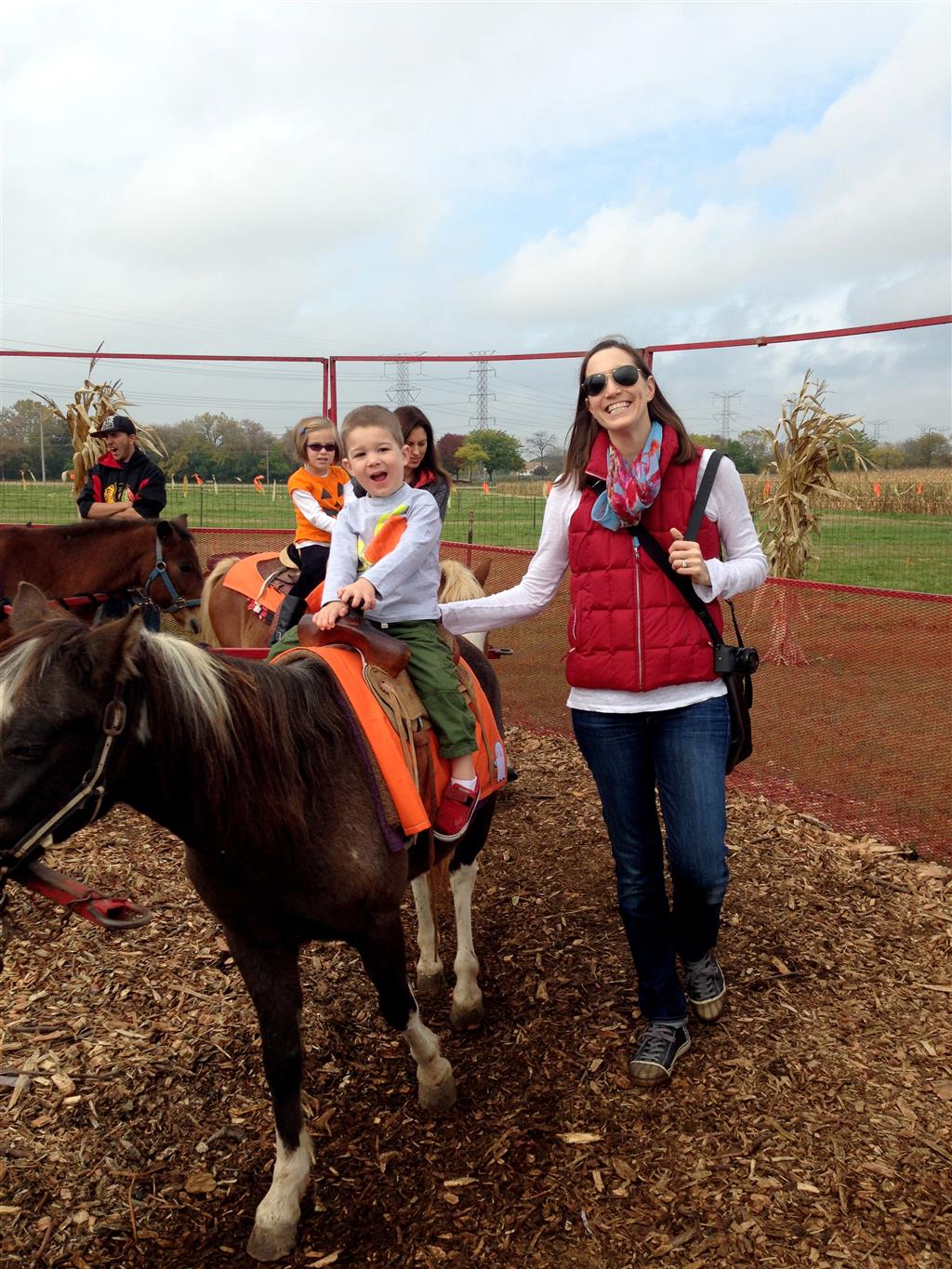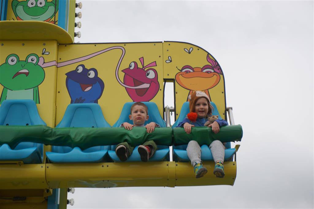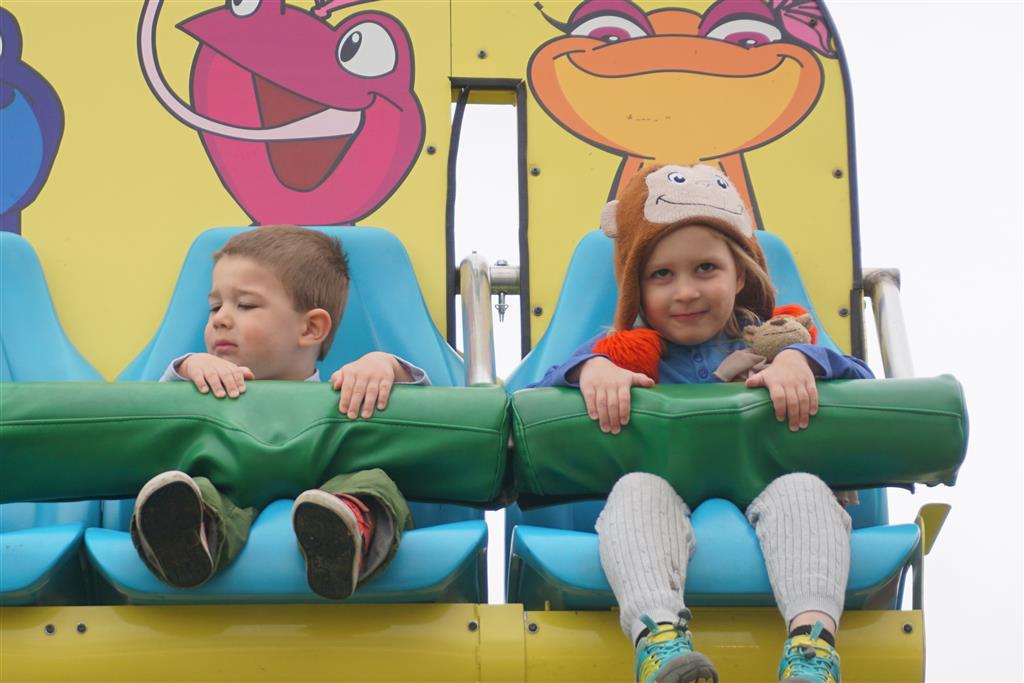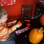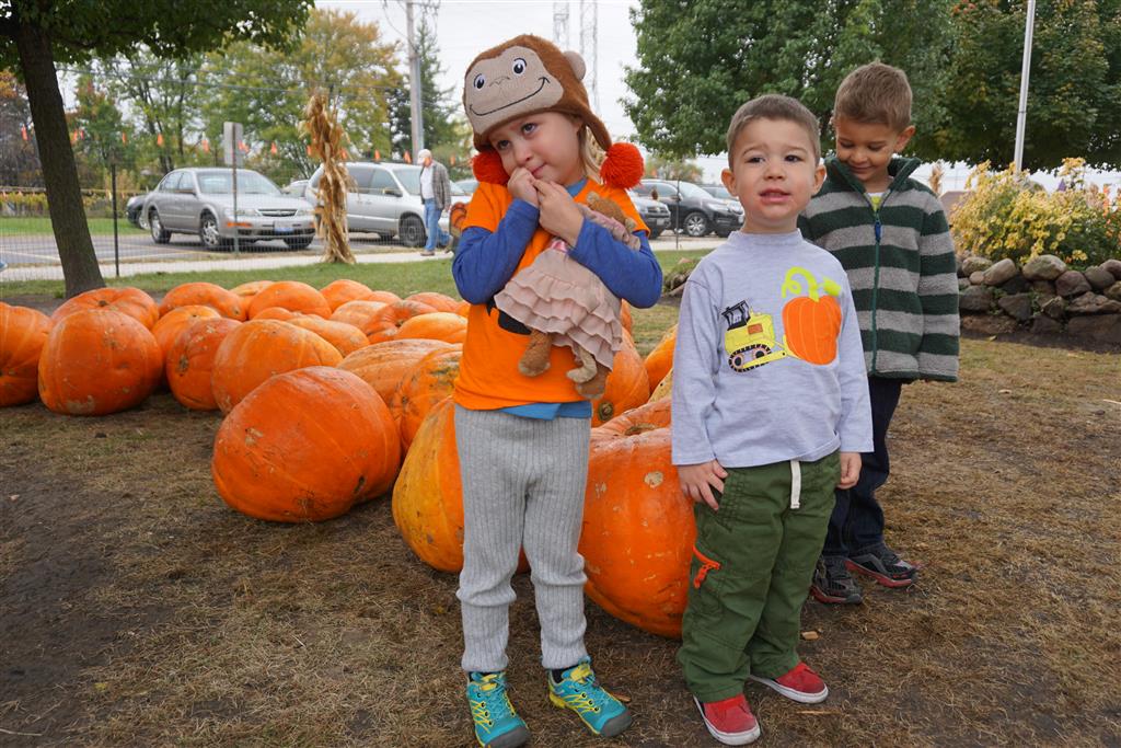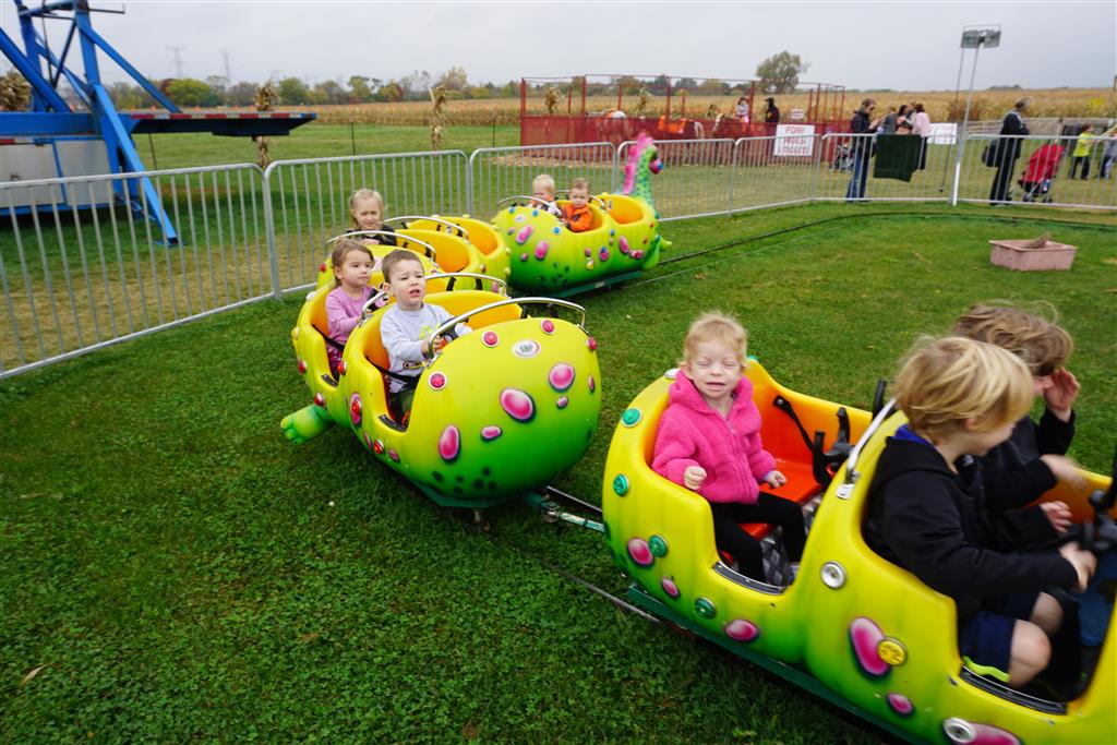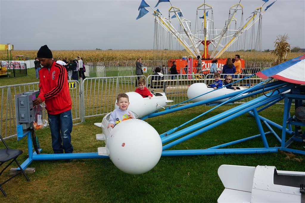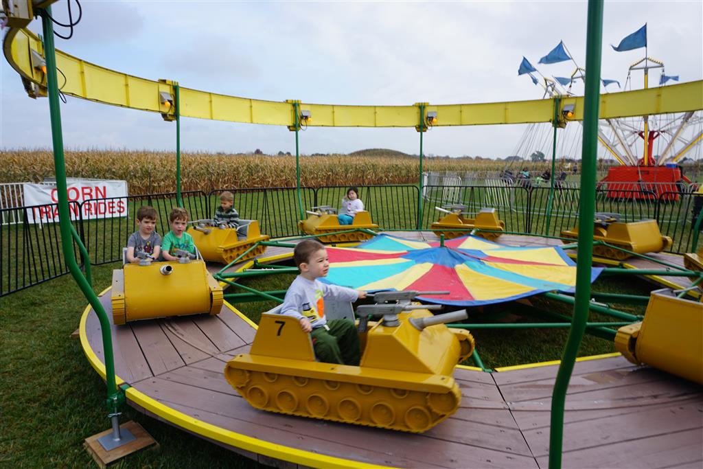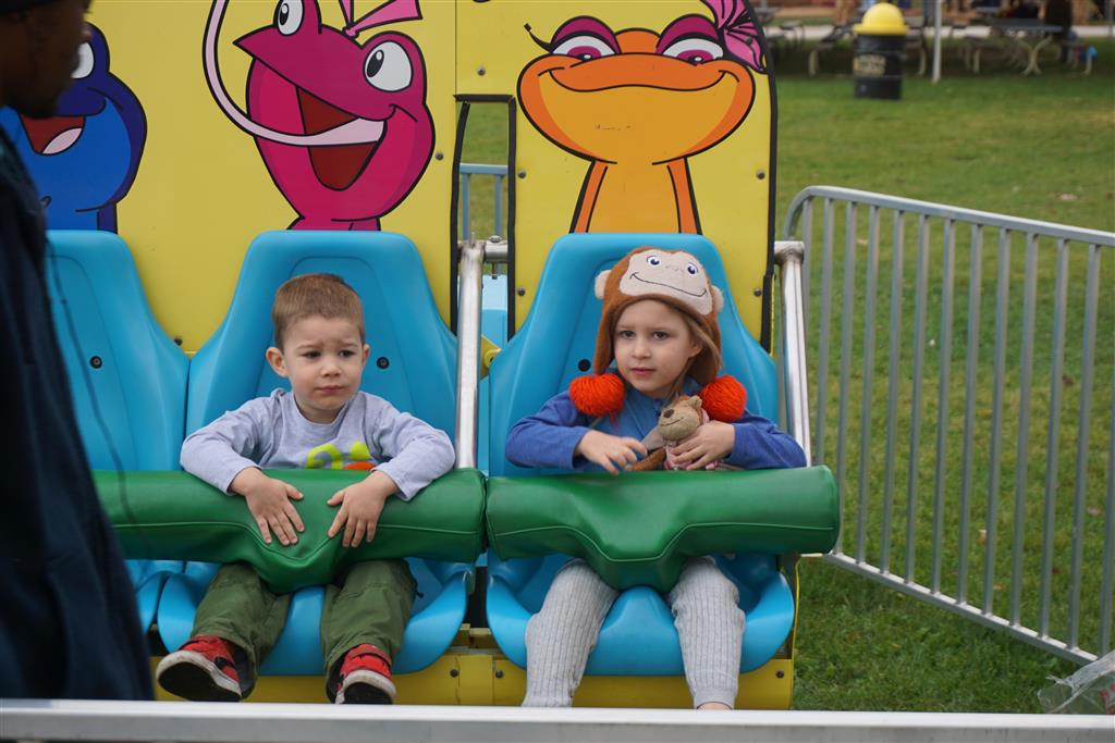 Eleanor and Henry started the week with our annual visit to the Dider Farms Pumpkin Festival. Both kids were super excited about the trip, they were looking forward to the pony rides and also to the train and rollercoaster. Henry got to ride on the same pony named “Jack” that he was so excited about last year, and Eleanor also picked the same pony “Jackson” that she rode last year. We also hit the super slide, the “Himalaya” ride, the strawberry ride, the circling cars, the train, the airplane ride, the tank ride, the frog ride, the rollercoaster, the funhouse and the camel ride. Eleanor didn’t want to do the rollercoaster again this year, but Henry was really excited about it. We were so proud of him as he bravely hoped on the ride all by himself and loved every loop. Eleanor hit the funhouse around ten times, which would have worked out to $30 worth of funhouse, but the woman working the door took a liking to Eleanor and sympathized with my ticket situation and gave us more than half of them for free. Eleanor declared the funhouse her favorite part, while Henry said the pony ride was his favorite. Henry’s least favorite was the frog ride – he was super excited to ride it with his big sis, but got a little scared – “the going down parts were a little scary” he said. He really wanted Eleanor to ride the rollercoaster with him, but Eleanor didn’t want to. The second ride that Eleanor wanted to do was the pumpkin shaped bouncy house, but when the operator told us Monkey would have to wait outside she got so sad and we ended up skipping it all together. All in all it was a great time though, and definitely worth it to see Henry’s proud smile as we let him carry the apple and pumpkin doughnuts out to the car.
