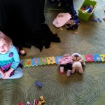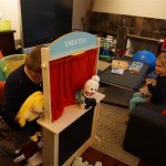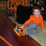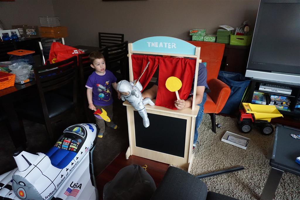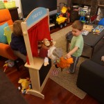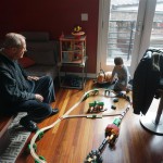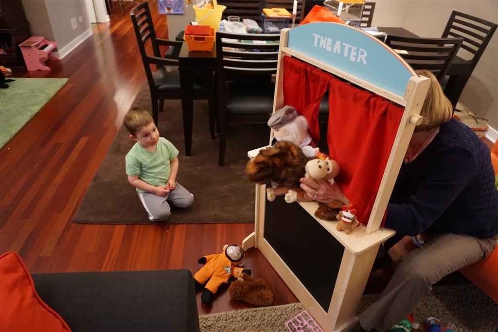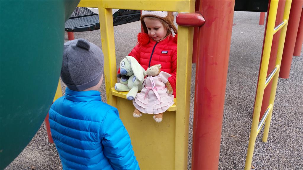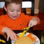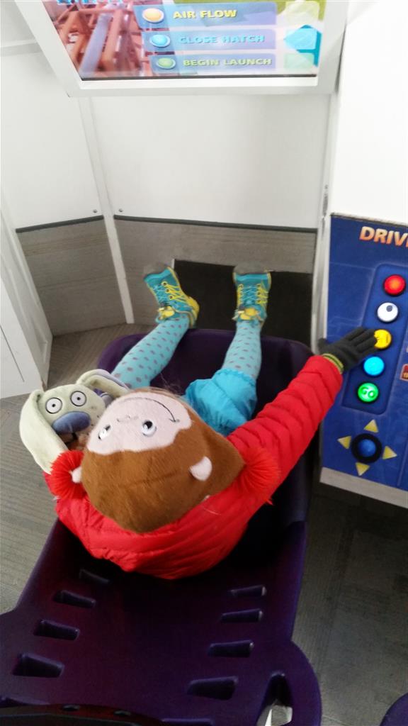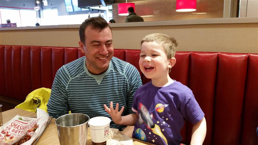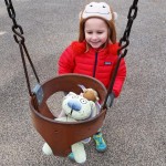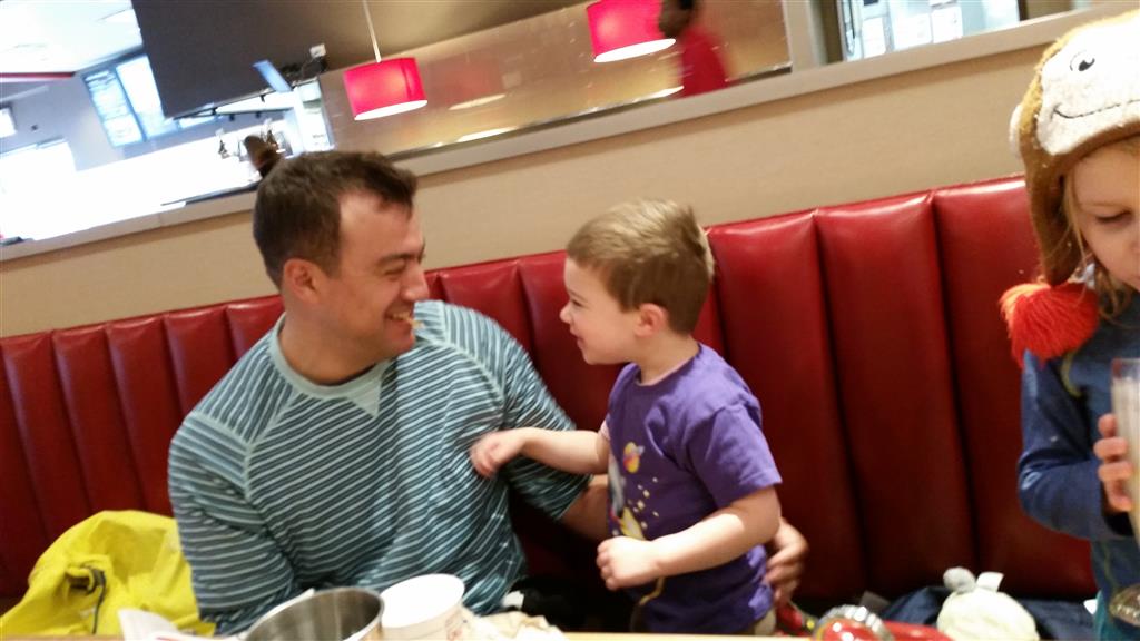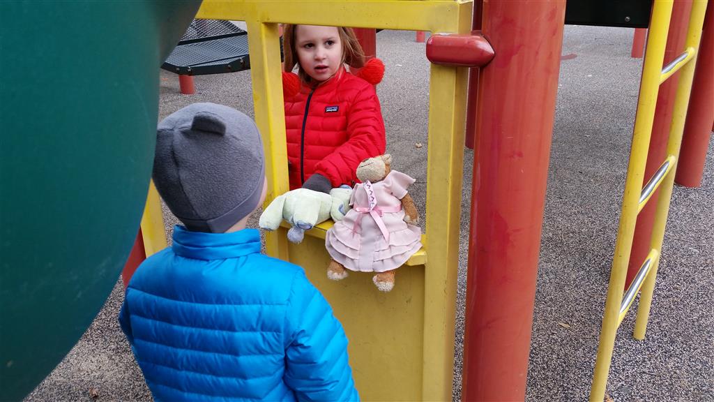 Eleanor and Henry enjoyed a visit from Grandma and Grandpa this weekend. Both kids really wanted to take Grandma and Grandpa to the planetarium, so that was first on our list on Saturday. Uncle B joined us and we had fun launching rockets, watching the Sesame Street movie, and exploring the rest of the great exhibits. After that, we headed to Smash Burger for a yummy lunch including milkshakes. Uncle B and Henry did a little “Lady and the Tramp” recreation with sweet potato fries instead of spaghetti. We spent the rest of the day relaxing and playing at home. The previous day we took Grandma and Grandpa to “Orange Swing Park” with the “Travelling Friend” from Eleanor’s school. This weekend was her turn to take the friend, and then on Tuesday she will get to take in pictures of the weekend and tell her class about all the fun activities that “Knuffle Bunny” joined in on. We got a fun surprise from Uncle B on Saturday, some new eating utensils in the form of construction vehicles. Henry really liked eating his taco and apple with the bulldozer pusher and excavator fork.