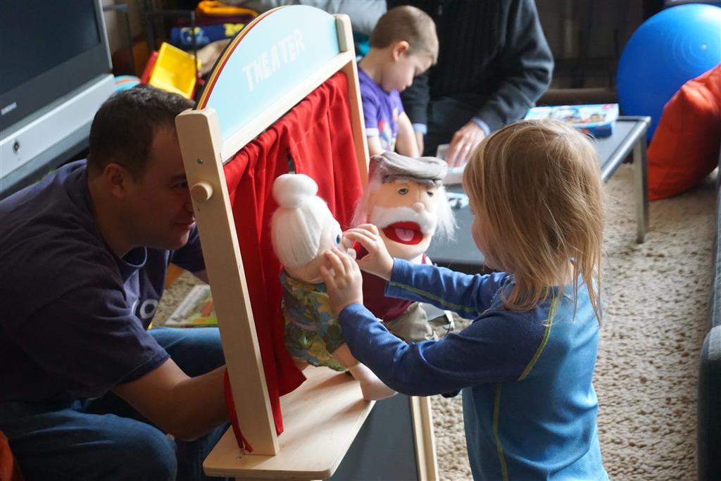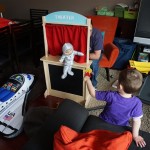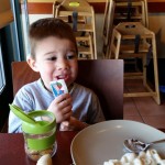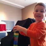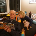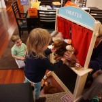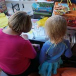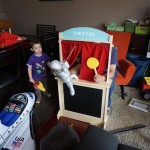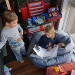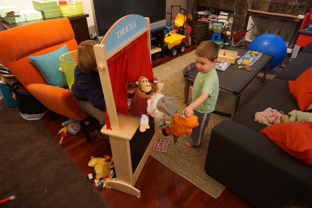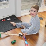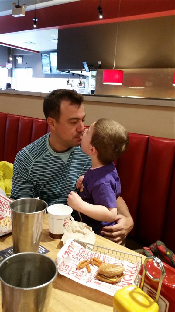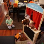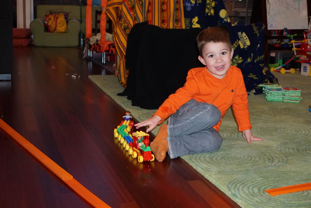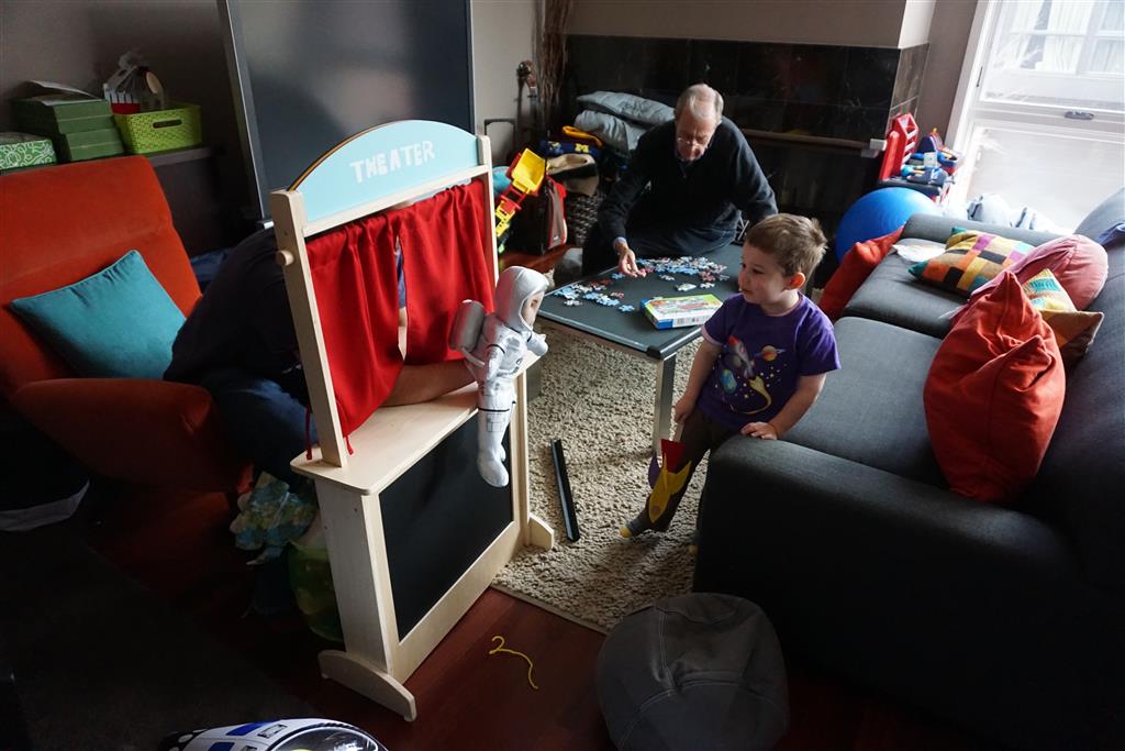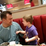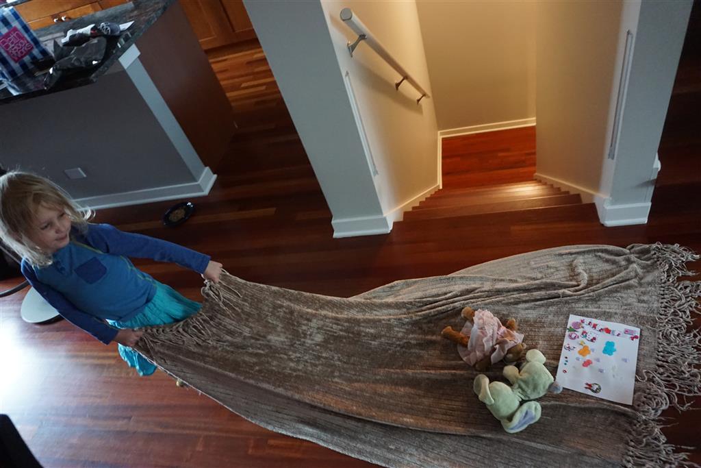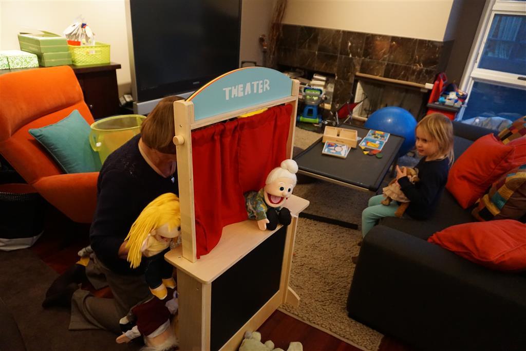 Eleanor and Henry enjoyed a visit from Grandma and Grandpa this weekend. Both kids really wanted to take Grandma and Grandpa to the planetarium, so that was first on our list on Saturday. Uncle B joined us and we had fun launching rockets, watching the Sesame Street movie, and exploring the rest of the great exhibits. After that, we headed to Smash Burger for a yummy lunch including milkshakes. Uncle B and Henry did a little “Lady and the Tramp” recreation with sweet potato fries instead of spaghetti. We spent the rest of the day relaxing and playing at home. The previous day we took Grandma and Grandpa to “Orange Swing Park” with the “Travelling Friend” from Eleanor’s school. This weekend was her turn to take the friend, and then on Tuesday she will get to take in pictures of the weekend and tell her class about all the fun activities that “Knuffle Bunny” joined in on. We got a fun surprise from Uncle B on Saturday, some new eating utensils in the form of construction vehicles. Henry really liked eating his taco and apple with the bulldozer pusher and excavator fork.