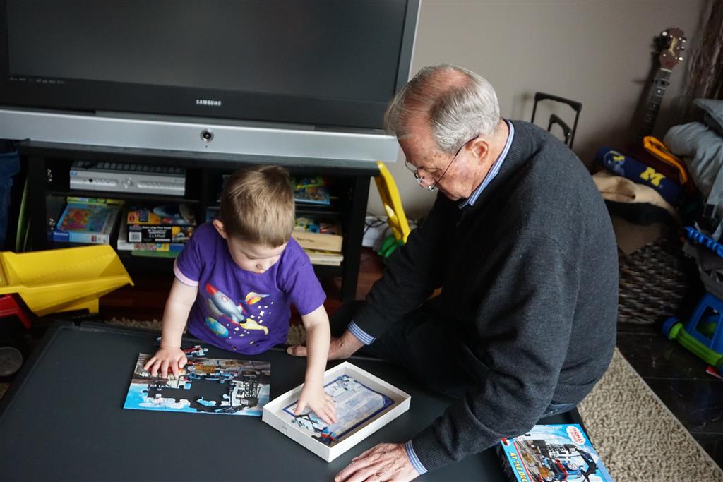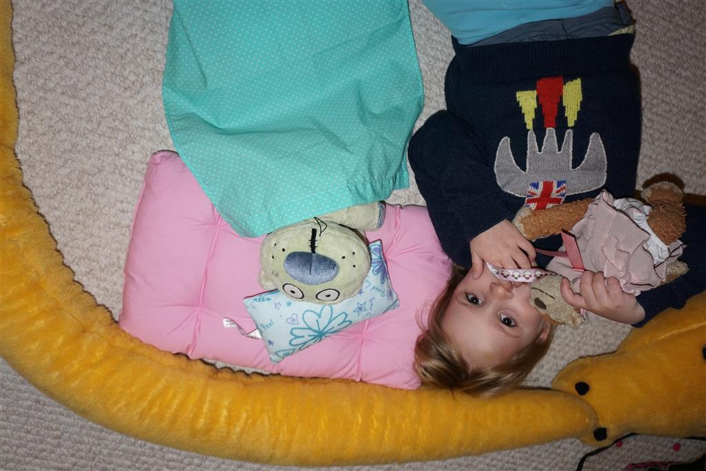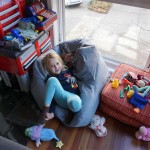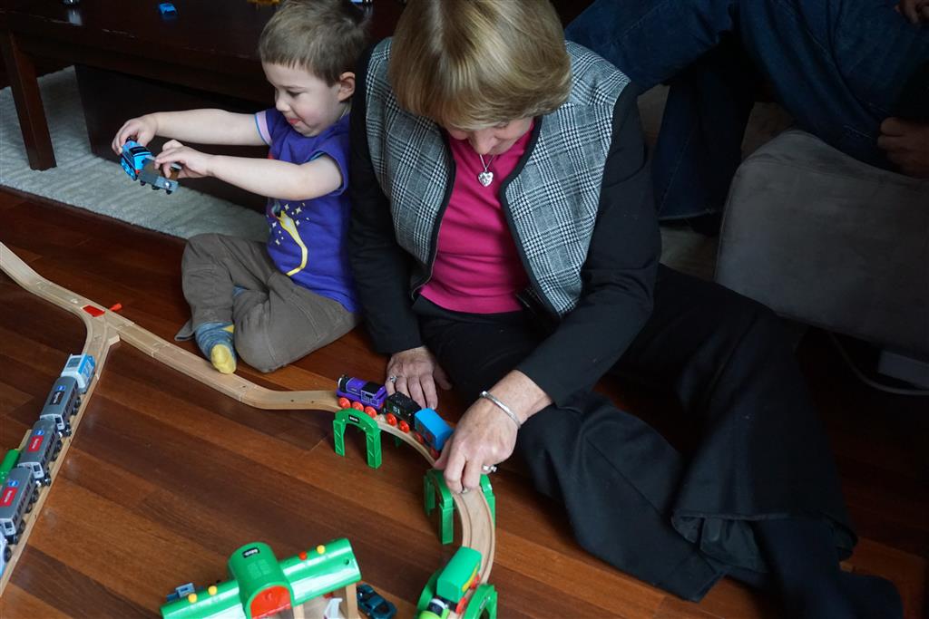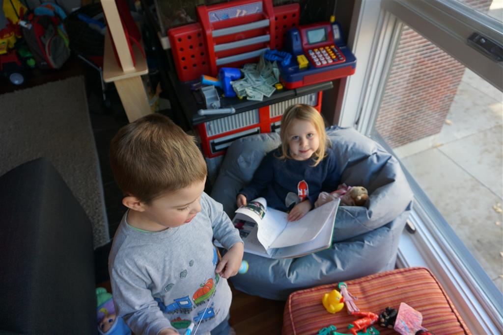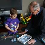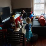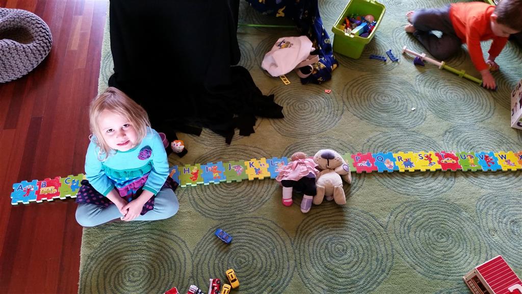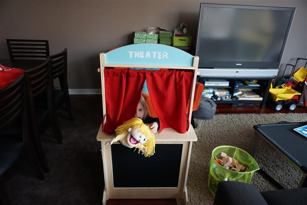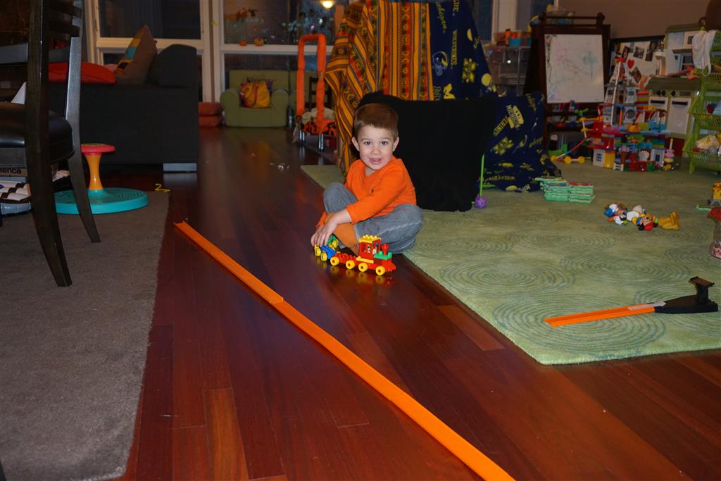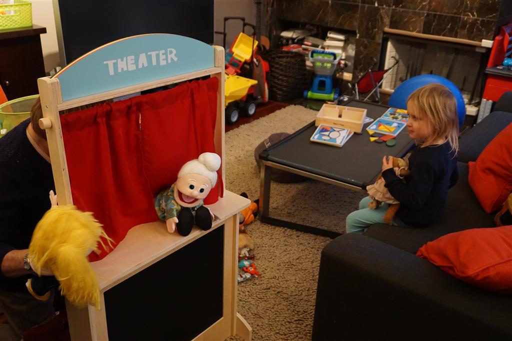Eleanor and Henry enjoyed a visit from Grandma and Grandpa this weekend. Both kids really wanted to take Grandma and Grandpa to the planetarium, so that was first on our list on Saturday. Uncle B joined us and we had fun launching rockets, watching the Sesame Street movie, and exploring the rest of the great exhibits. After that, we headed to Smash Burger for a yummy lunch including milkshakes. Uncle B and Henry did a little “Lady and the Tramp” recreation with sweet potato fries instead of spaghetti. We spent the rest of the day relaxing and playing at home. The previous day we took Grandma and Grandpa to “Orange Swing Park” with the “Travelling Friend” from Eleanor’s school. This weekend was her turn to take the friend, and then on Tuesday she will get to take in pictures of the weekend and tell her class about all the fun activities that “Knuffle Bunny” joined in on. We got a fun surprise from Uncle B on Saturday, some new eating utensils in the form of construction vehicles. Henry really liked eating his taco and apple with the bulldozer pusher and excavator fork.