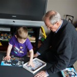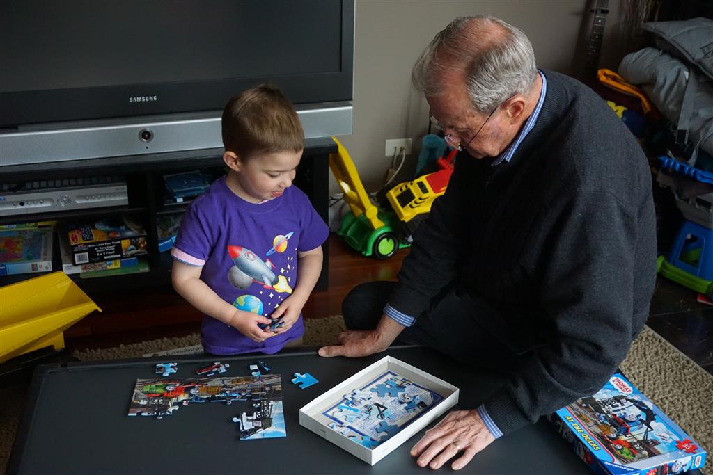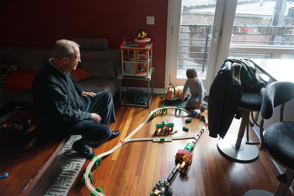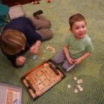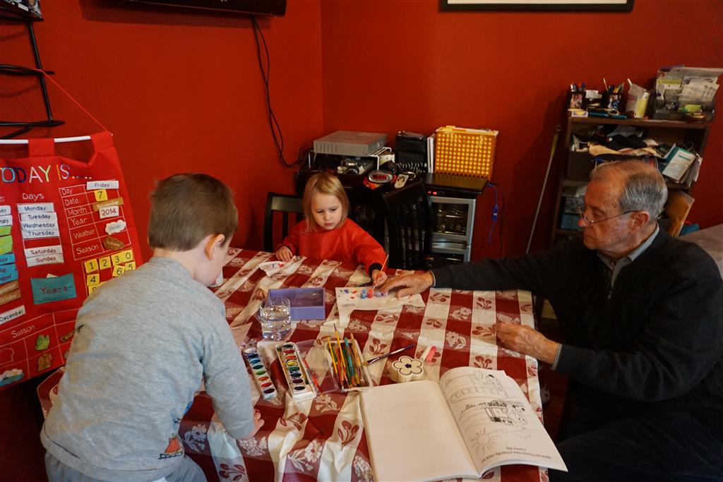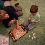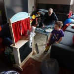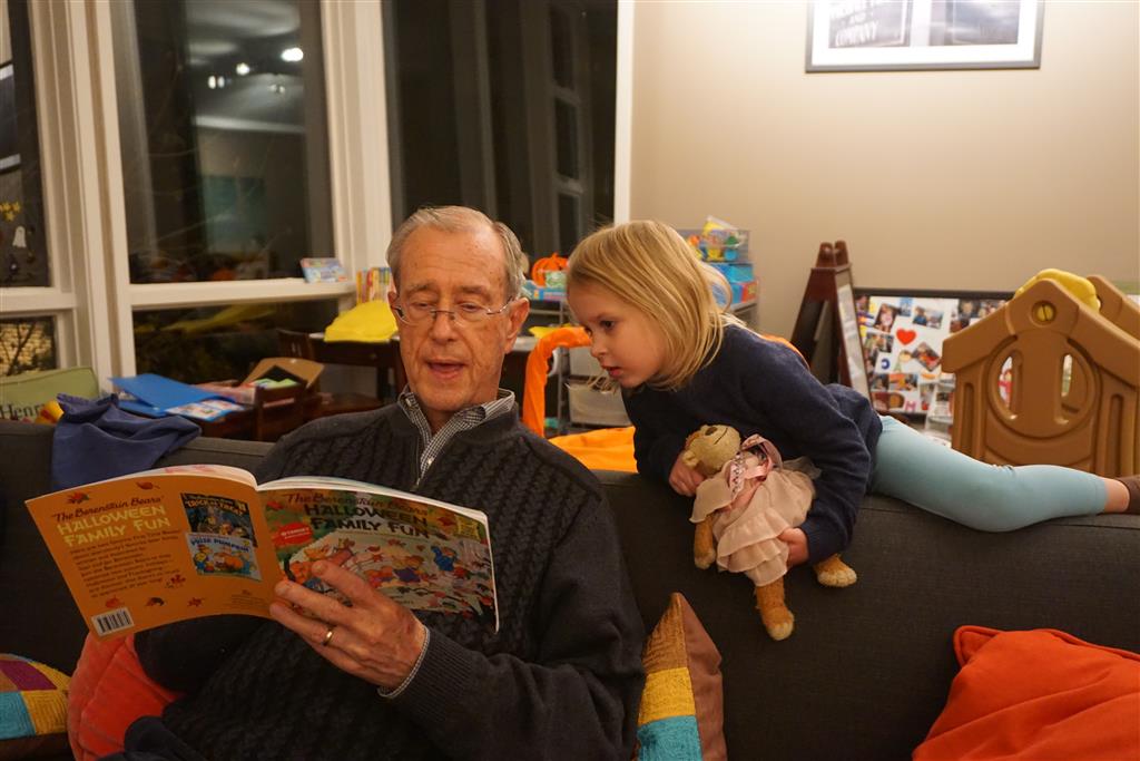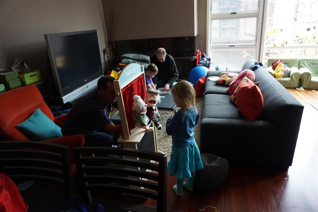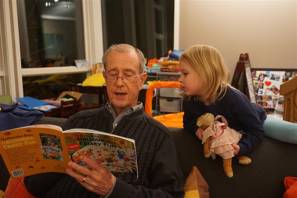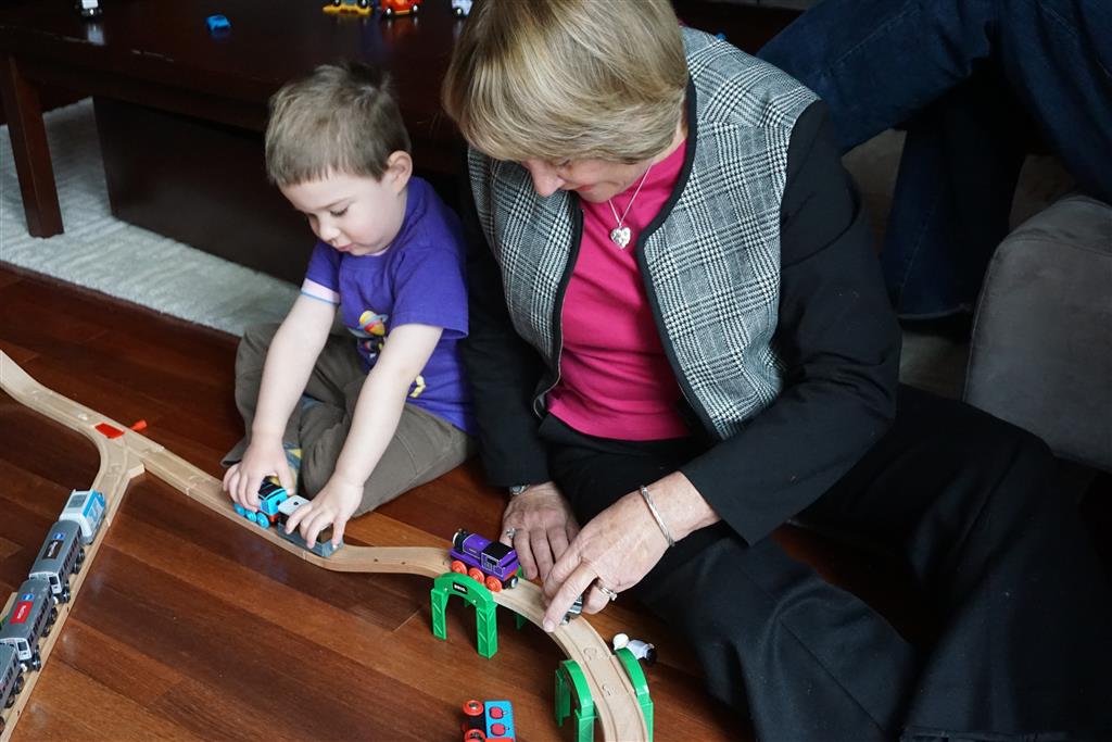 Eleanor and Henry enjoyed a visit from Grandma and Grandpa this weekend. Both kids really wanted to take Grandma and Grandpa to the planetarium, so that was first on our list on Saturday. Uncle B joined us and we had fun launching rockets, watching the Sesame Street movie, and exploring the rest of the great exhibits. After that, we headed to Smash Burger for a yummy lunch including milkshakes. Uncle B and Henry did a little “Lady and the Tramp” recreation with sweet potato fries instead of spaghetti. We spent the rest of the day relaxing and playing at home. The previous day we took Grandma and Grandpa to “Orange Swing Park” with the “Travelling Friend” from Eleanor’s school. This weekend was her turn to take the friend, and then on Tuesday she will get to take in pictures of the weekend and tell her class about all the fun activities that “Knuffle Bunny” joined in on. We got a fun surprise from Uncle B on Saturday, some new eating utensils in the form of construction vehicles. Henry really liked eating his taco and apple with the bulldozer pusher and excavator fork.