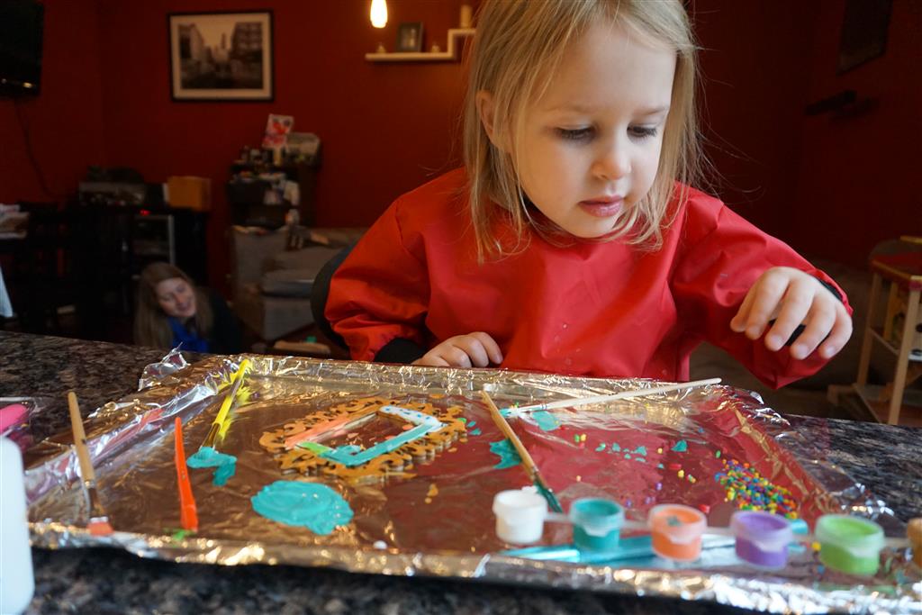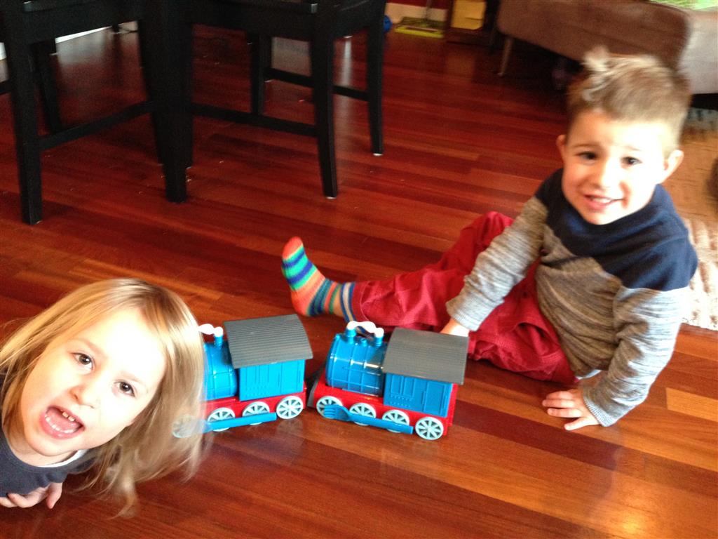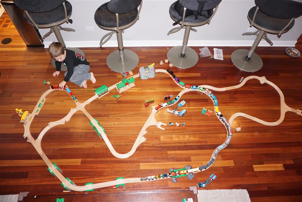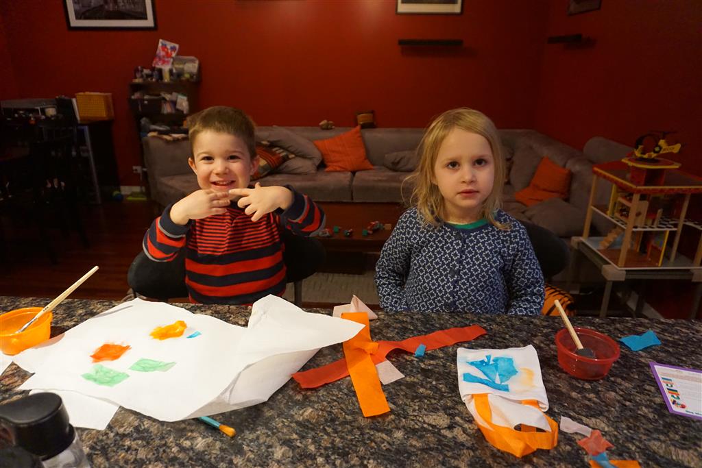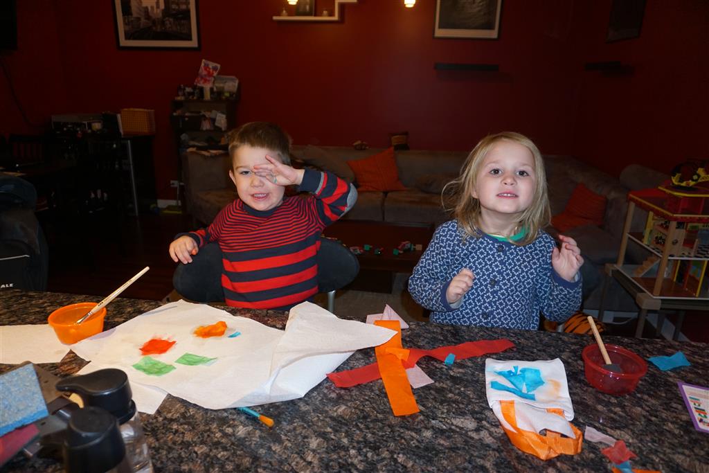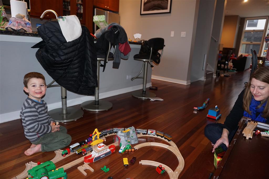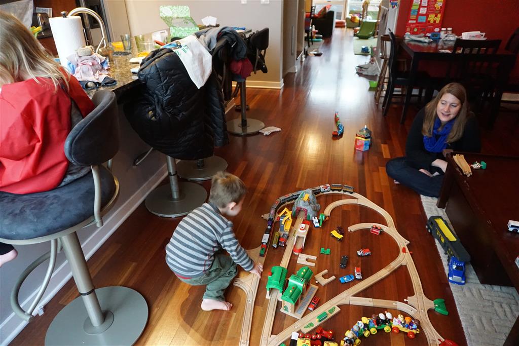 The winter finally arrived here, with the first show of the season. The early part of the week was nice enough for some park time, but by Thursday it was definitely time for inside play. We had lots of time for trains and crafts. On Thursday, Eleanor and Henry were watching a video while Mom was cooking dinner, and Eleanor asked Mom, “Is groundpa day real?”. Mom tried a few times to figure out what she was asking, and then asked Eleanor to describe it. Eleanor said, “You know, like a pot that is in the ground”. To which Mom replied, “groundpot day?”, and then Eleanor said yes, they were talking about it in the video. Mom finally figured out that they were talking about Groundhogs day. Can’t really argue with her, it is a pretty weird day when you think about hearing it for the first time. A few minutes later, Henry looked up and said “What is Hancock Day?” Ha! He and Eleanor work the Hancock Tower into pretty much any conversation they can.