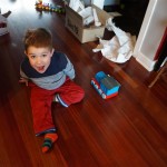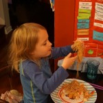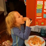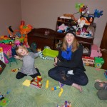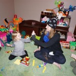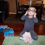 On Monday in school, Eleanor had her turn to tell her classmates all about the fun she had with Knuffle Bunny last weekend. She didn’t choose to say any words, but she sat in front of the class while the teacher played a video we had recorded of Eleanor talking about the weekend. Tomorrow the whole family heads into Eleanor’s class for “Family Share” day, where we share some family traditions and some things we like to do as a family. We are looking forward to seeing Eleanor interacting with her classmates!