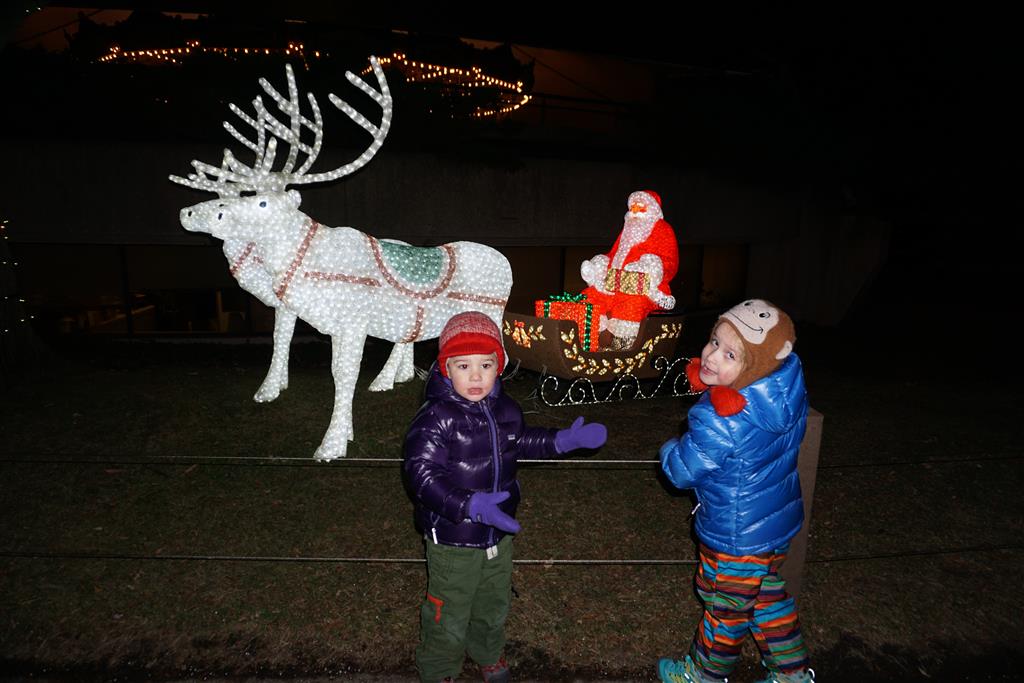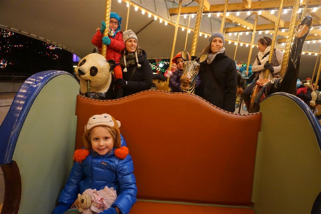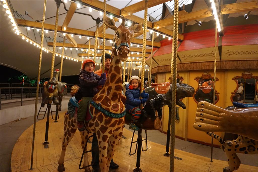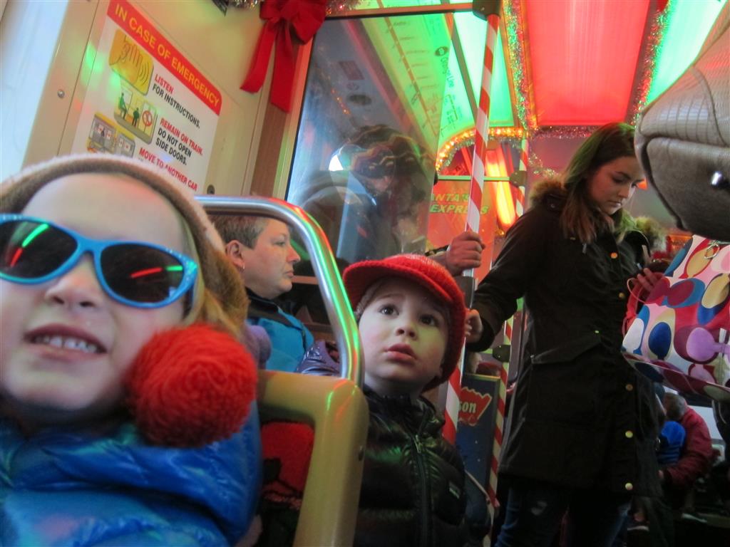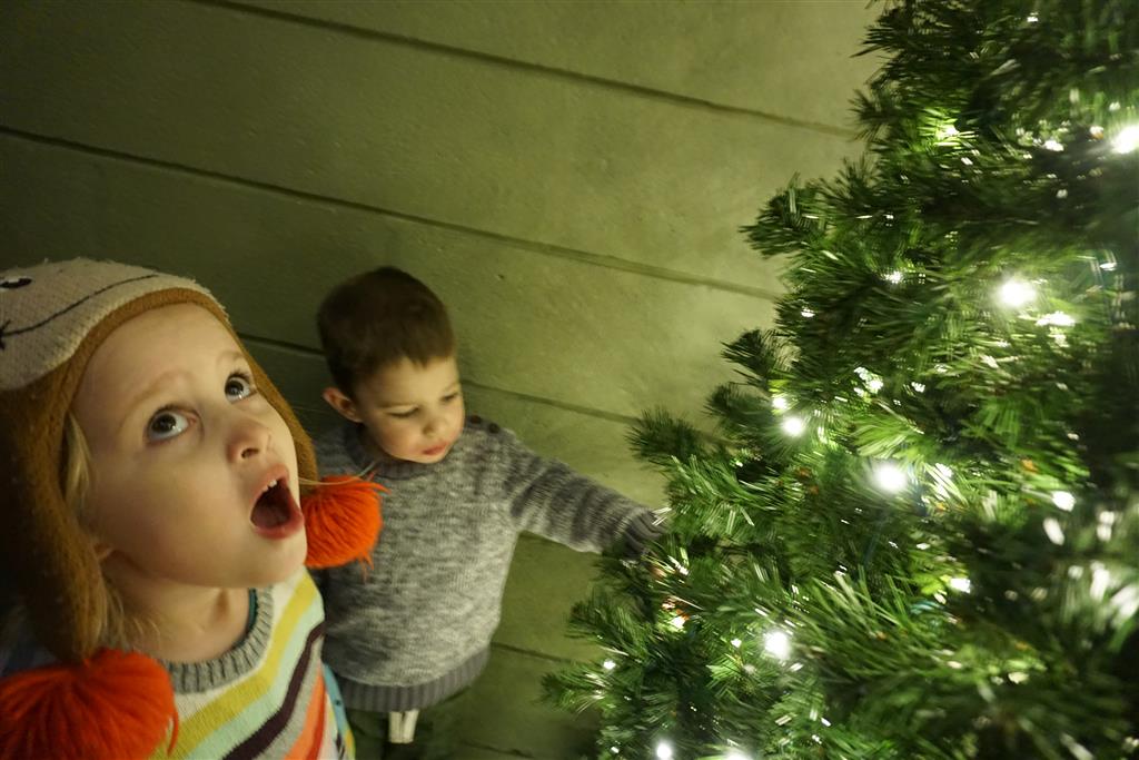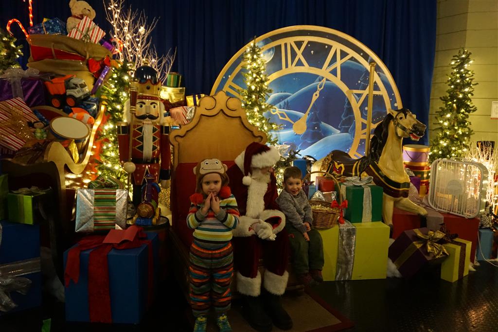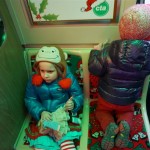 Eleanor and Henry had a fun week starting to get ready for Christmas. They started the week with a ride on the Santa Train, which both kids loved. Henry wanted to ride it to the “end of the line”. Next, we had a fun night at “Zoo Lights”, where they have a holiday light show, and have a Santa you can visit. The line for Santa was a little long, and with the kids not super excited about sitting on his lap I figured that we could skip it, but they both wanted to wait. Eleanor especially wanted to stay in line, but when it was our turn we didn’t get any smiles from her. The most exciting part of the trip was riding the carousel and the brand new train. The new train is bigger and the train run in better with a loop and a little bridge, and even a station!