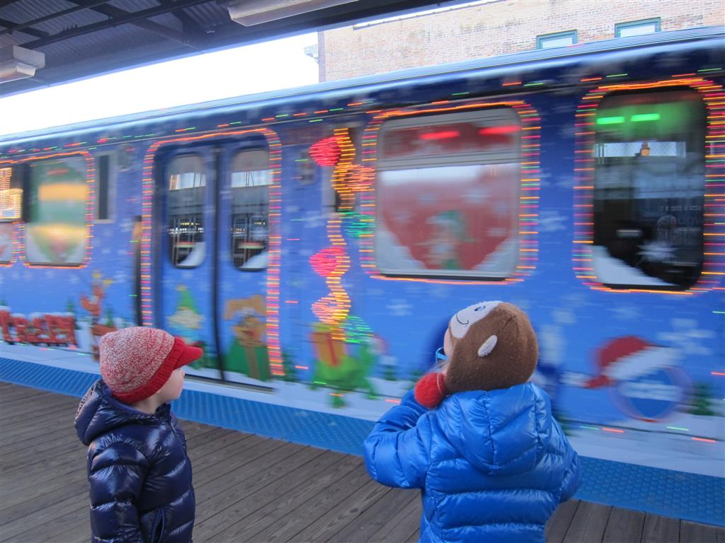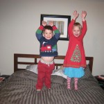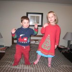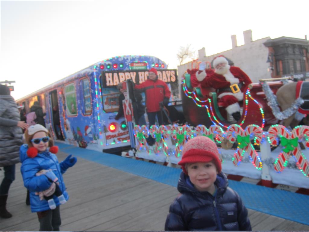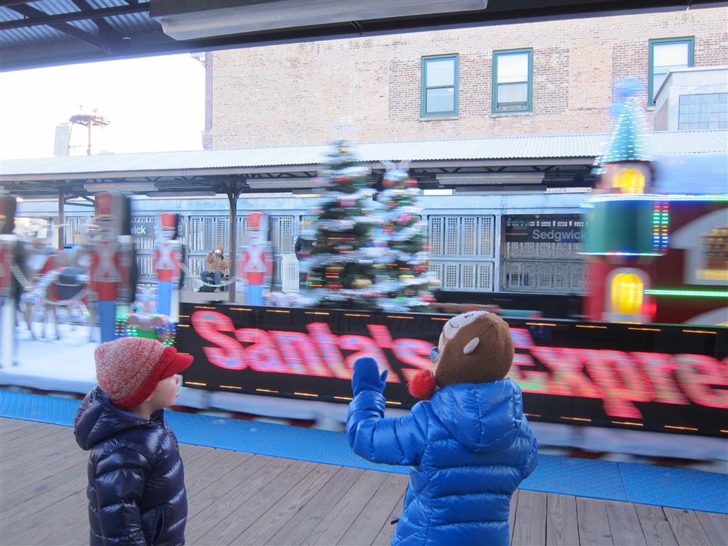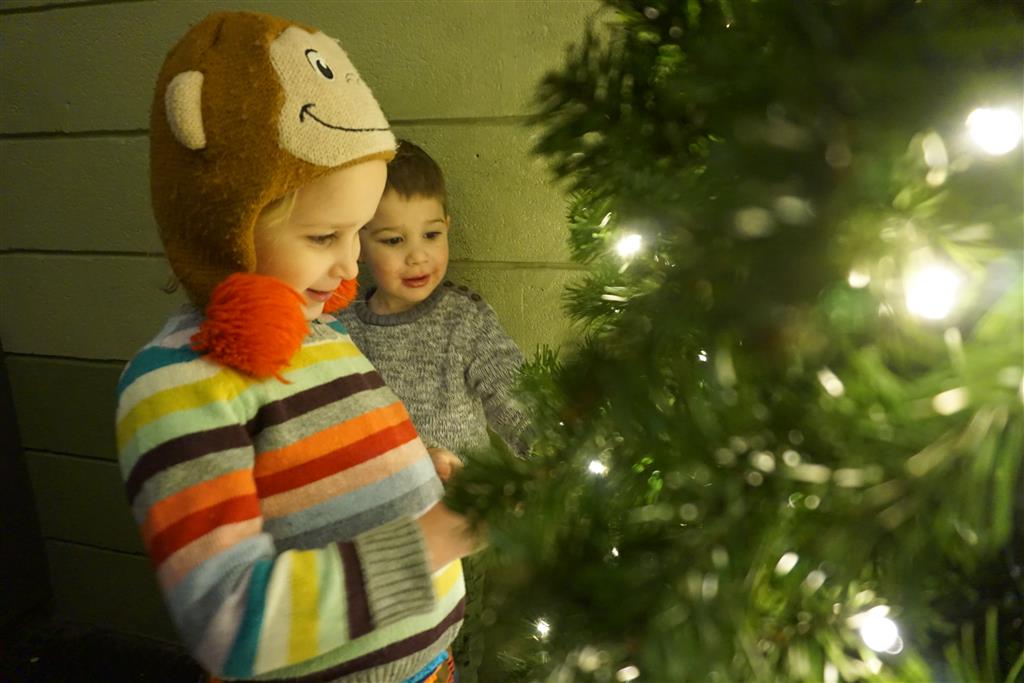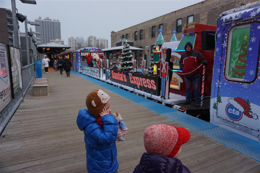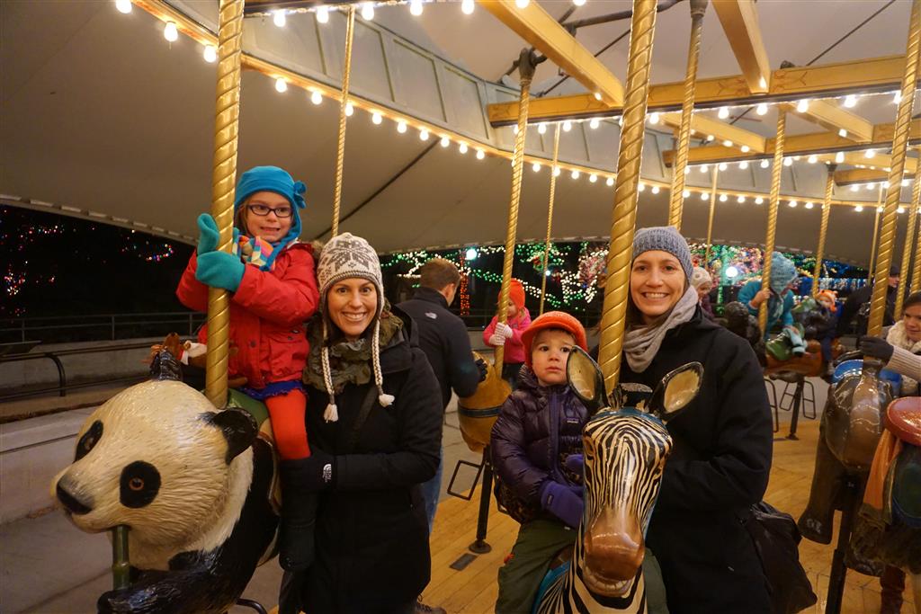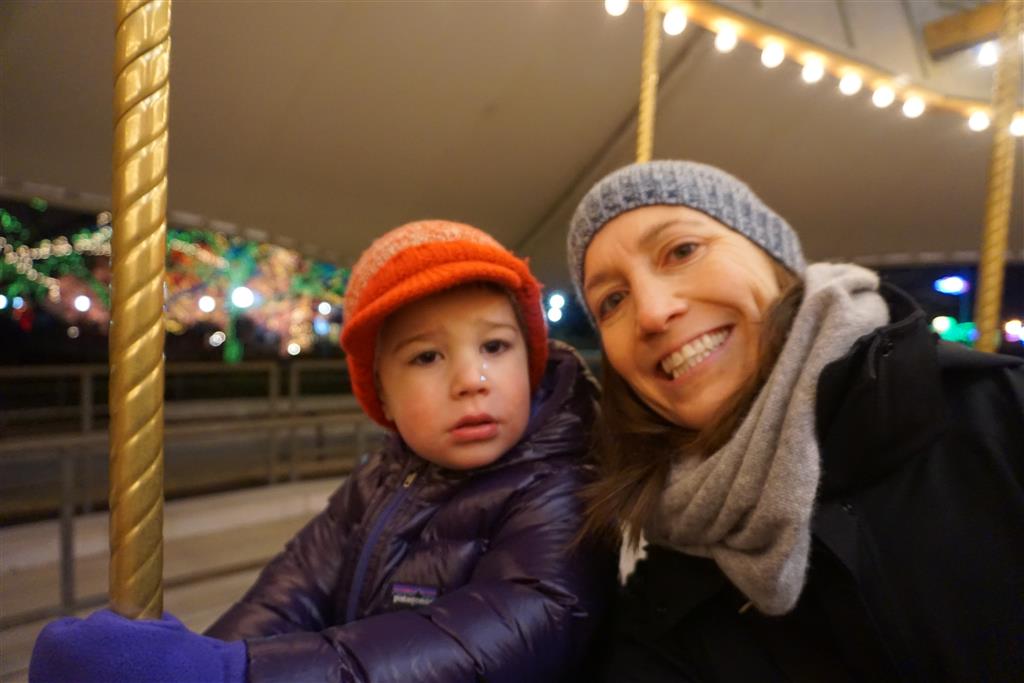 Eleanor and Henry had a fun week starting to get ready for Christmas. They started the week with a ride on the Santa Train, which both kids loved. Henry wanted to ride it to the “end of the line”. Next, we had a fun night at “Zoo Lights”, where they have a holiday light show, and have a Santa you can visit. The line for Santa was a little long, and with the kids not super excited about sitting on his lap I figured that we could skip it, but they both wanted to wait. Eleanor especially wanted to stay in line, but when it was our turn we didn’t get any smiles from her. The most exciting part of the trip was riding the carousel and the brand new train. The new train is bigger and the train run in better with a loop and a little bridge, and even a station!