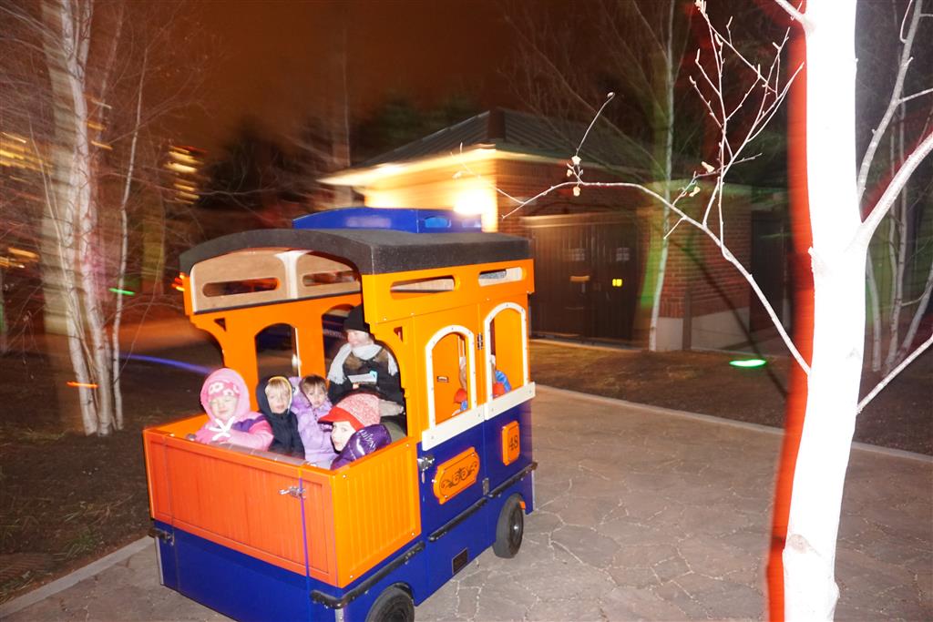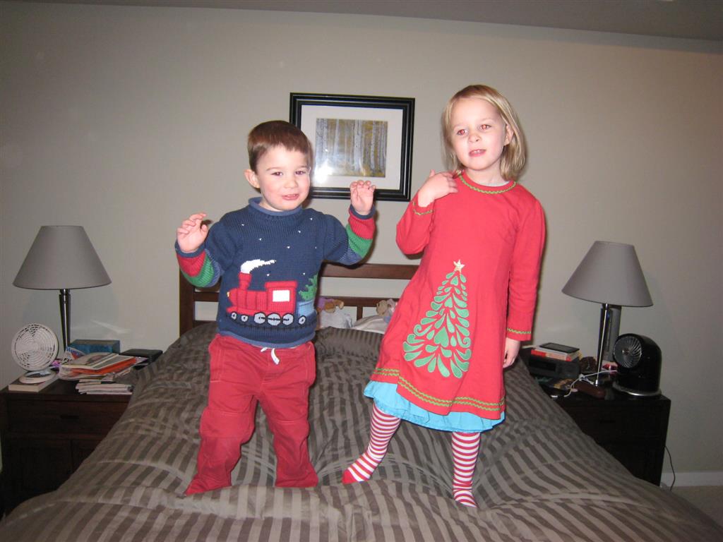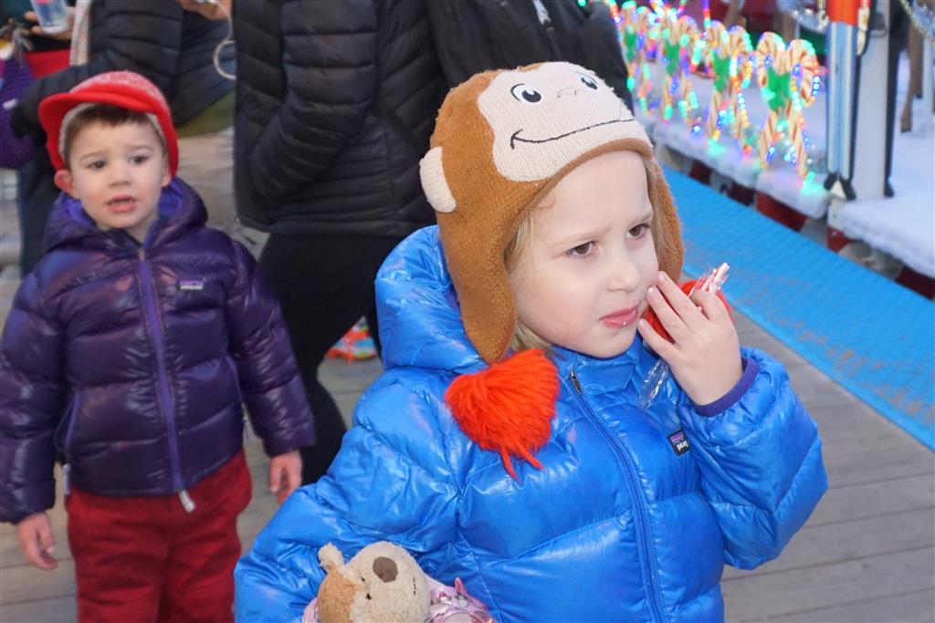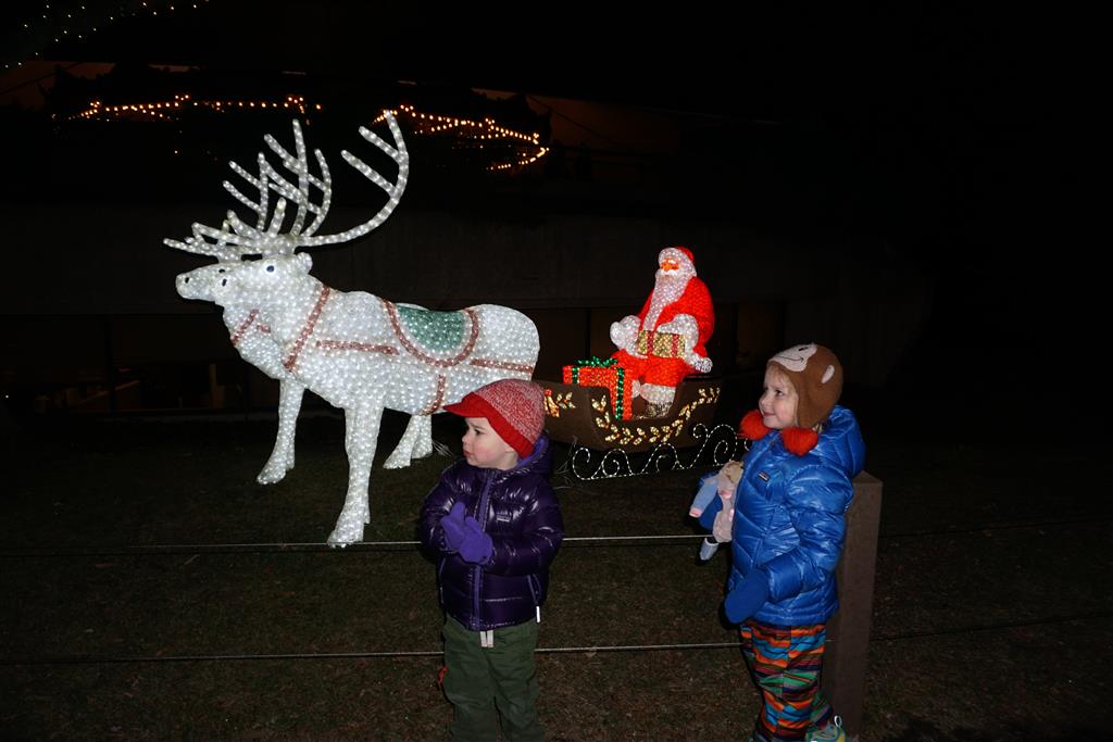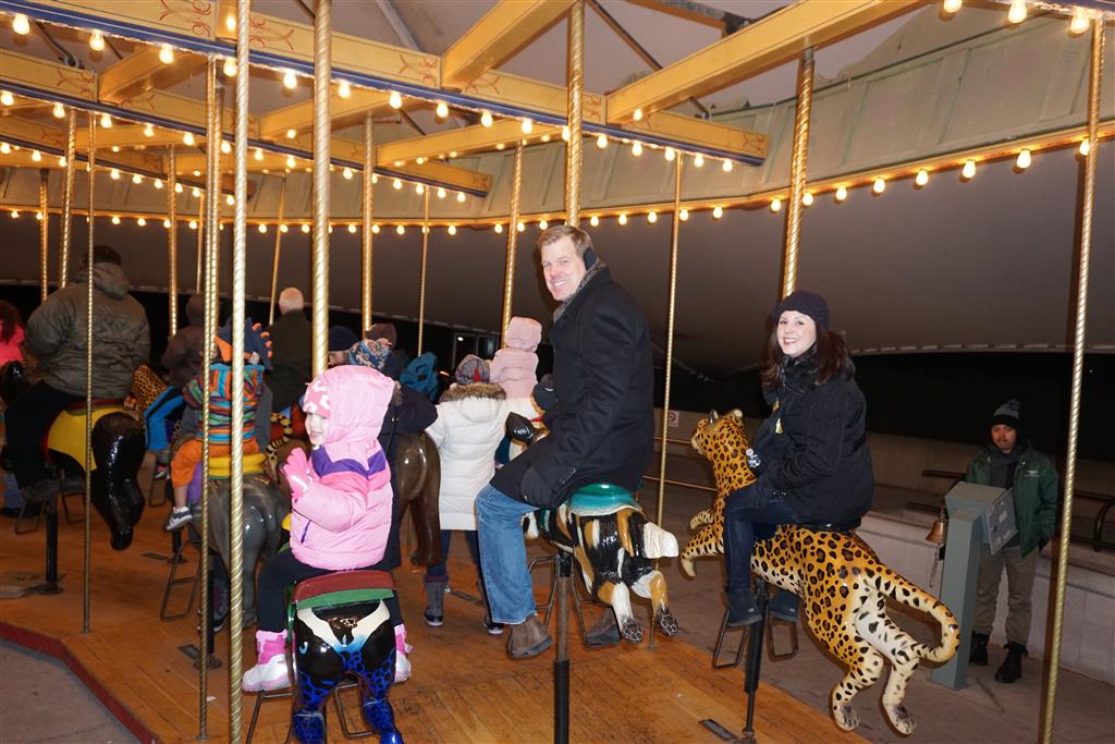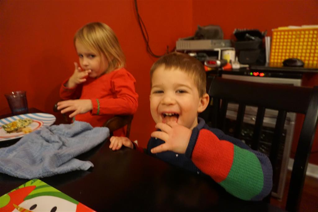 Eleanor and Henry had a fun week starting to get ready for Christmas. They started the week with a ride on the Santa Train, which both kids loved. Henry wanted to ride it to the “end of the line”. Next, we had a fun night at “Zoo Lights”, where they have a holiday light show, and have a Santa you can visit. The line for Santa was a little long, and with the kids not super excited about sitting on his lap I figured that we could skip it, but they both wanted to wait. Eleanor especially wanted to stay in line, but when it was our turn we didn’t get any smiles from her. The most exciting part of the trip was riding the carousel and the brand new train. The new train is bigger and the train run in better with a loop and a little bridge, and even a station!