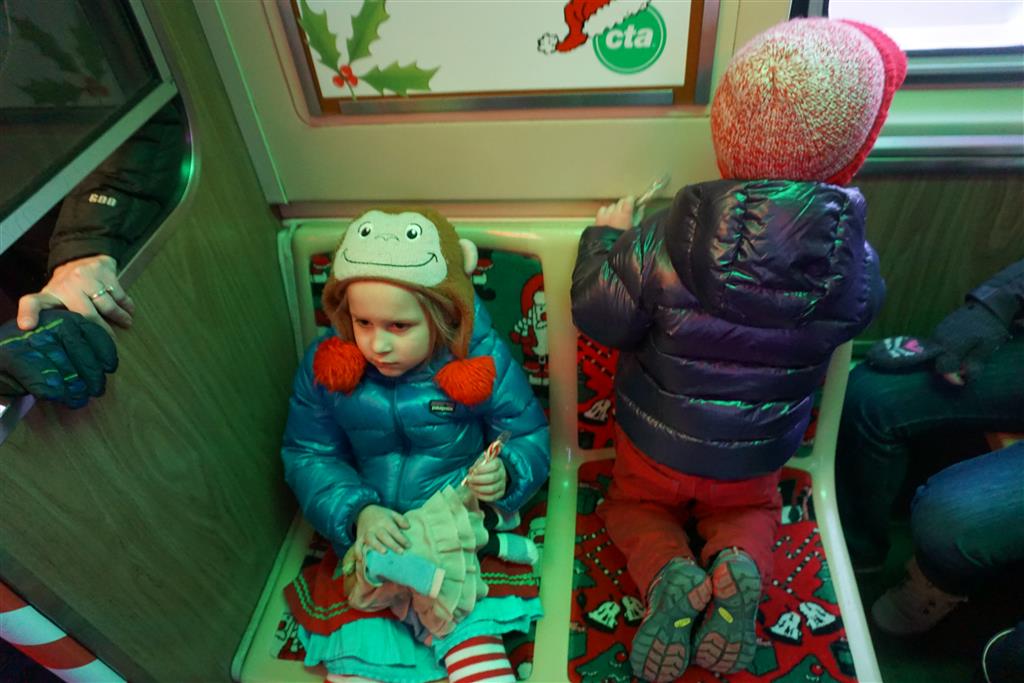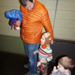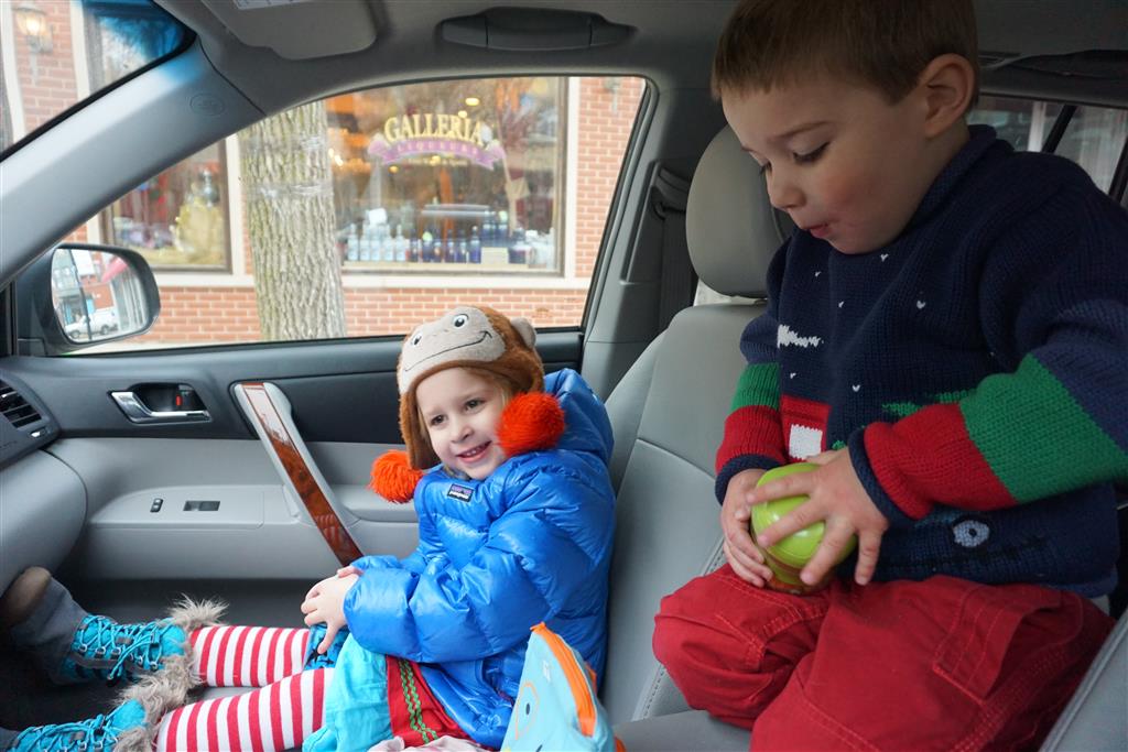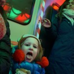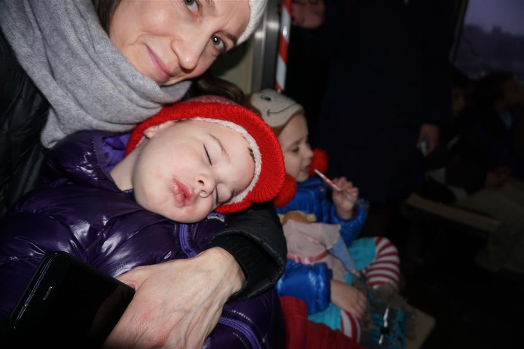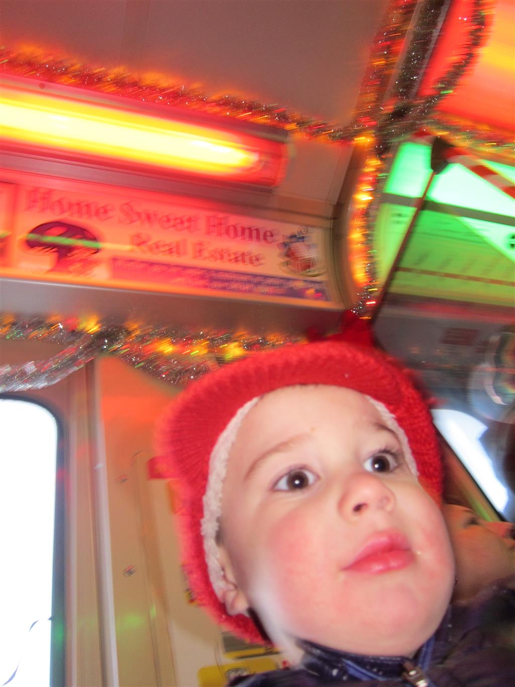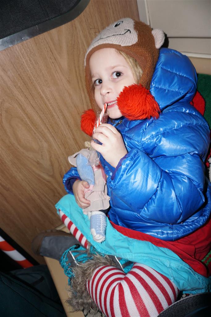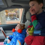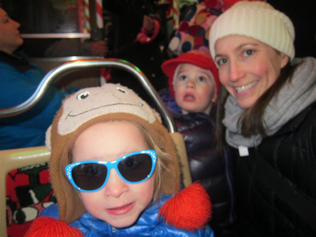 On Friday we went down to the Christkindlmarket for our annual visit with Santa. They had a new Santa House this year, which was different, but the kids liked seeing him and also liked getting to pick Dad up from work. After that, it was time for another trip on the Santa Train. Somehow, while getting on the train, Henry’s foot slipped between the train and the platform – but luckily Mom was hanging on to his hand. The excitement proved too much for Henry, and he fell asleep on the ride.