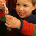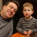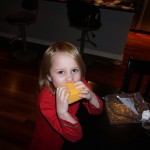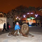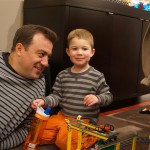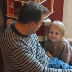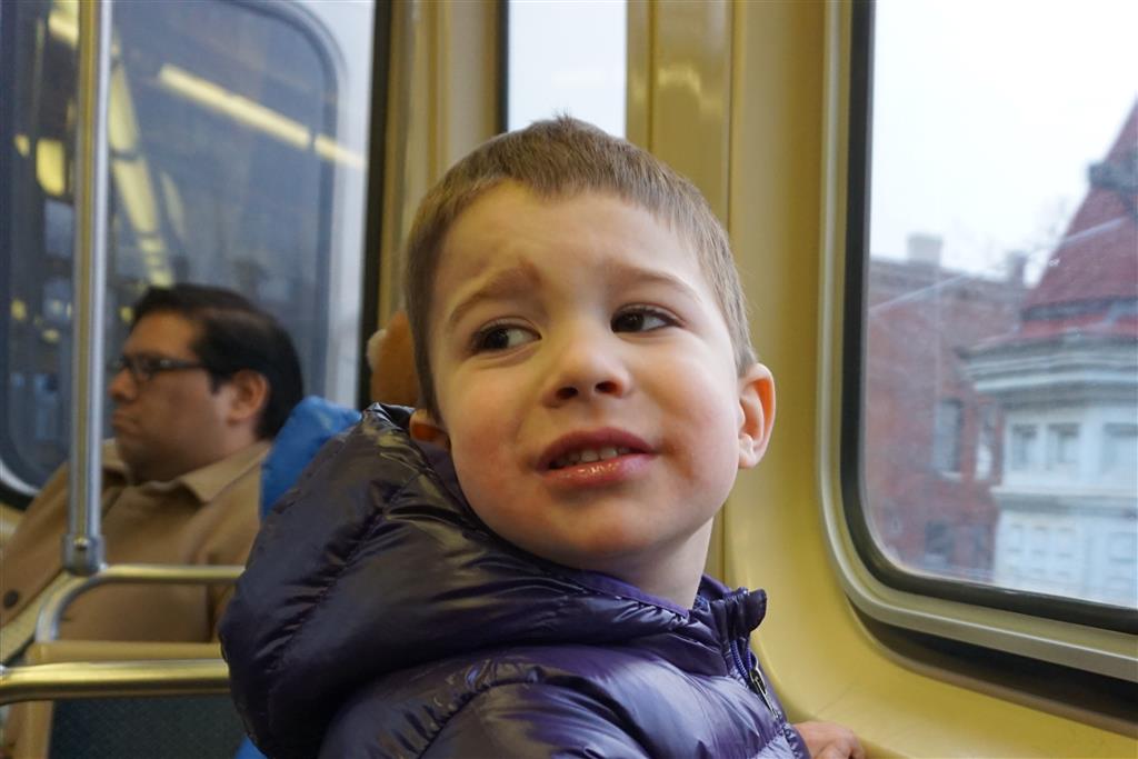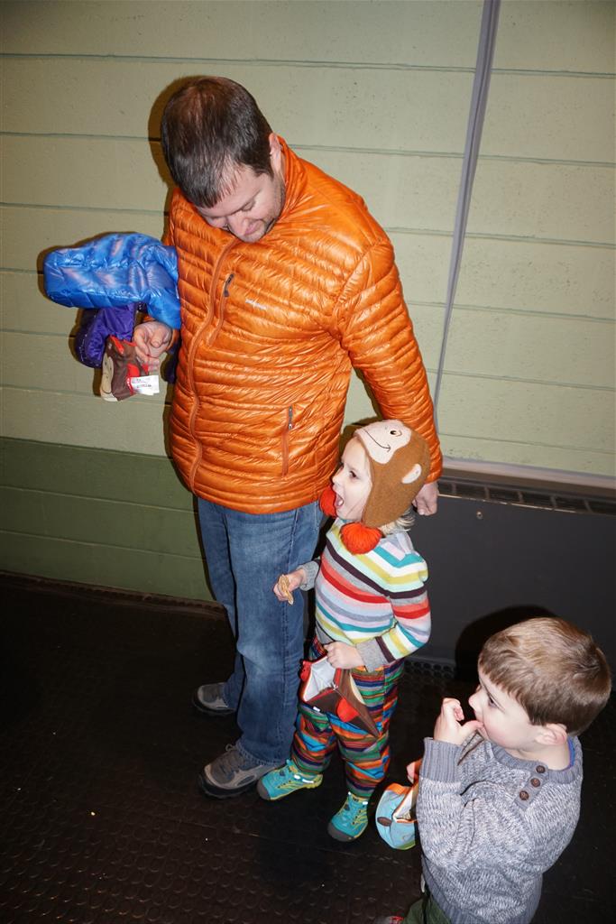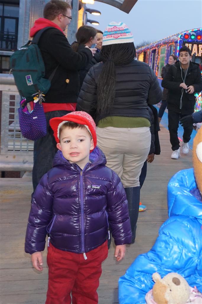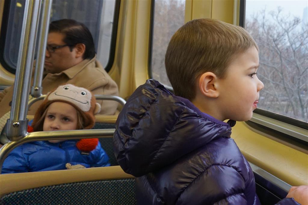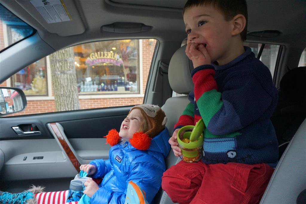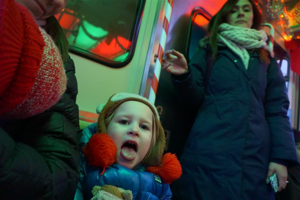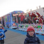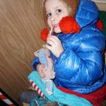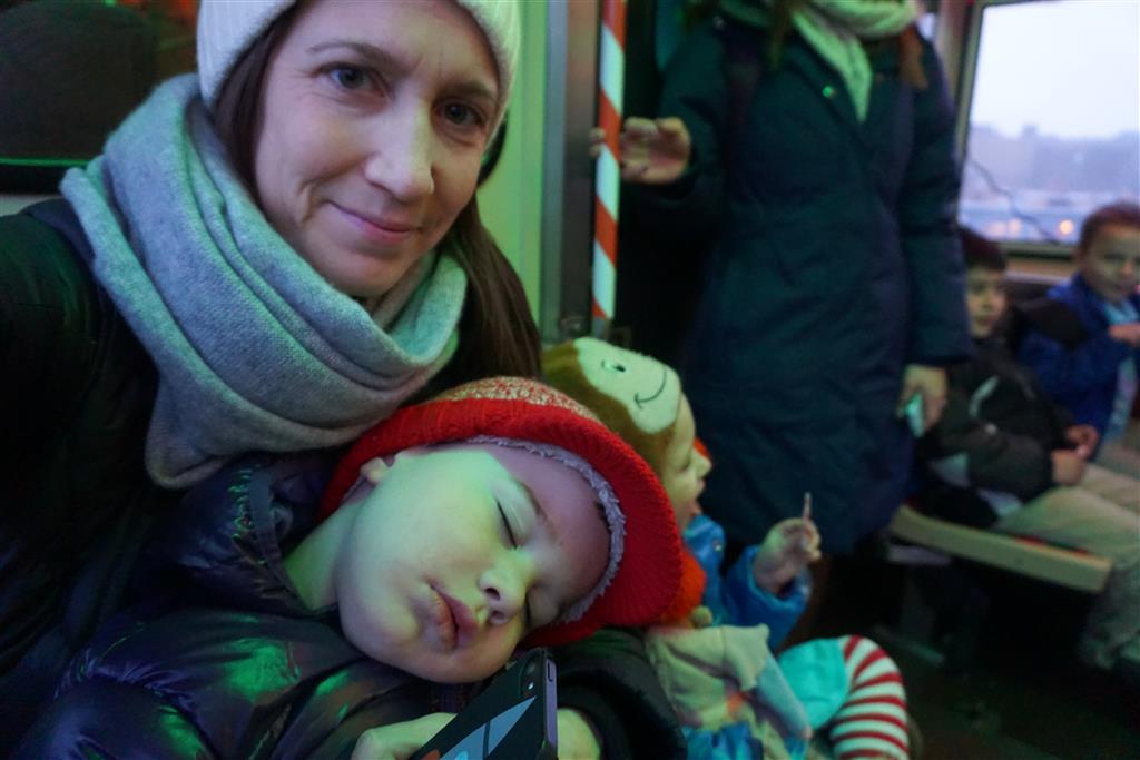 On Friday we went down to the Christkindlmarket for our annual visit with Santa. They had a new Santa House this year, which was different, but the kids liked seeing him and also liked getting to pick Dad up from work. After that, it was time for another trip on the Santa Train. Somehow, while getting on the train, Henry’s foot slipped between the train and the platform – but luckily Mom was hanging on to his hand. The excitement proved too much for Henry, and he fell asleep on the ride.