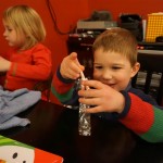 After making up a new song: “I’m going to write it on my fist so I can get it on my pink phone.” (Mom sometimes writes song names on her wrist to remember to add them to her phone so she can play them for the kids)