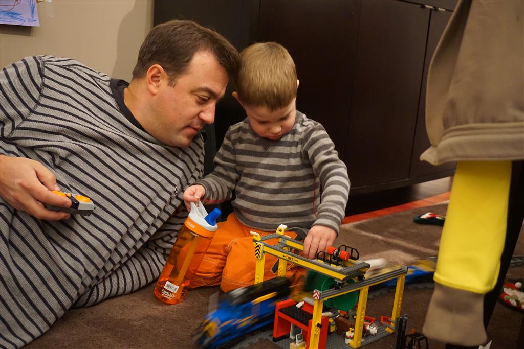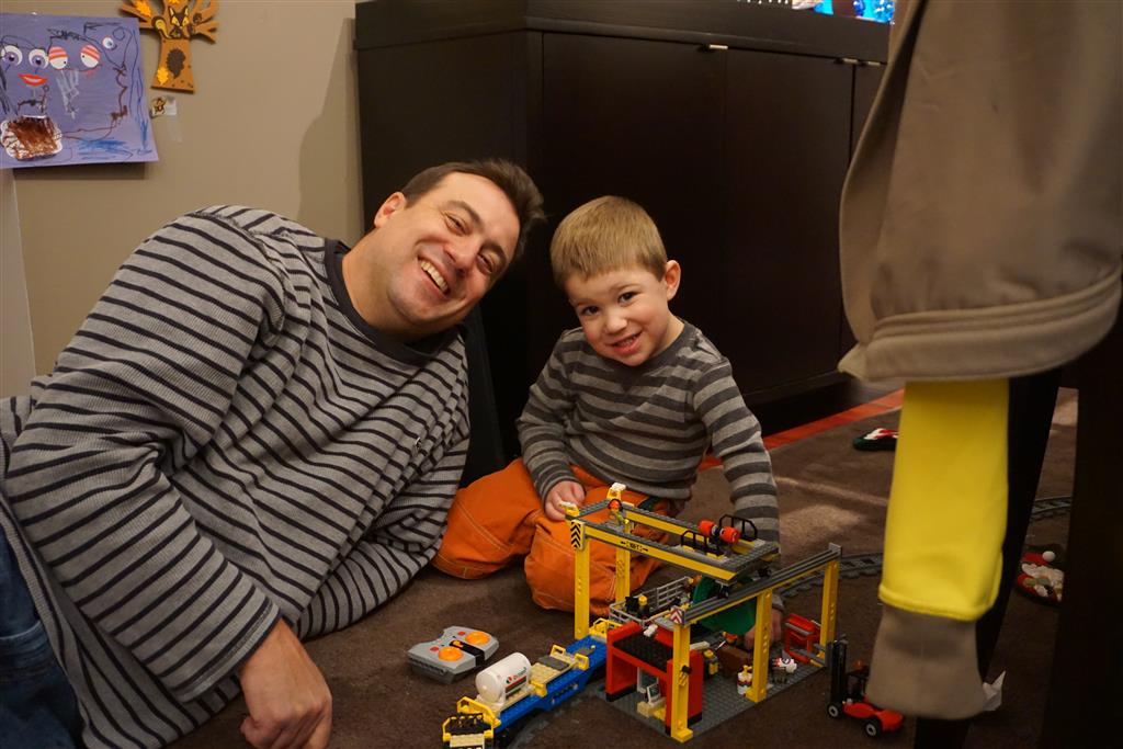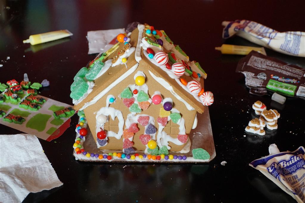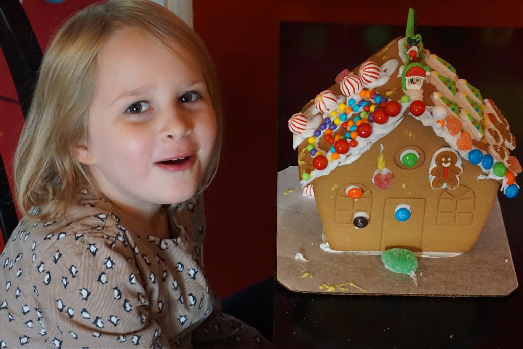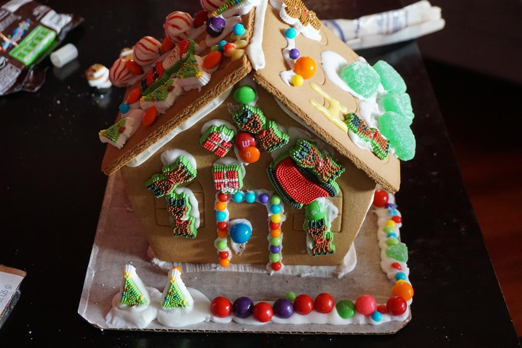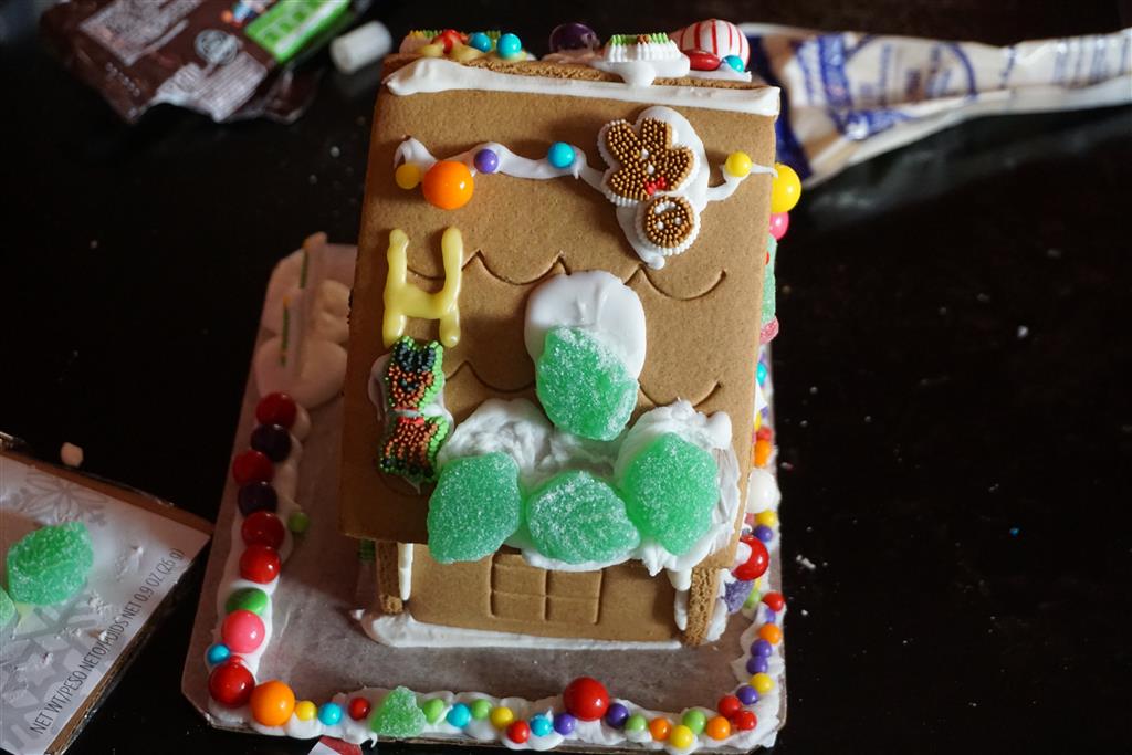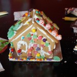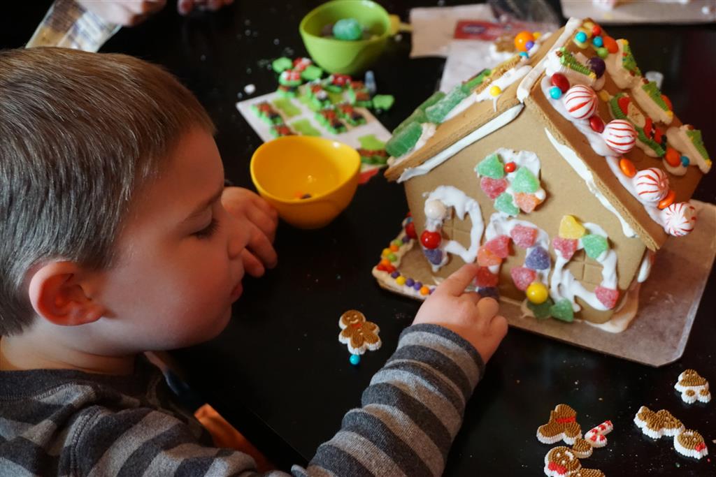 Saturday we did our annual ginger bread houses – and this year the house was pre-constructed! It was a bit of a purchasing mistake, but it actually worked out really well and then kids could just focus on decorating. You have to keep a close eye on Henry or else more of the decorations will end up in his tummy than on the house! We also had a fun visit from Uncle B, and Eleanor showed him the houses and our tree, and he and Henry played trains for a solid hour.