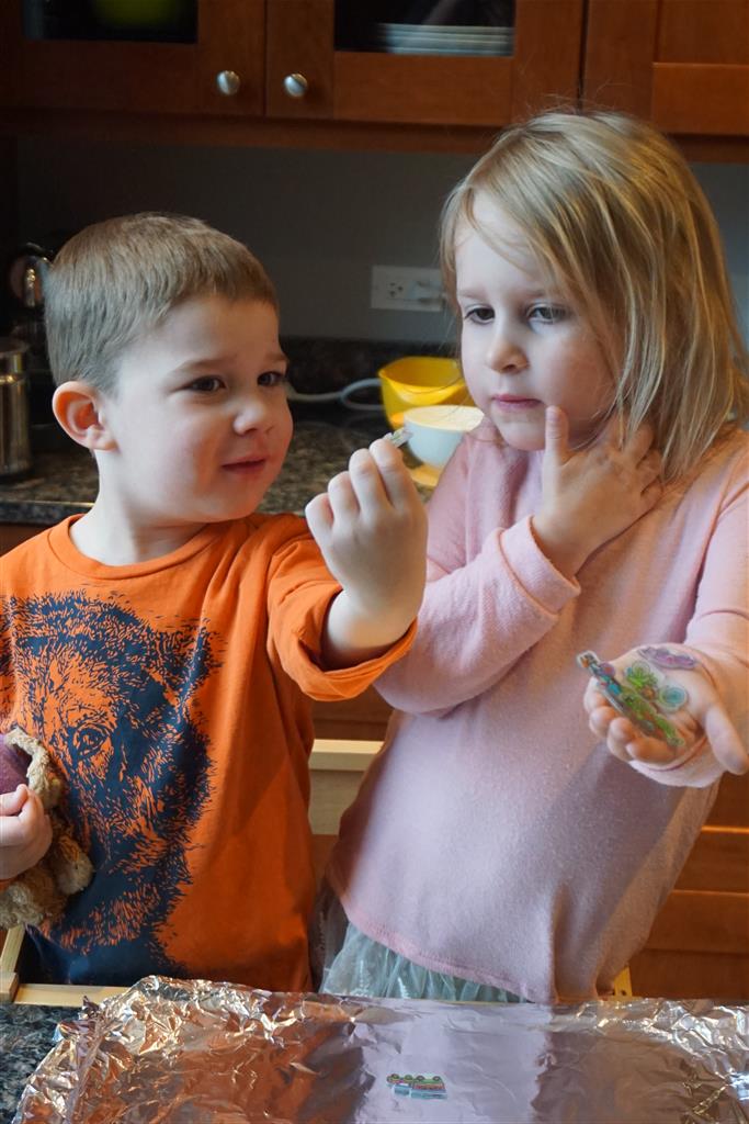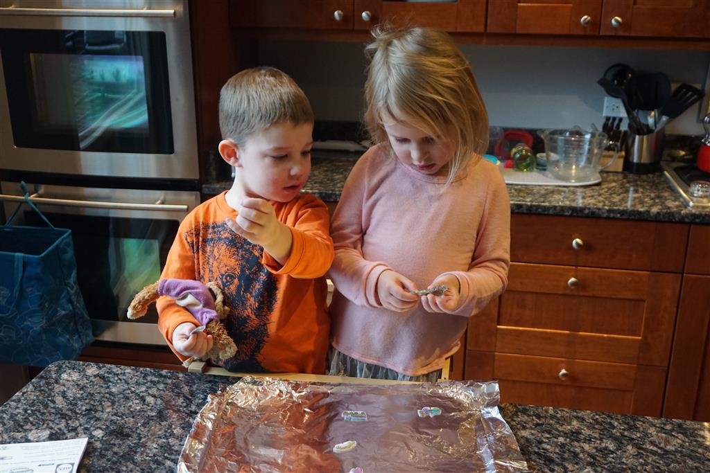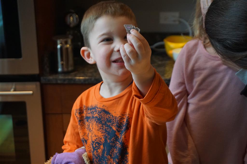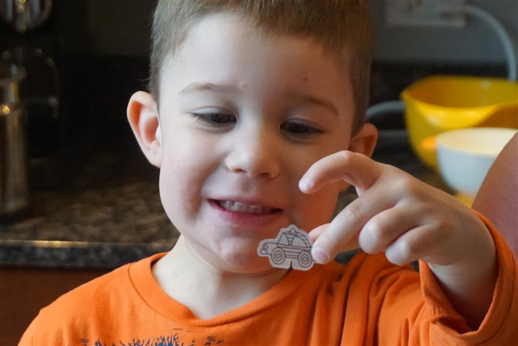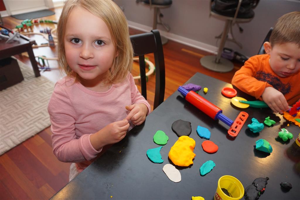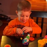 The weekend brought a birthday party for Eleanor, and some Henry and Dad alone time. Eleanor’s party was at a candy store, and had games and dancing. Dad and Henry spent most of the time playing matchbox cars. On Sunday, the kids made their first Shrinky Dinks, I would say they were a minor hit. We also had lots of fun with Playdoh and trains.