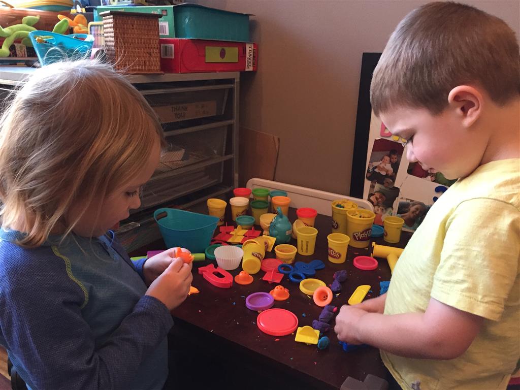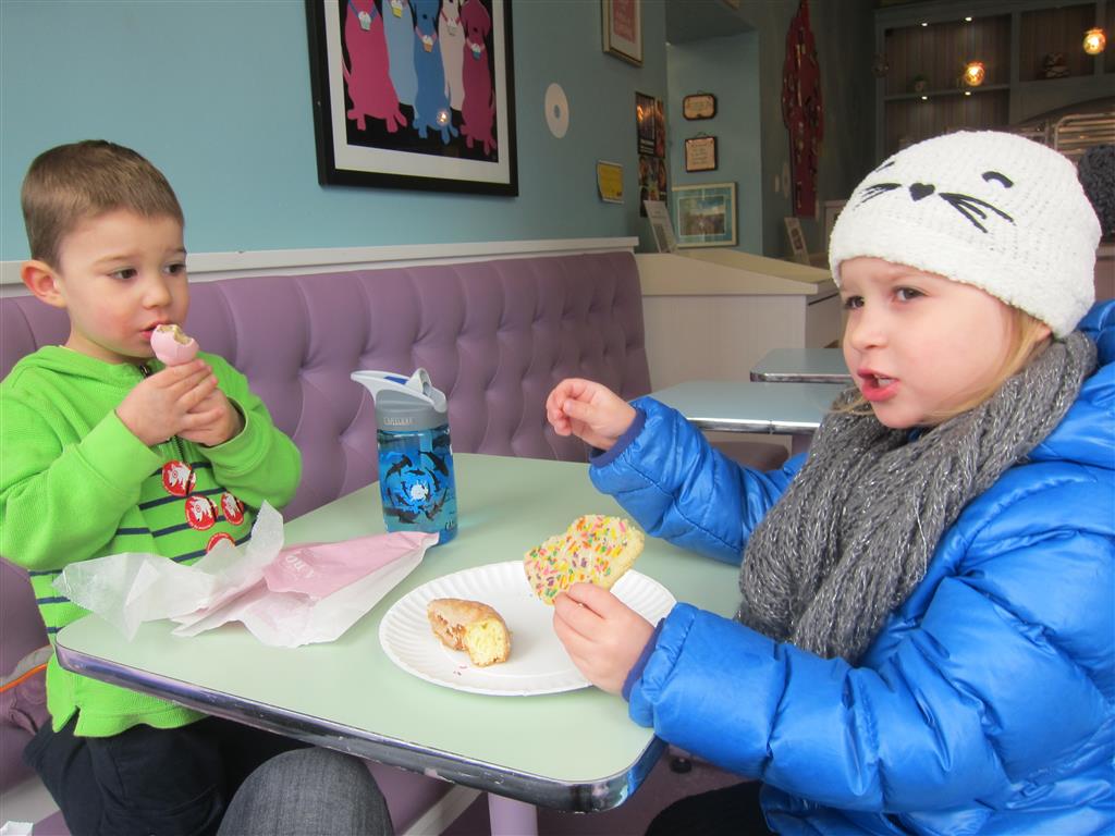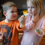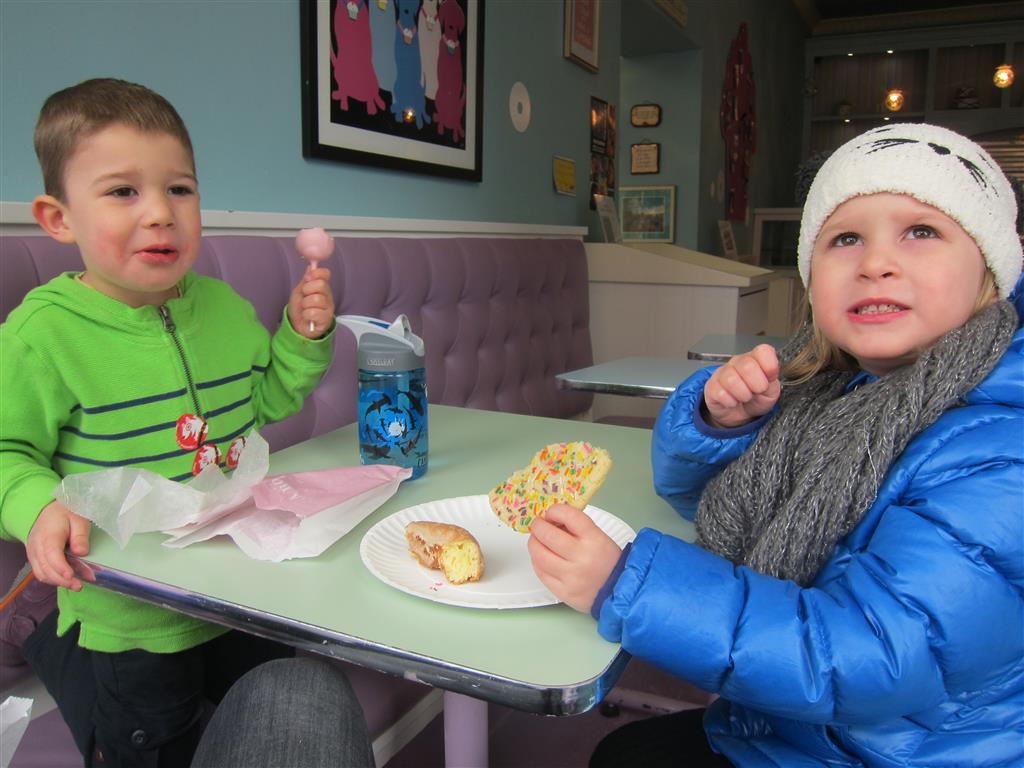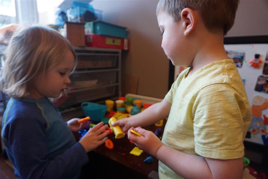 The weekend brought a birthday party for Eleanor, and some Henry and Dad alone time. Eleanor’s party was at a candy store, and had games and dancing. Dad and Henry spent most of the time playing matchbox cars. On Sunday, the kids made their first Shrinky Dinks, I would say they were a minor hit. We also had lots of fun with Playdoh and trains.