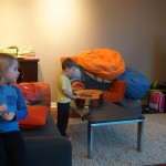 Later in the week, the kids went shopping with Mom – and Eleanor was suddenly Ms. Chatty with the store clerks – answering their questions and telling them stories about Monkey. Then at another store, she engaged a little girl and had a direct conversation with her while coloring a picture. She told the girl that she was drawing the picture for her friend Hannah at school. Building on this burst of outgoingness – Mom talked to Eleanor about how she could tell Hannah at school about the picture just like she was telling the girl in the store. Sure enough, at school the next day Eleanor told Hannah about the picture, albeit in a whisper. Hopefully next week we can build on that even more!