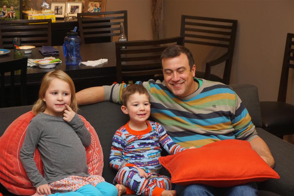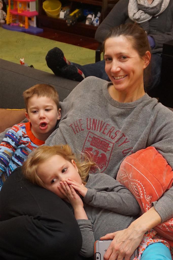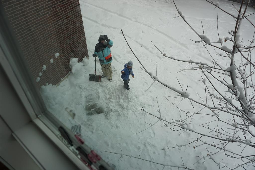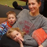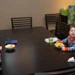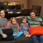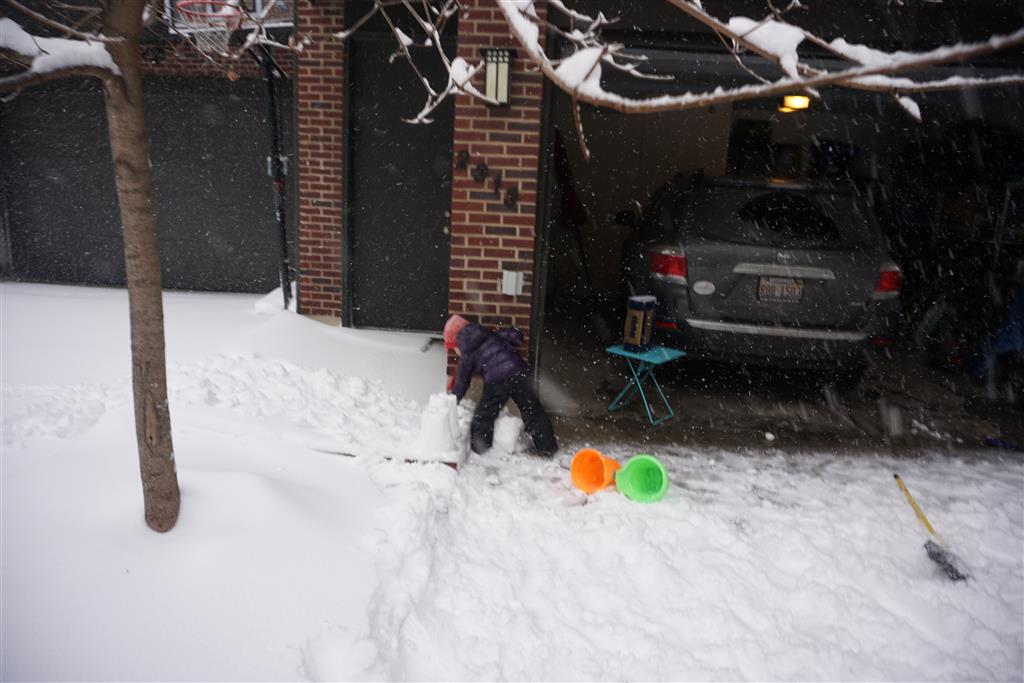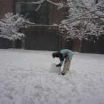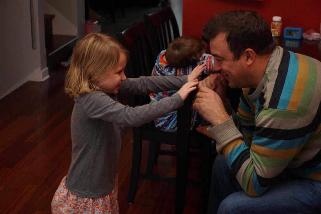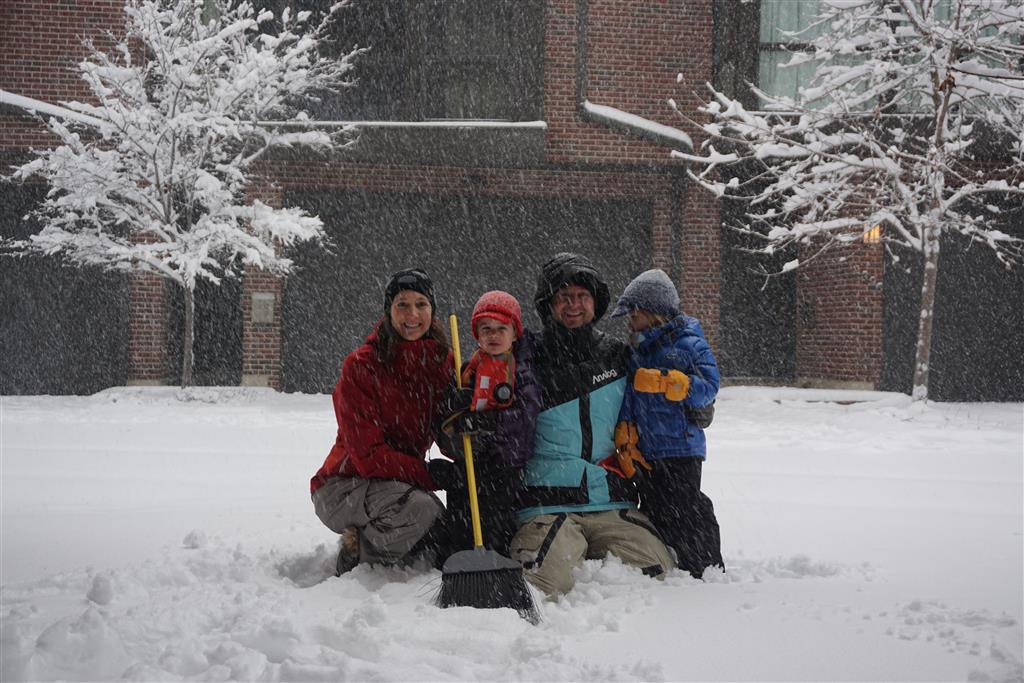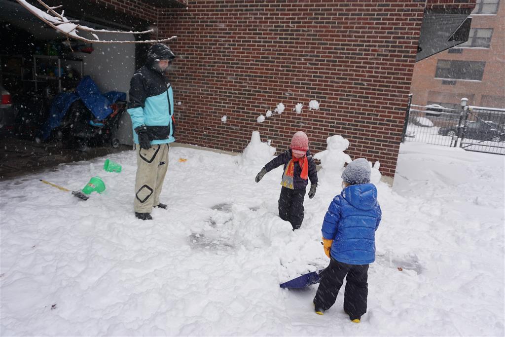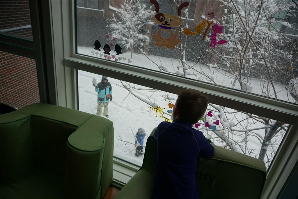 Henry and Eleanor capped off a fun week with a Super Bowl party. Lala and Uncle B came over, and we made our traditional chili dinner. Eleanor was especially excited about the prospect of watching football, and she and Henry were both glued to the TV for the first few minutes. She quickly started complaining that there was too much time between football (referring to the commercials and the commentary) and finally said, “We’ve been doing this for too long”, at which point we moved on to puzzles and games with the football on in the background. Neither of the kids were very into the chili, Eleanor only tried one bite before declaring it no good, and Henry made faces with each spoonful. They did enjoy the chips, oyster cracker and cornbread muffins. Prior to the game we had lots of fun in the snow, with about a foot of excellent snowman making snow arriving the previous night. We had a snow monkey, snow train and snow bunny, and Eleanor spend a good half hour just shoveling snow.