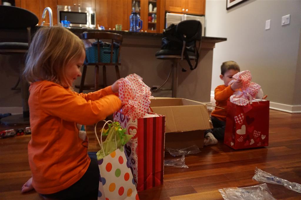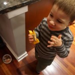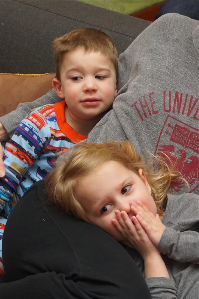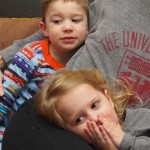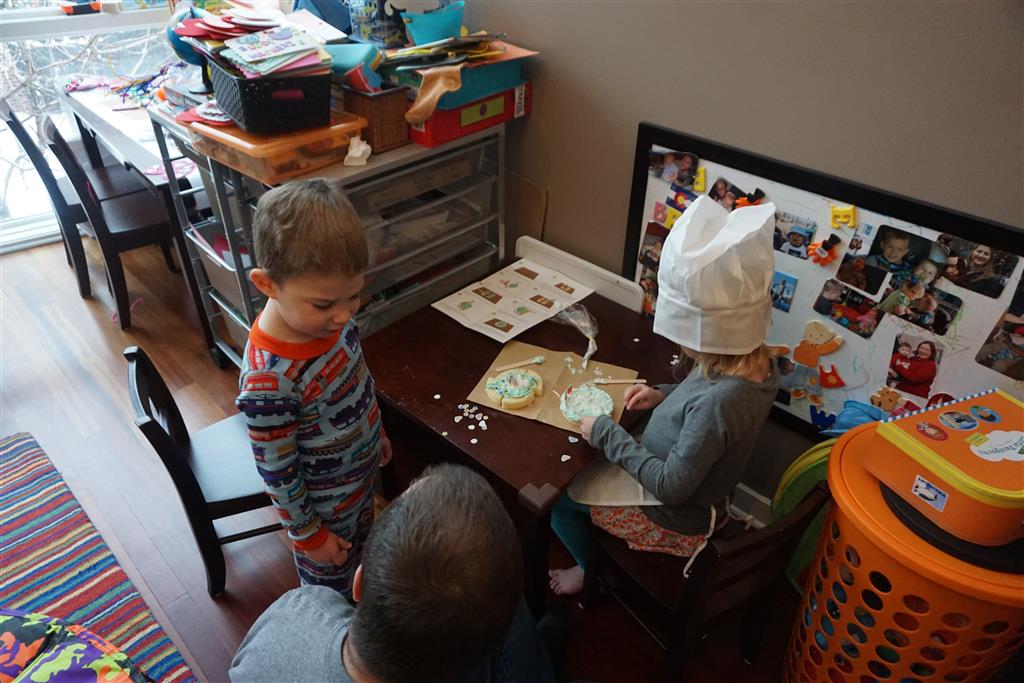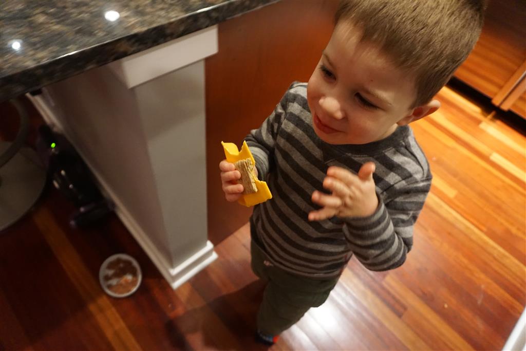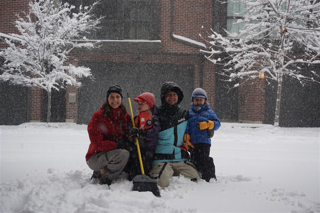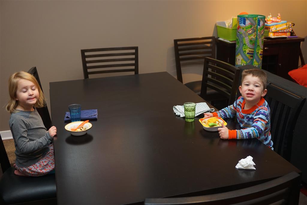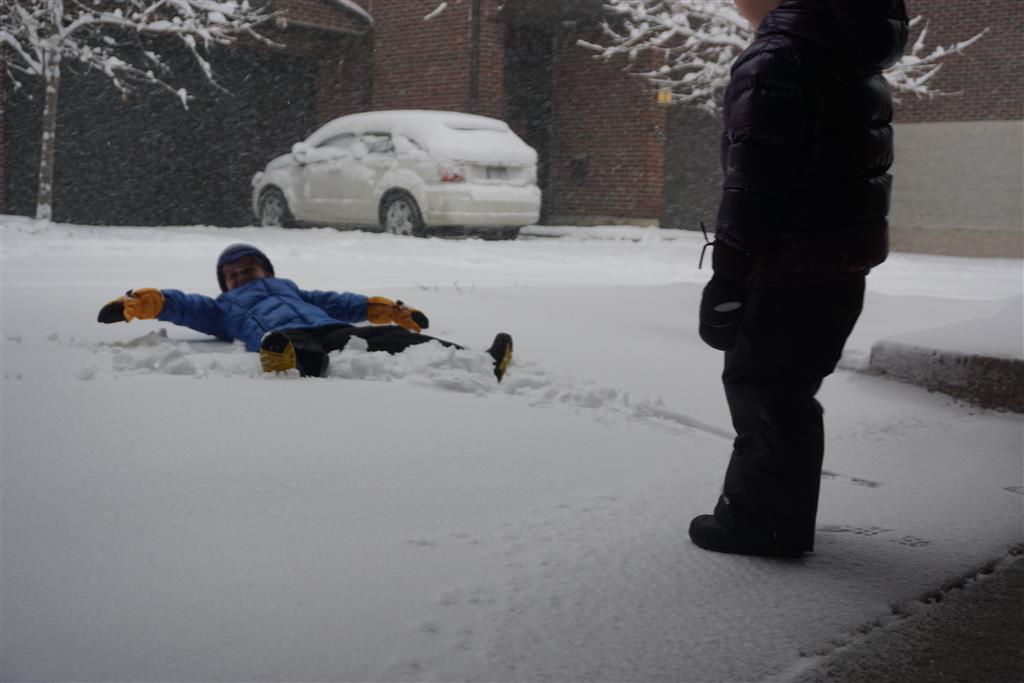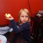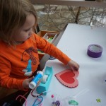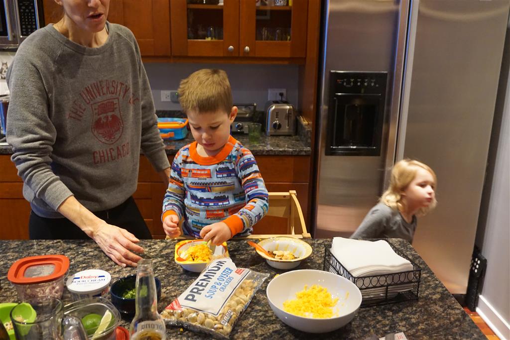 Henry and Eleanor capped off a fun week with a Super Bowl party. Lala and Uncle B came over, and we made our traditional chili dinner. Eleanor was especially excited about the prospect of watching football, and she and Henry were both glued to the TV for the first few minutes. She quickly started complaining that there was too much time between football (referring to the commercials and the commentary) and finally said, “We’ve been doing this for too long”, at which point we moved on to puzzles and games with the football on in the background. Neither of the kids were very into the chili, Eleanor only tried one bite before declaring it no good, and Henry made faces with each spoonful. They did enjoy the chips, oyster cracker and cornbread muffins. Prior to the game we had lots of fun in the snow, with about a foot of excellent snowman making snow arriving the previous night. We had a snow monkey, snow train and snow bunny, and Eleanor spend a good half hour just shoveling snow.