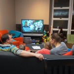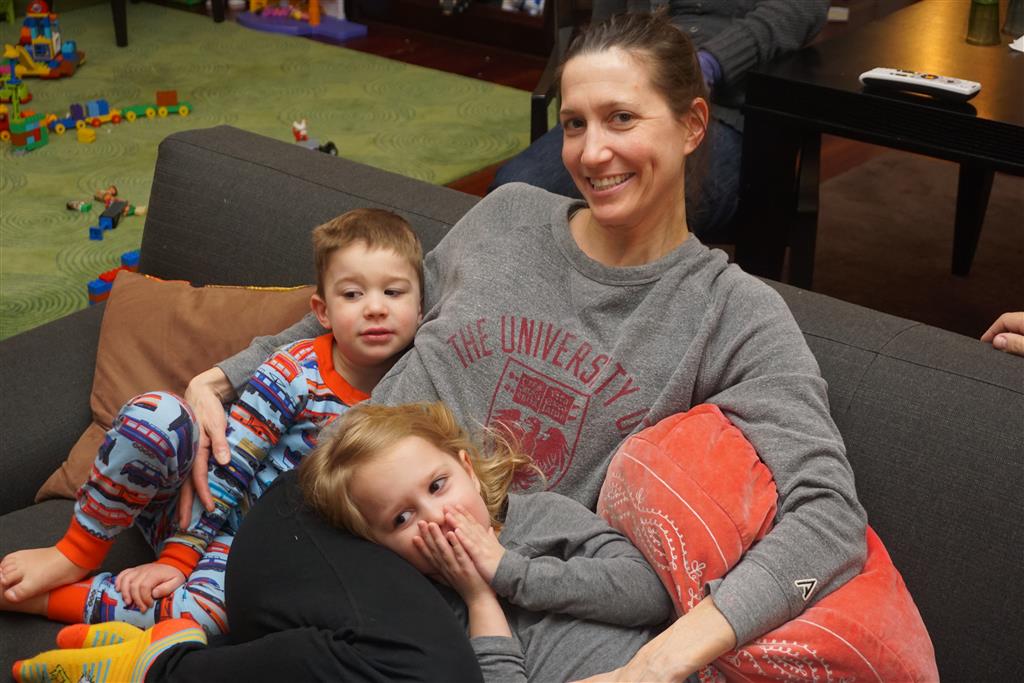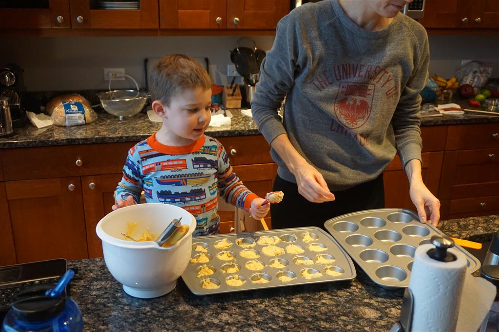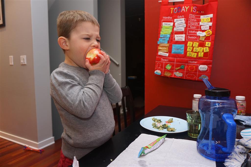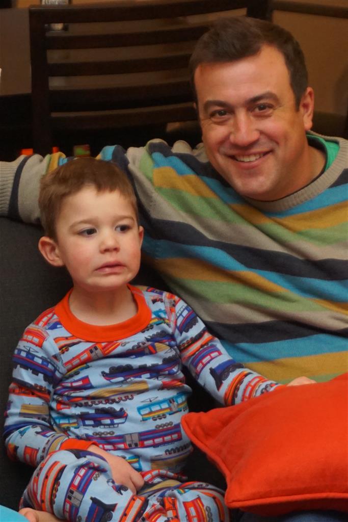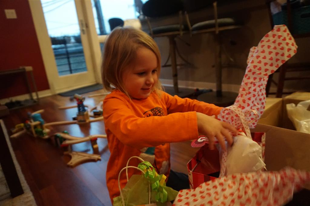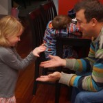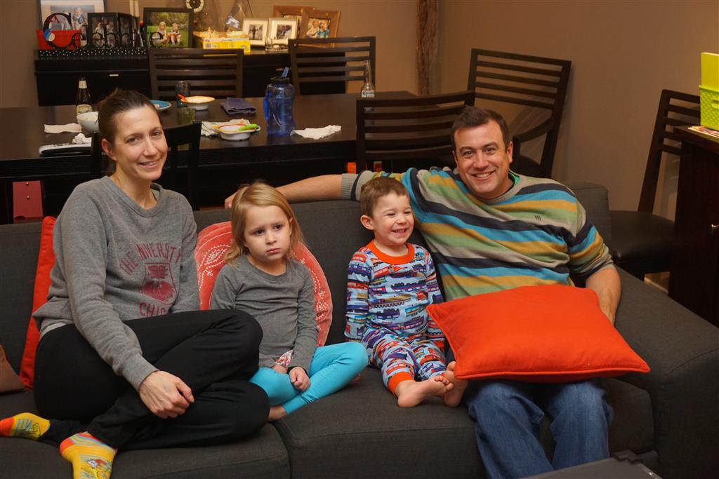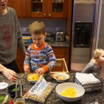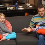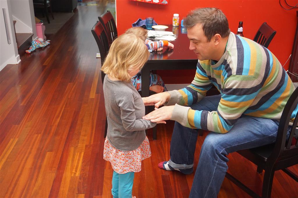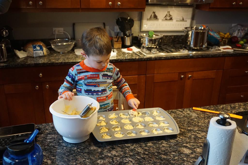 Henry and Eleanor capped off a fun week with a Super Bowl party. Lala and Uncle B came over, and we made our traditional chili dinner. Eleanor was especially excited about the prospect of watching football, and she and Henry were both glued to the TV for the first few minutes. She quickly started complaining that there was too much time between football (referring to the commercials and the commentary) and finally said, “We’ve been doing this for too long”, at which point we moved on to puzzles and games with the football on in the background. Neither of the kids were very into the chili, Eleanor only tried one bite before declaring it no good, and Henry made faces with each spoonful. They did enjoy the chips, oyster cracker and cornbread muffins. Prior to the game we had lots of fun in the snow, with about a foot of excellent snowman making snow arriving the previous night. We had a snow monkey, snow train and snow bunny, and Eleanor spend a good half hour just shoveling snow.
