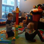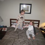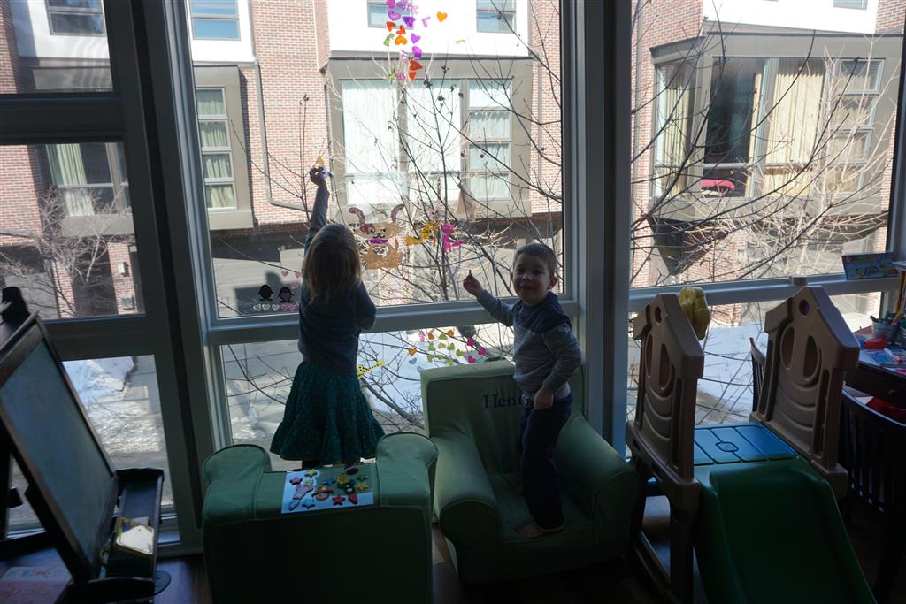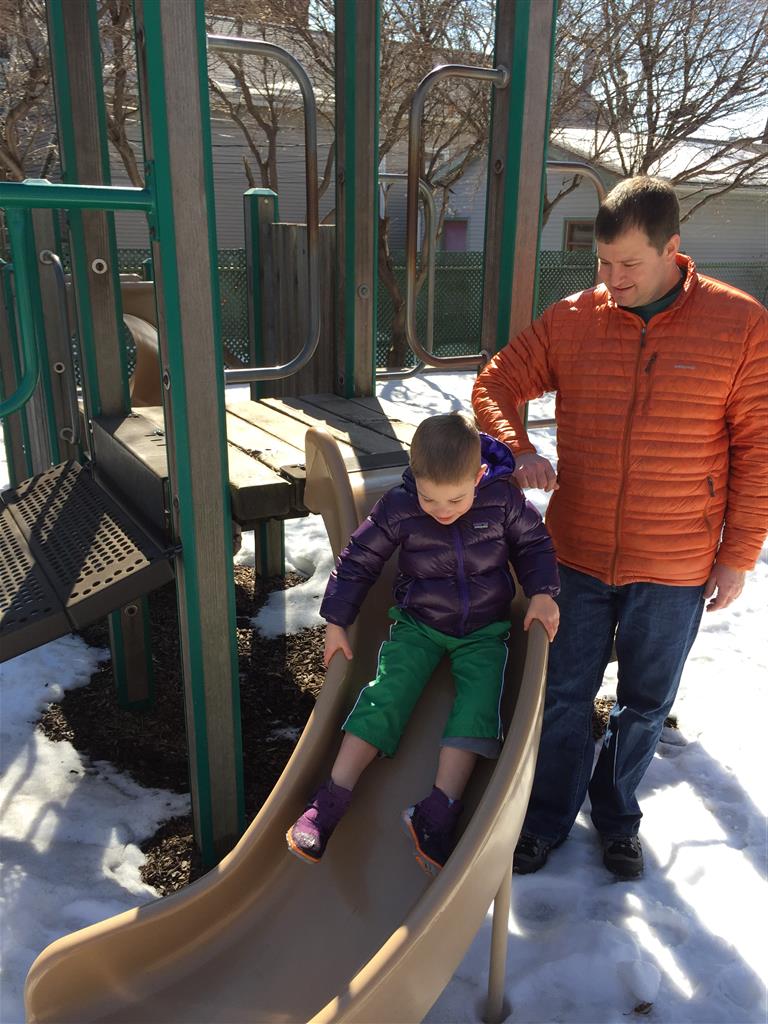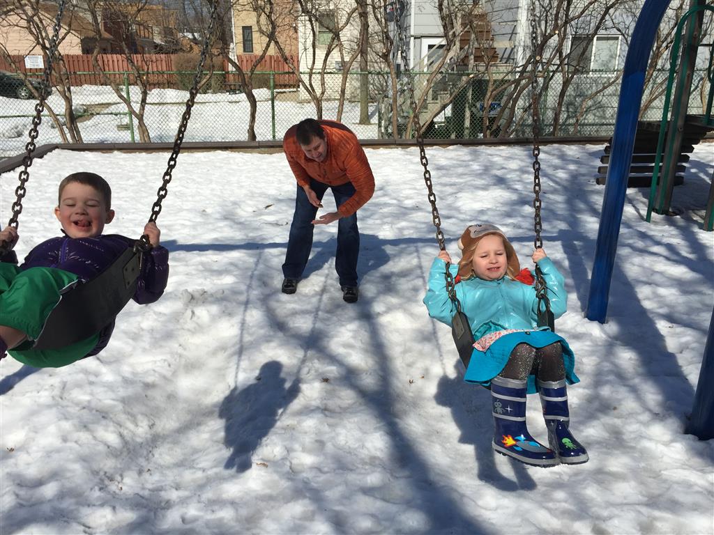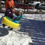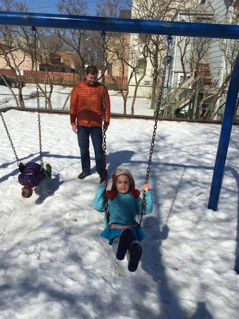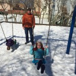 Eleanor and Henry capped off a fun week with a Sunday trip into Wisconsin for some ski lessons. We didn’t get too many pictures because both Mom and Dad were pretty busy keeping the kids going on the slopes, but we do have a couple of videos that we will hopefully get up soon. The lessons started out on a bit of a wrong foot – our instructor wasn’t a good fit for Eleanor, and Henry wasn’t old enough for lessons. (Not to mention the hour short on sleep…) After an hour and a half filled with mostly refusals to go down the hill, we took a break for lunch. Once we recharged with some greasy grilled cheese and cheeseburgers, we hit the hill again minus the instructor and had a much better time. Both Eleanor and Henry mastered balance on the skis, and could make it down the little hill by themselves. Eleanor started doing the “pizza pie” move, and at one point started making a turn. Henry was mostly interested in just going straight – at one point blowing by both Mom and Dad and thankfully missing a pack of strangers before coming to rest at the bottom. Hopefully the next time we will get an instructor that fits our personalities better – or else Mom and Dad will have to read up on how to teach skiing.