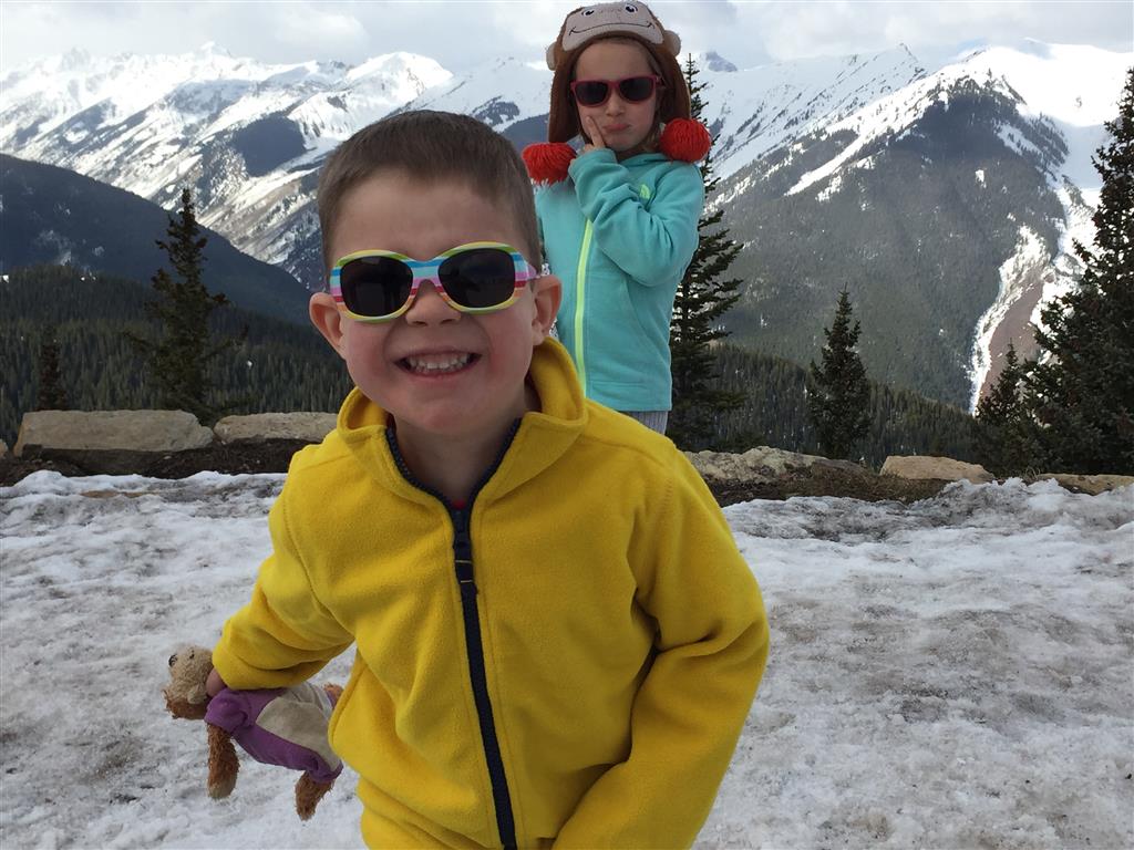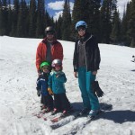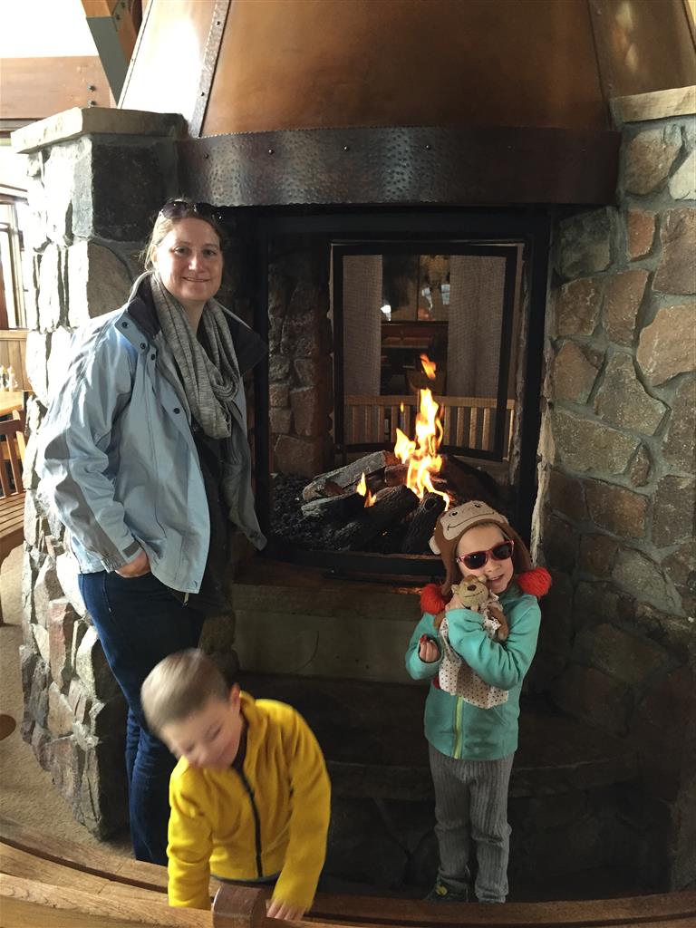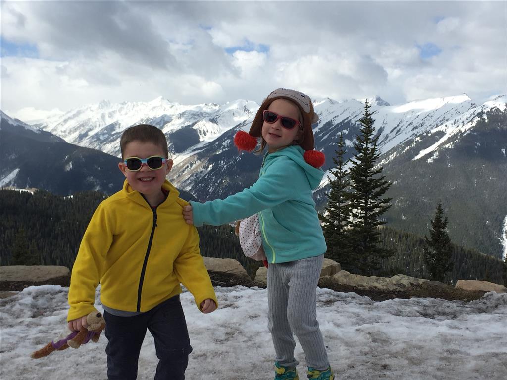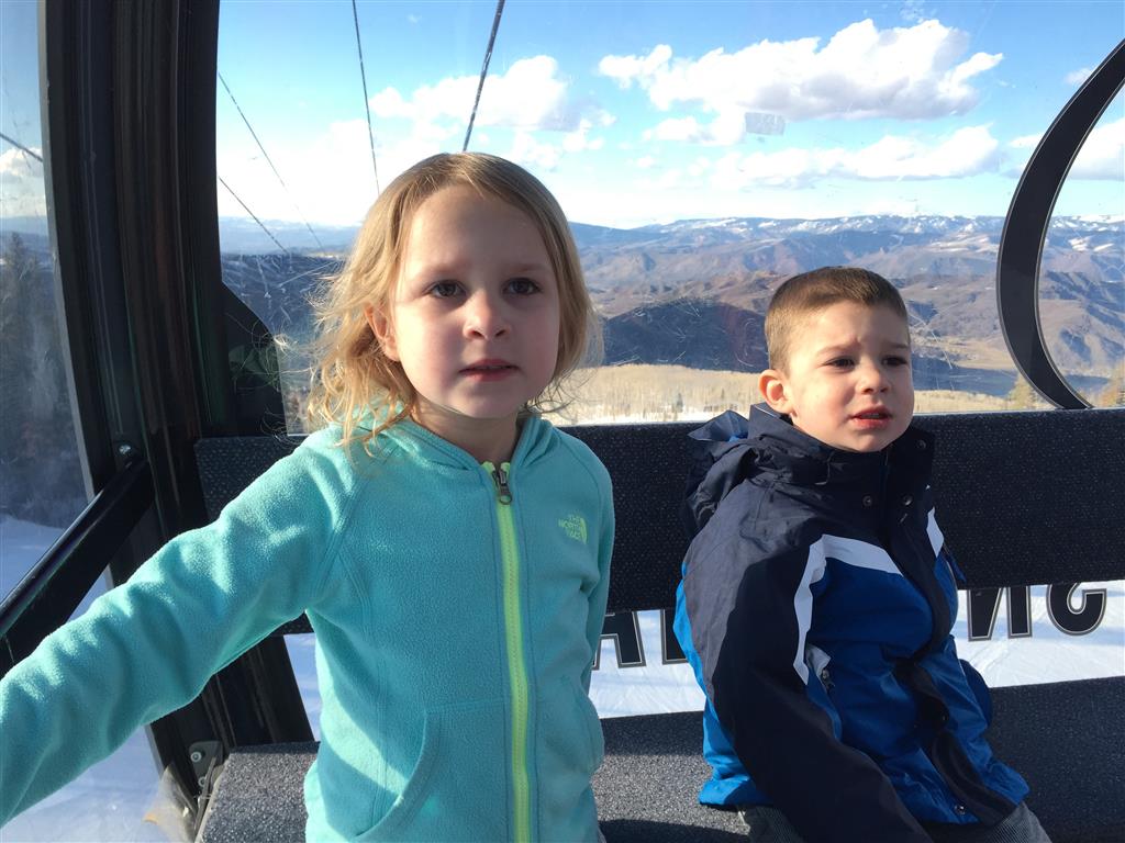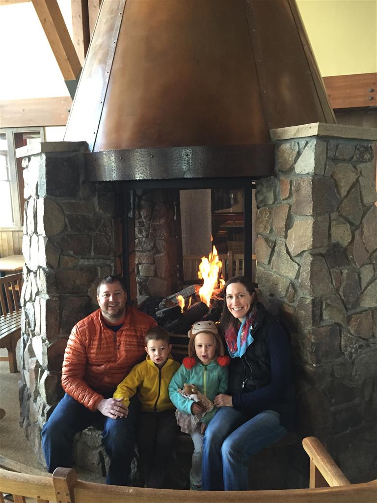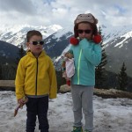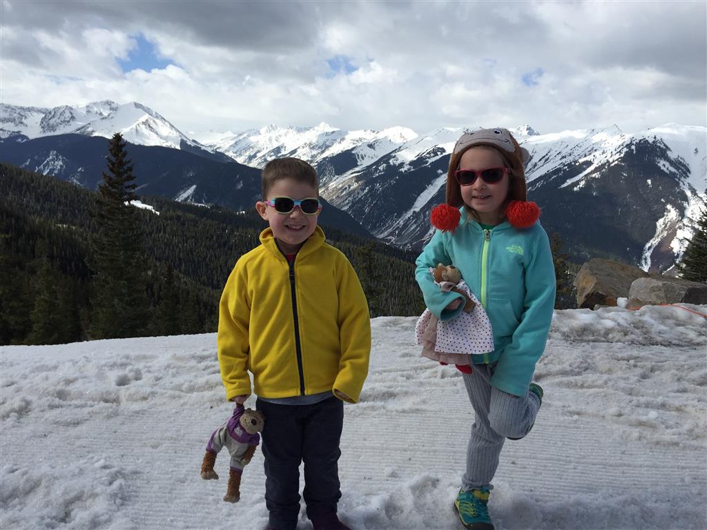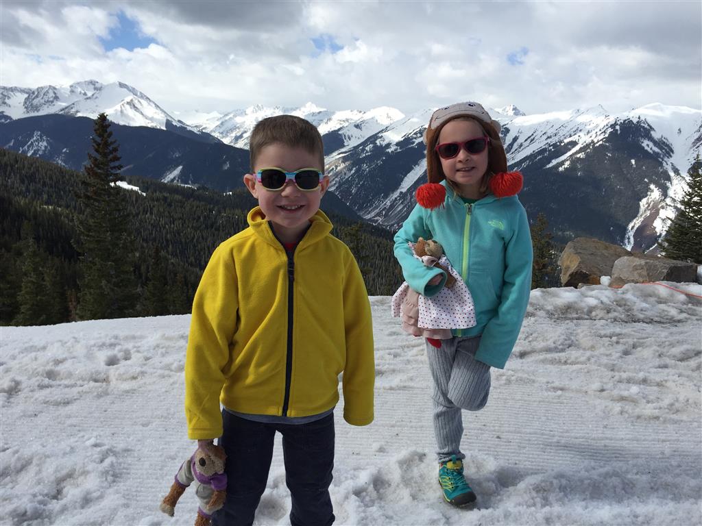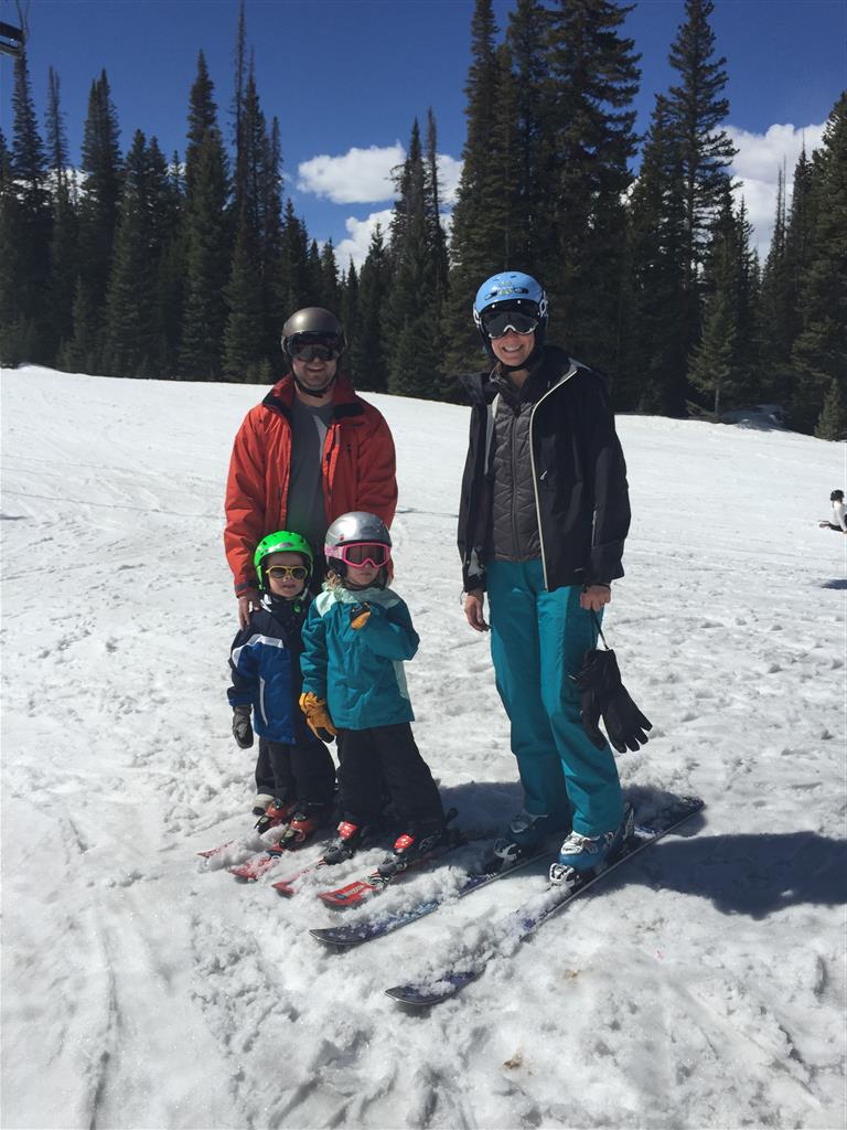 Eleanor and Henry hit the slopes this week for some spring skiing. They have both tried skiing before, but this year was the first time that they really seemed to “get” it. By the second day, they were both coming down the bunny hill with minimal help, and by the end Eleanor was had totally conquered it. She could get down the hill all by herself, making awesome “s” turns and turning to a stop at the bottom. Henry had good balance and could make turns by himself, but sometimes got a little distracted and needed some help slowing down. They were both really excited about riding the chair lift, and by the end they were both getting off without falling. We had a couple of great instructors, and Eleanor really opened up to both of them, telling them all about her school, her cousins and her stuffed friends. She and Henry apparently loved to sing songs while riding the chair lift. Mom, Dad and Lala and Uncle B got to ski a few runs with the kiddos, and it was awesome to see how excited they were. From the top of the lift, they both announced “Follow Me!” and took off down the hill! Eleanor had been a bit apprehensive about the ski trip, but one night she described the trip like this, “I thought it was going to be the worst day ever, but it turned out to be the best day ever!”. In addition to skiing, the kids got to go tubing down the hill, and enjoyed a really fun climbing gym at the bottom of the mountain. One night, we went back up the mountain for dinner and smores, and Henry slid down a covered tube slide that dumped him out so he slid across the snow. One day after skiing, there was a clown doing “free” balloon animals, and of course Eleanor and Henry both wanted one. Thirty minutes later, they each had a cool balloon monkey in a tree. Eleanor requested a pink monkey, and Henry initially requested a train, but when the clown couldn’t do that, he asked for a brown monkey. We also got to meet up with Aunt Jane, cousin Adam, and soon-to-be-cousin-in-law Begonia for a relaxing carry out dinner.