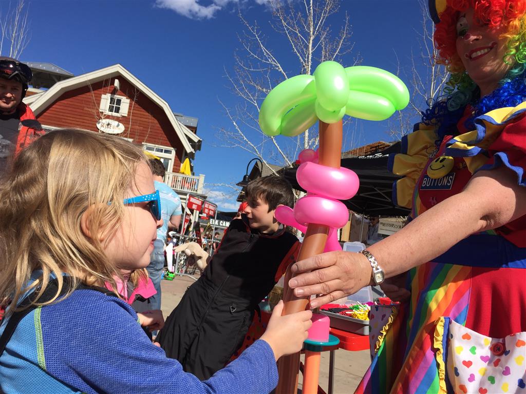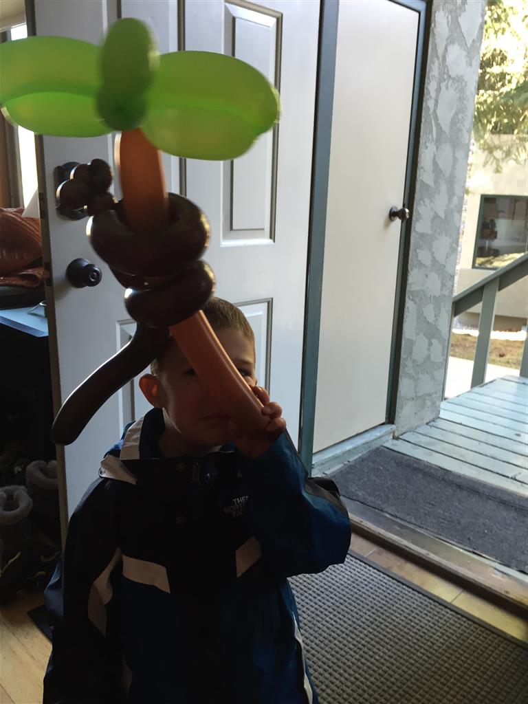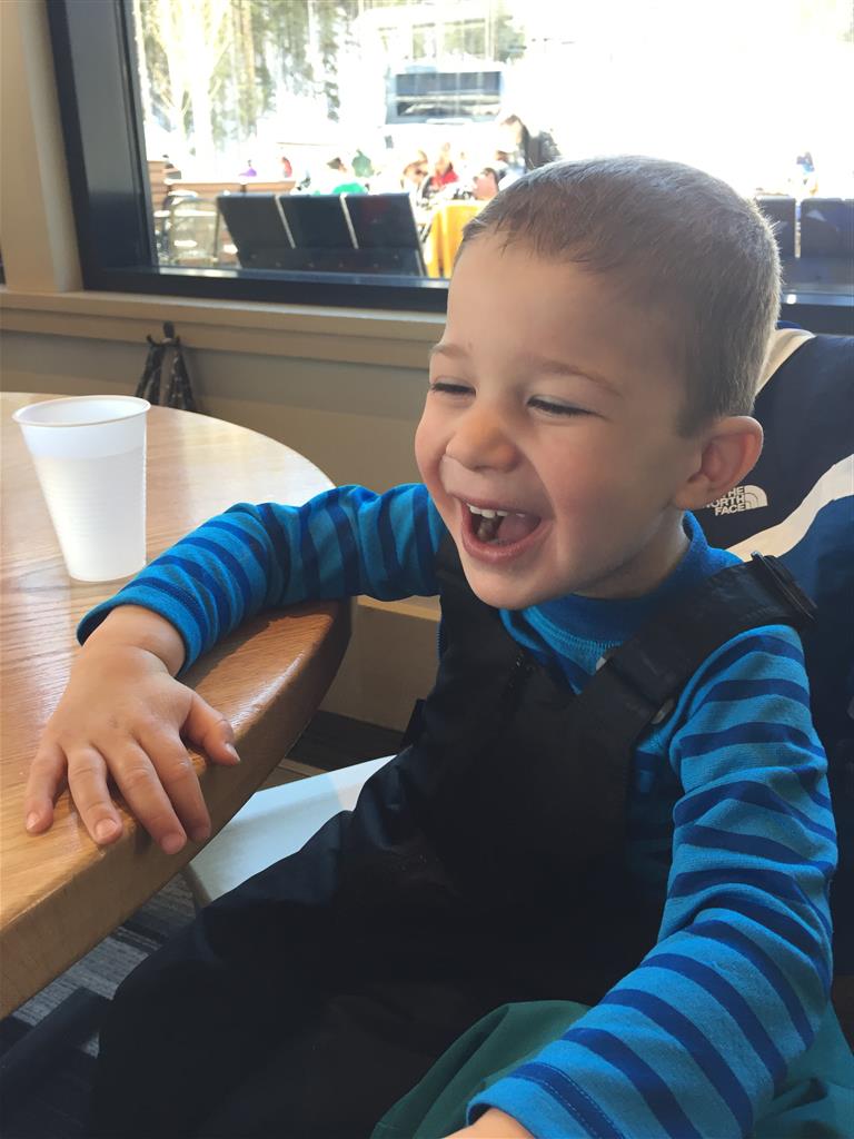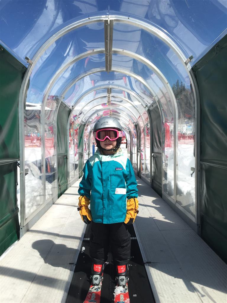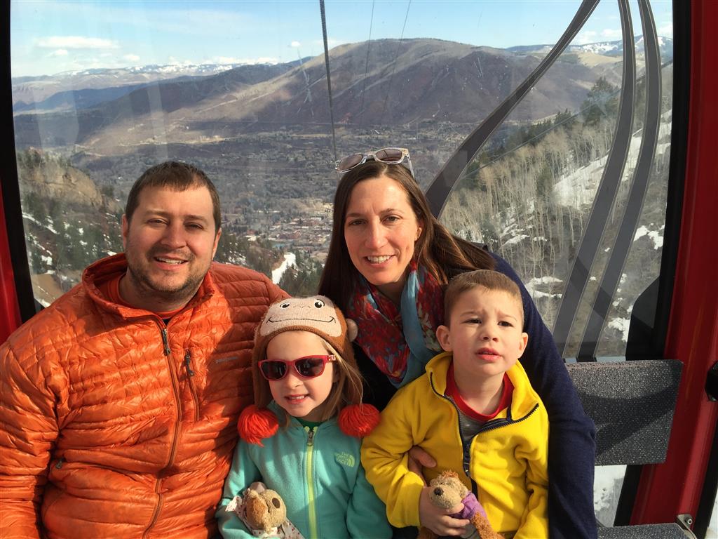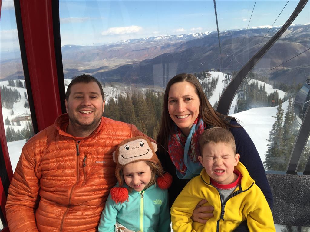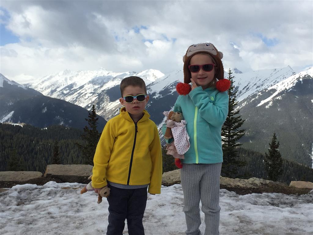 Eleanor and Henry hit the slopes this week for some spring skiing. They have both tried skiing before, but this year was the first time that they really seemed to “get” it. By the second day, they were both coming down the bunny hill with minimal help, and by the end Eleanor was had totally conquered it. She could get down the hill all by herself, making awesome “s” turns and turning to a stop at the bottom. Henry had good balance and could make turns by himself, but sometimes got a little distracted and needed some help slowing down. They were both really excited about riding the chair lift, and by the end they were both getting off without falling. We had a couple of great instructors, and Eleanor really opened up to both of them, telling them all about her school, her cousins and her stuffed friends. She and Henry apparently loved to sing songs while riding the chair lift. Mom, Dad and Lala and Uncle B got to ski a few runs with the kiddos, and it was awesome to see how excited they were. From the top of the lift, they both announced “Follow Me!” and took off down the hill! Eleanor had been a bit apprehensive about the ski trip, but one night she described the trip like this, “I thought it was going to be the worst day ever, but it turned out to be the best day ever!”. In addition to skiing, the kids got to go tubing down the hill, and enjoyed a really fun climbing gym at the bottom of the mountain. One night, we went back up the mountain for dinner and smores, and Henry slid down a covered tube slide that dumped him out so he slid across the snow. One day after skiing, there was a clown doing “free” balloon animals, and of course Eleanor and Henry both wanted one. Thirty minutes later, they each had a cool balloon monkey in a tree. Eleanor requested a pink monkey, and Henry initially requested a train, but when the clown couldn’t do that, he asked for a brown monkey. We also got to meet up with Aunt Jane, cousin Adam, and soon-to-be-cousin-in-law Begonia for a relaxing carry out dinner.