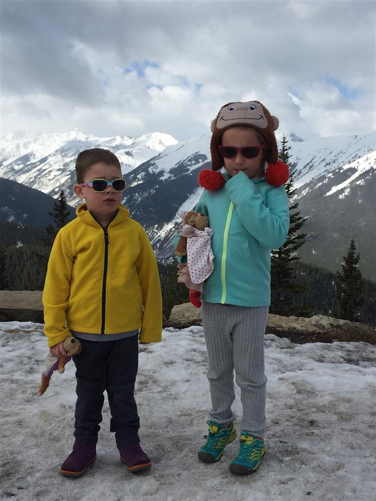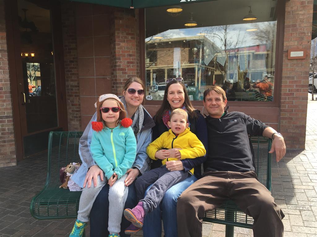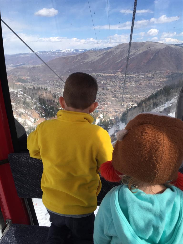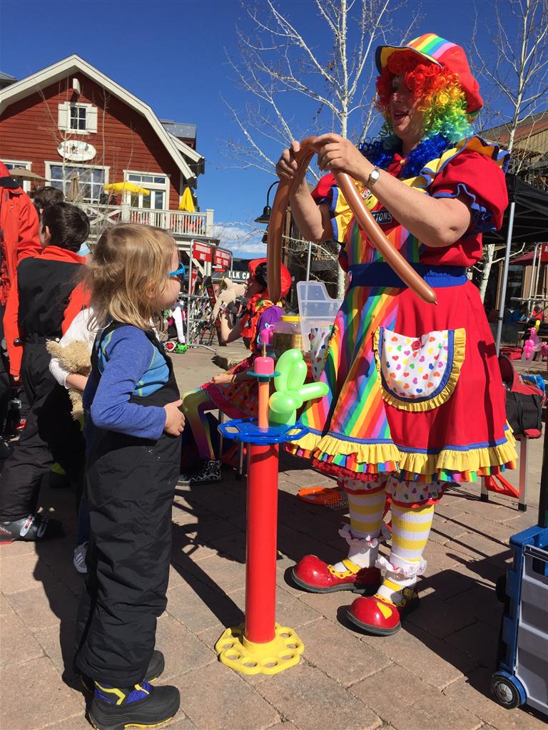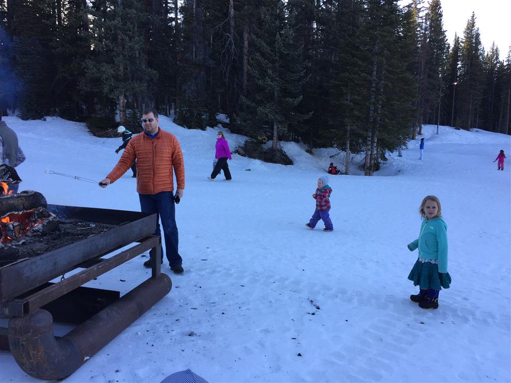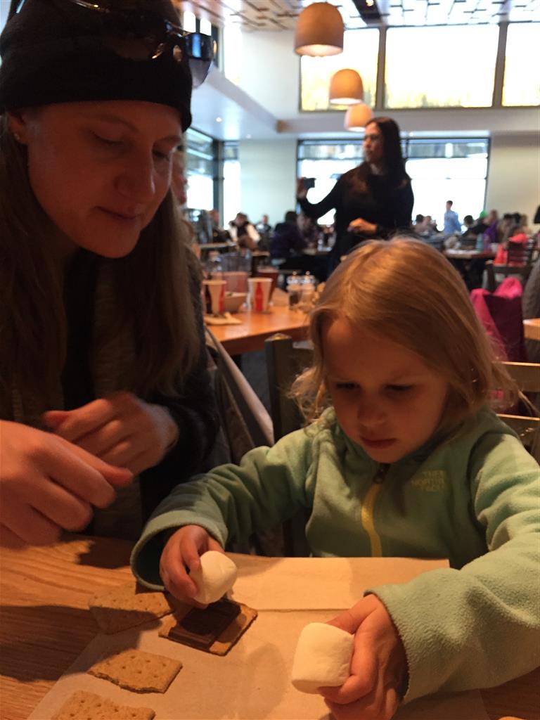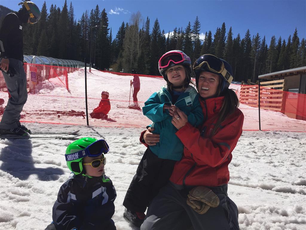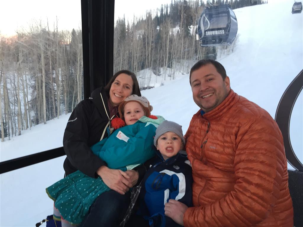 Eleanor and Henry hit the slopes this week for some spring skiing. They have both tried skiing before, but this year was the first time that they really seemed to “get” it. By the second day, they were both coming down the bunny hill with minimal help, and by the end Eleanor was had totally conquered it. She could get down the hill all by herself, making awesome “s” turns and turning to a stop at the bottom. Henry had good balance and could make turns by himself, but sometimes got a little distracted and needed some help slowing down. They were both really excited about riding the chair lift, and by the end they were both getting off without falling. We had a couple of great instructors, and Eleanor really opened up to both of them, telling them all about her school, her cousins and her stuffed friends. She and Henry apparently loved to sing songs while riding the chair lift. Mom, Dad and Lala and Uncle B got to ski a few runs with the kiddos, and it was awesome to see how excited they were. From the top of the lift, they both announced “Follow Me!” and took off down the hill! Eleanor had been a bit apprehensive about the ski trip, but one night she described the trip like this, “I thought it was going to be the worst day ever, but it turned out to be the best day ever!”. In addition to skiing, the kids got to go tubing down the hill, and enjoyed a really fun climbing gym at the bottom of the mountain. One night, we went back up the mountain for dinner and smores, and Henry slid down a covered tube slide that dumped him out so he slid across the snow. One day after skiing, there was a clown doing “free” balloon animals, and of course Eleanor and Henry both wanted one. Thirty minutes later, they each had a cool balloon monkey in a tree. Eleanor requested a pink monkey, and Henry initially requested a train, but when the clown couldn’t do that, he asked for a brown monkey. We also got to meet up with Aunt Jane, cousin Adam, and soon-to-be-cousin-in-law Begonia for a relaxing carry out dinner.