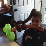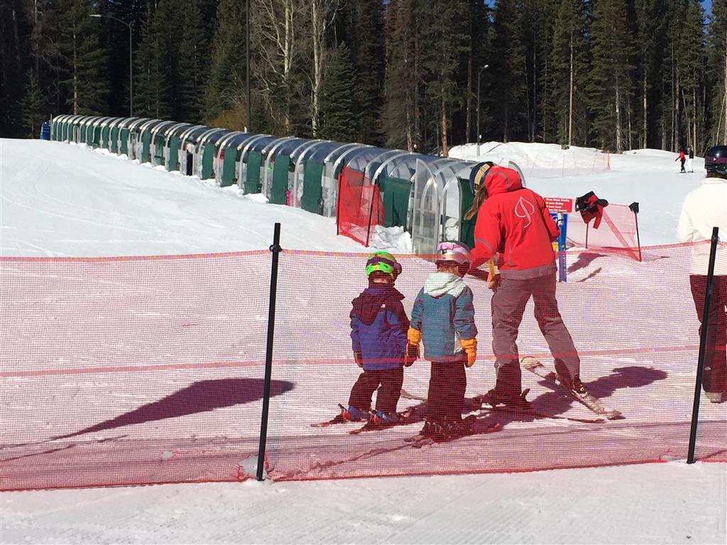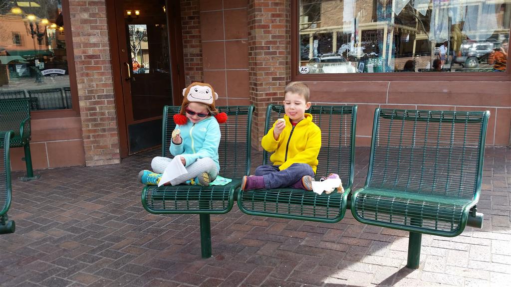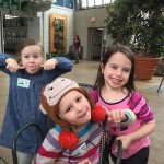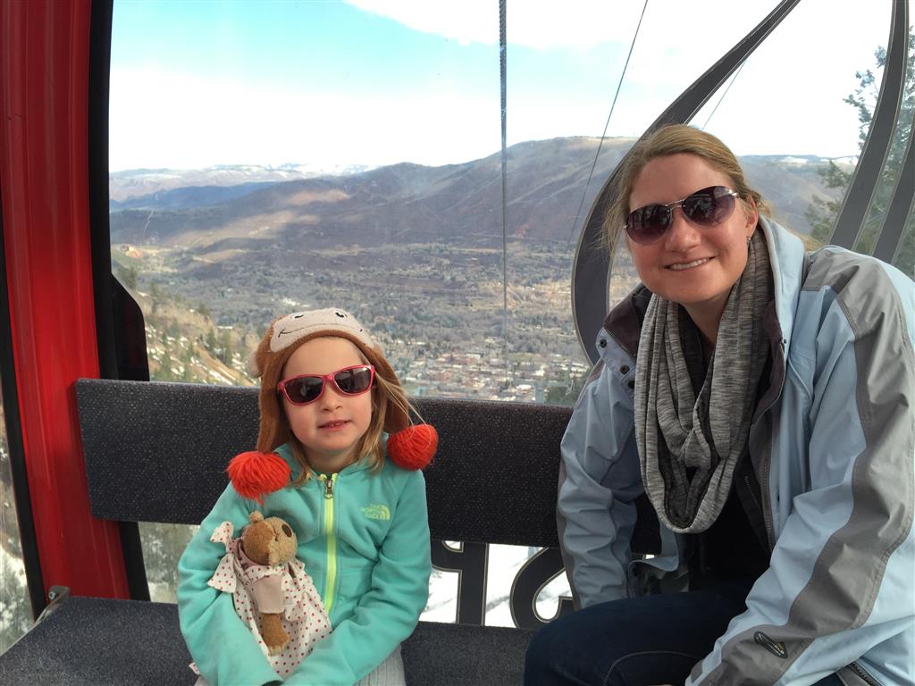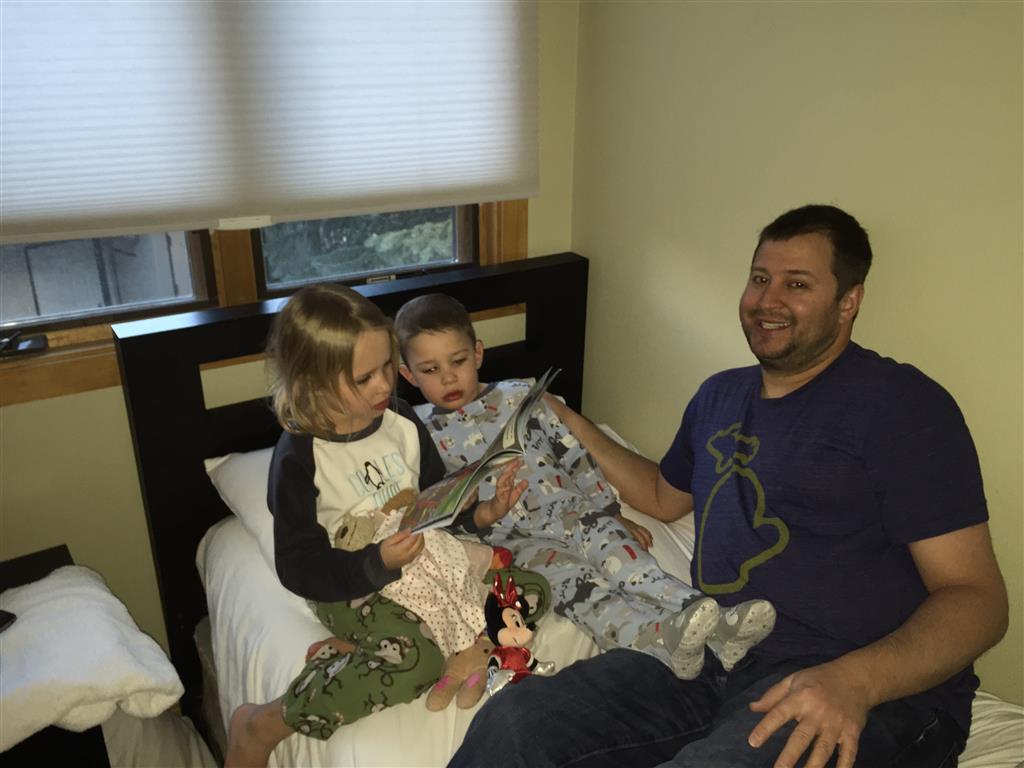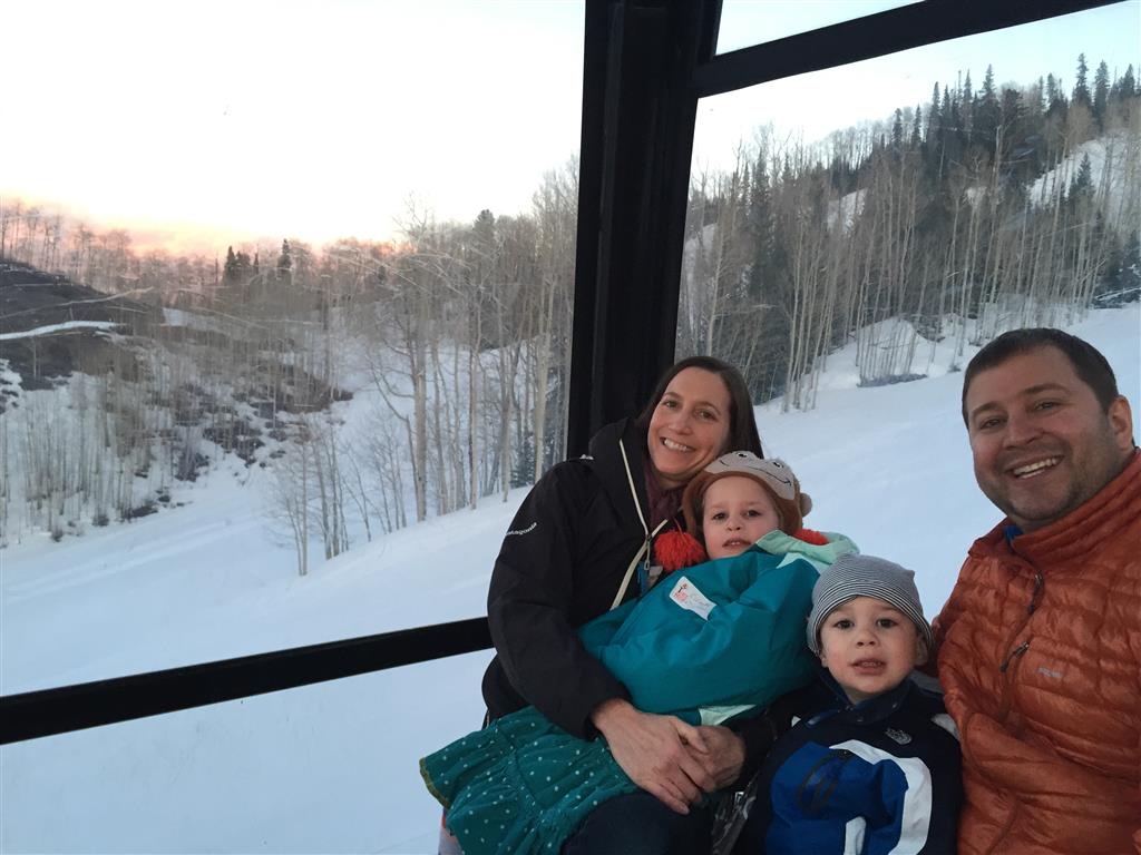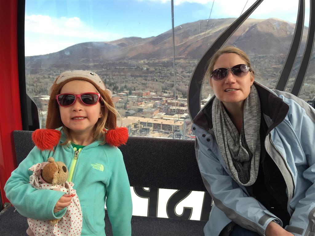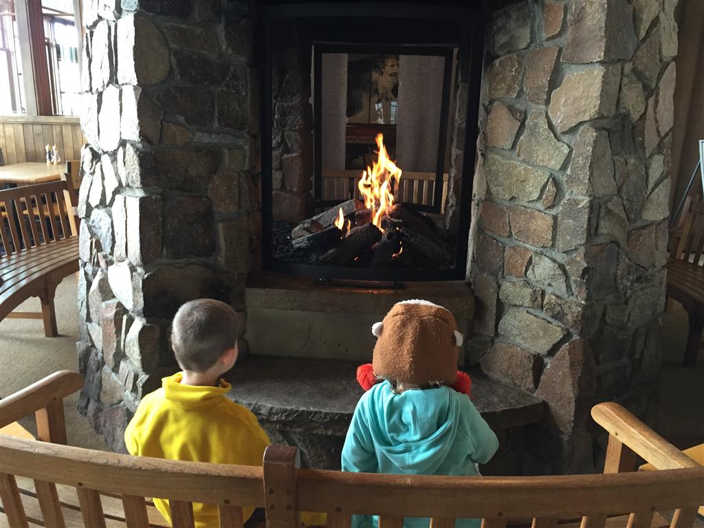 Eleanor and Henry hit the slopes this week for some spring skiing. They have both tried skiing before, but this year was the first time that they really seemed to “get” it. By the second day, they were both coming down the bunny hill with minimal help, and by the end Eleanor was had totally conquered it. She could get down the hill all by herself, making awesome “s” turns and turning to a stop at the bottom. Henry had good balance and could make turns by himself, but sometimes got a little distracted and needed some help slowing down. They were both really excited about riding the chair lift, and by the end they were both getting off without falling. We had a couple of great instructors, and Eleanor really opened up to both of them, telling them all about her school, her cousins and her stuffed friends. She and Henry apparently loved to sing songs while riding the chair lift. Mom, Dad and Lala and Uncle B got to ski a few runs with the kiddos, and it was awesome to see how excited they were. From the top of the lift, they both announced “Follow Me!” and took off down the hill! Eleanor had been a bit apprehensive about the ski trip, but one night she described the trip like this, “I thought it was going to be the worst day ever, but it turned out to be the best day ever!”. In addition to skiing, the kids got to go tubing down the hill, and enjoyed a really fun climbing gym at the bottom of the mountain. One night, we went back up the mountain for dinner and smores, and Henry slid down a covered tube slide that dumped him out so he slid across the snow. One day after skiing, there was a clown doing “free” balloon animals, and of course Eleanor and Henry both wanted one. Thirty minutes later, they each had a cool balloon monkey in a tree. Eleanor requested a pink monkey, and Henry initially requested a train, but when the clown couldn’t do that, he asked for a brown monkey. We also got to meet up with Aunt Jane, cousin Adam, and soon-to-be-cousin-in-law Begonia for a relaxing carry out dinner.