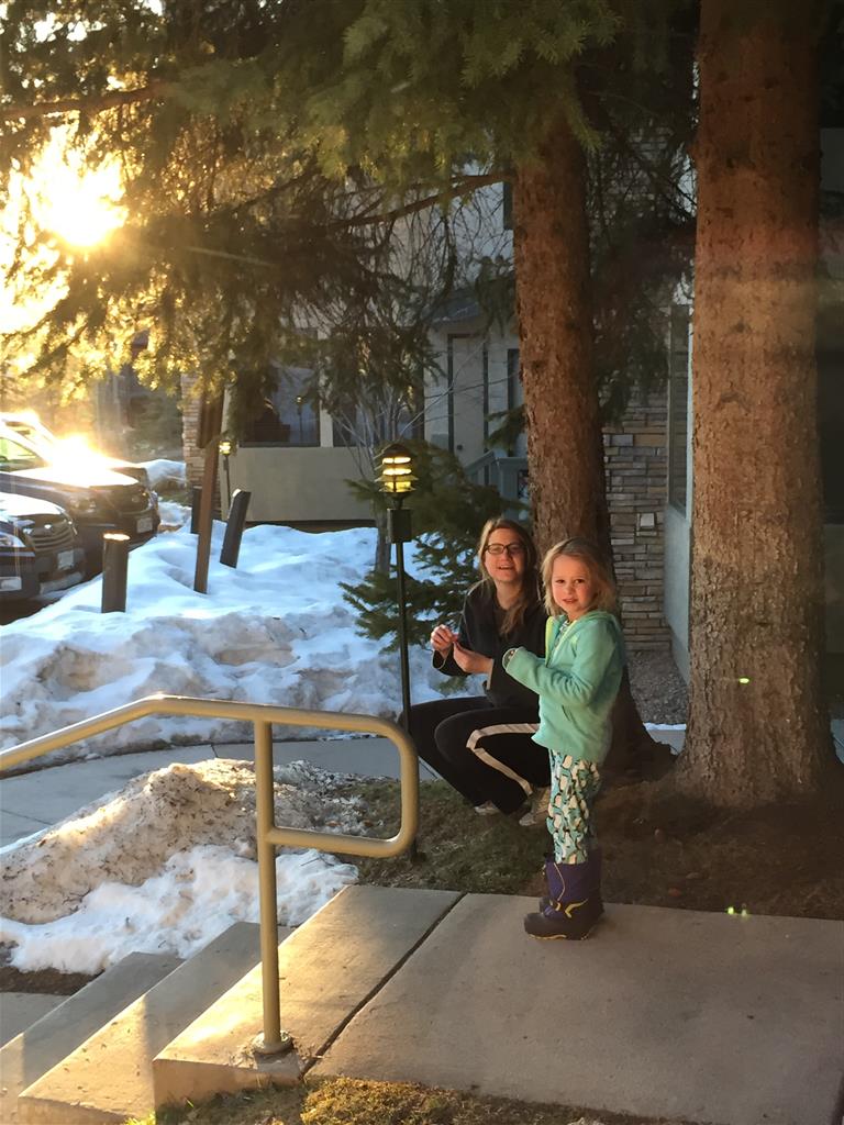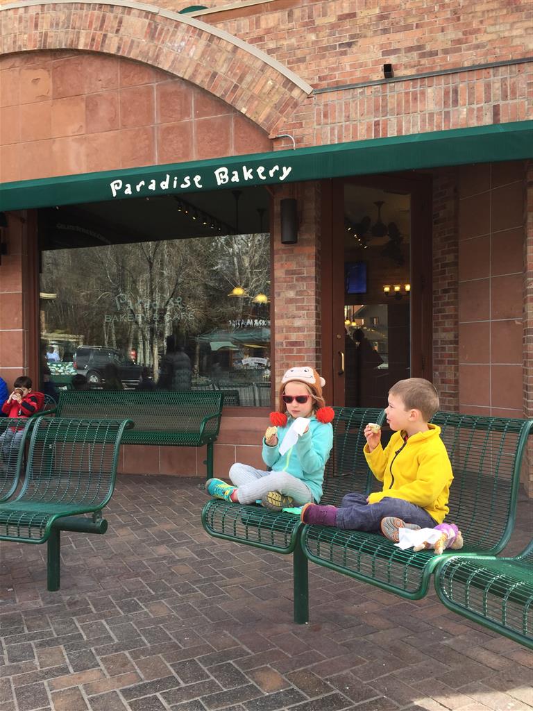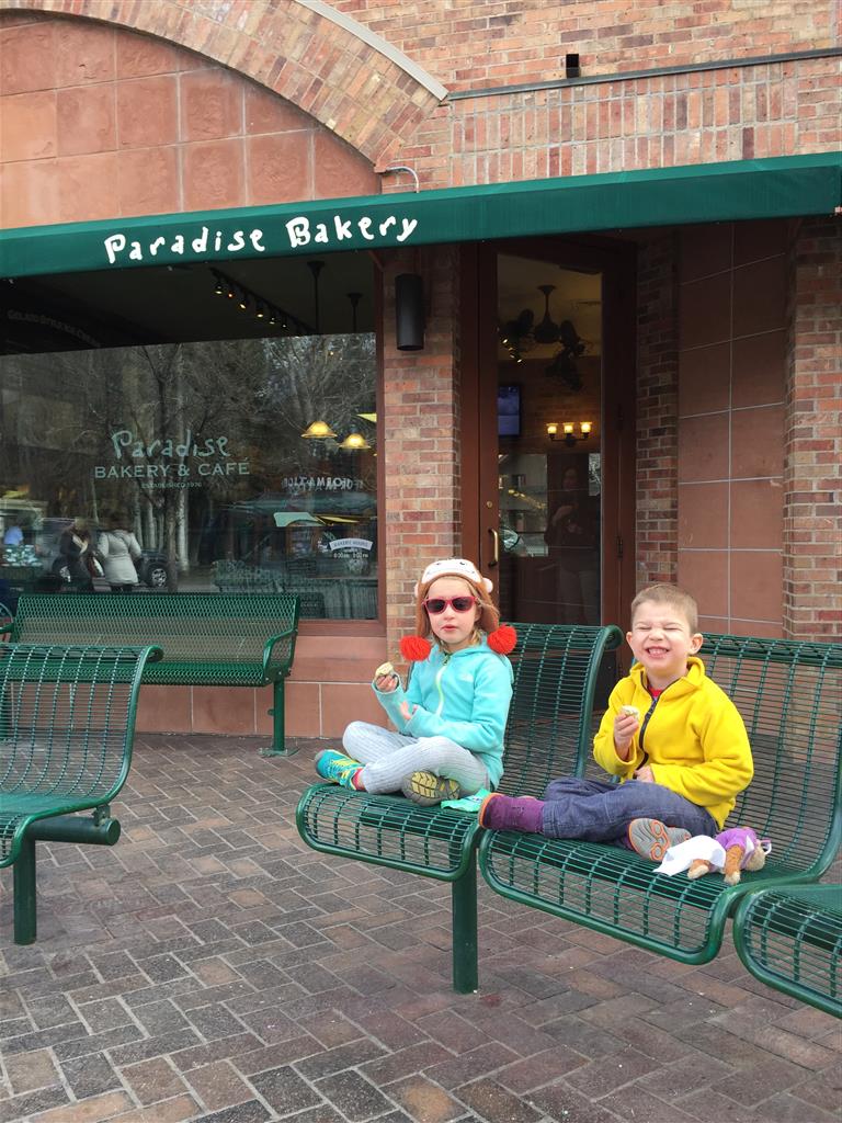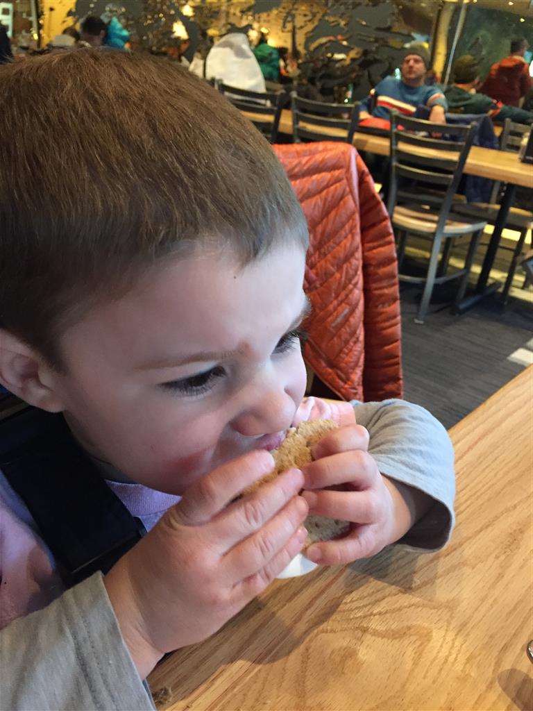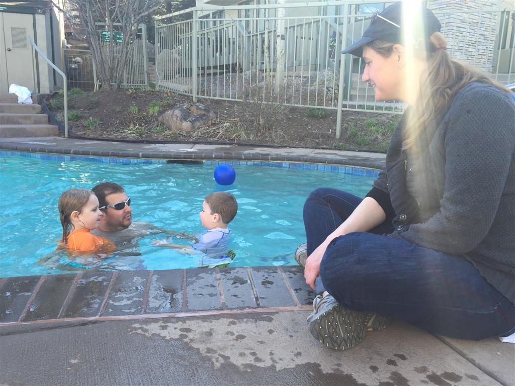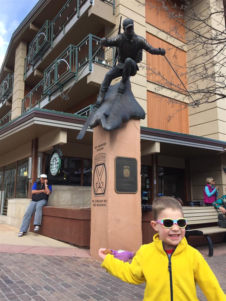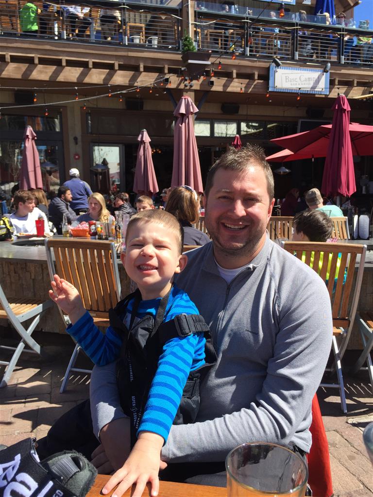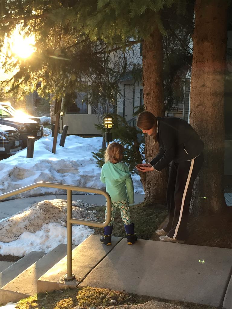 Eleanor and Henry hit the slopes this week for some spring skiing. They have both tried skiing before, but this year was the first time that they really seemed to “get” it. By the second day, they were both coming down the bunny hill with minimal help, and by the end Eleanor was had totally conquered it. She could get down the hill all by herself, making awesome “s” turns and turning to a stop at the bottom. Henry had good balance and could make turns by himself, but sometimes got a little distracted and needed some help slowing down. They were both really excited about riding the chair lift, and by the end they were both getting off without falling. We had a couple of great instructors, and Eleanor really opened up to both of them, telling them all about her school, her cousins and her stuffed friends. She and Henry apparently loved to sing songs while riding the chair lift. Mom, Dad and Lala and Uncle B got to ski a few runs with the kiddos, and it was awesome to see how excited they were. From the top of the lift, they both announced “Follow Me!” and took off down the hill! Eleanor had been a bit apprehensive about the ski trip, but one night she described the trip like this, “I thought it was going to be the worst day ever, but it turned out to be the best day ever!”. In addition to skiing, the kids got to go tubing down the hill, and enjoyed a really fun climbing gym at the bottom of the mountain. One night, we went back up the mountain for dinner and smores, and Henry slid down a covered tube slide that dumped him out so he slid across the snow. One day after skiing, there was a clown doing “free” balloon animals, and of course Eleanor and Henry both wanted one. Thirty minutes later, they each had a cool balloon monkey in a tree. Eleanor requested a pink monkey, and Henry initially requested a train, but when the clown couldn’t do that, he asked for a brown monkey. We also got to meet up with Aunt Jane, cousin Adam, and soon-to-be-cousin-in-law Begonia for a relaxing carry out dinner.