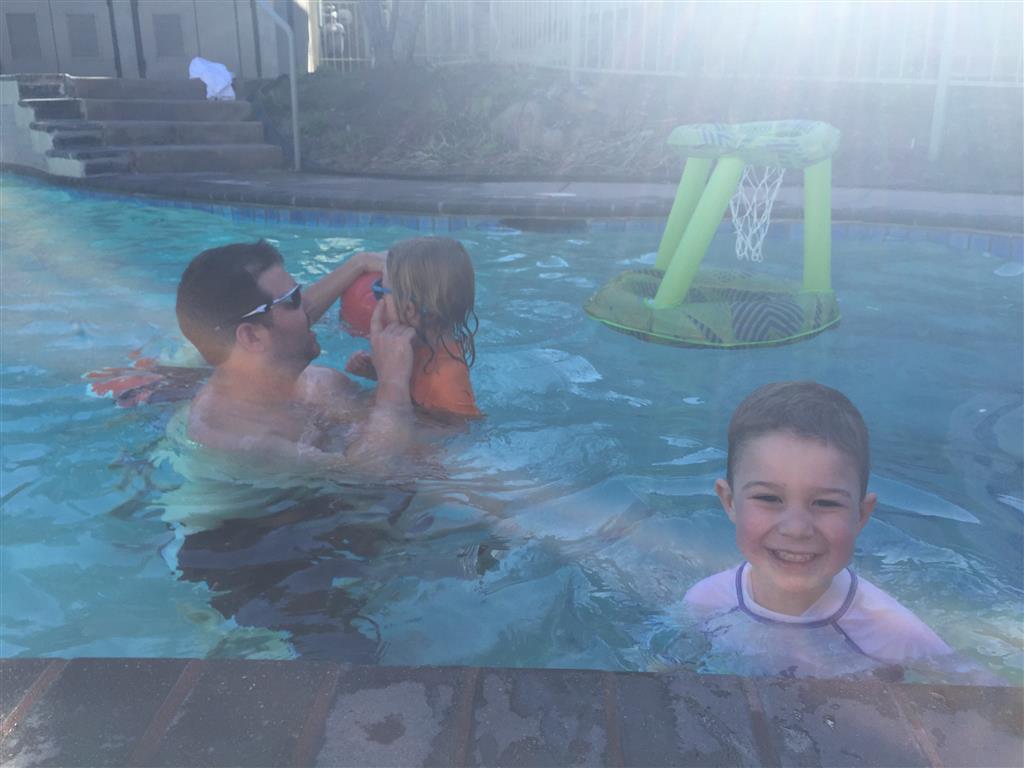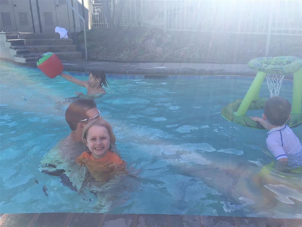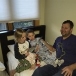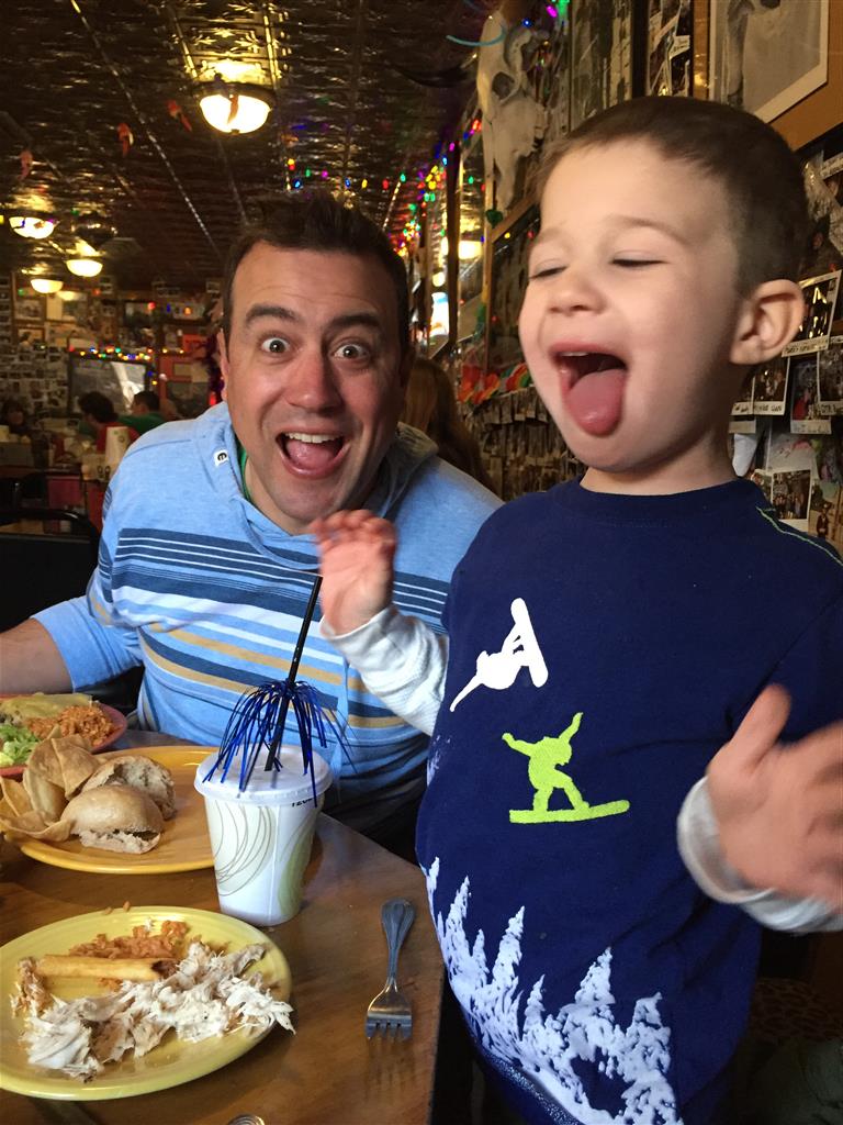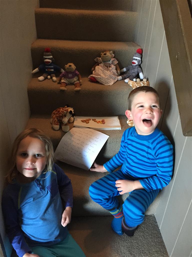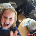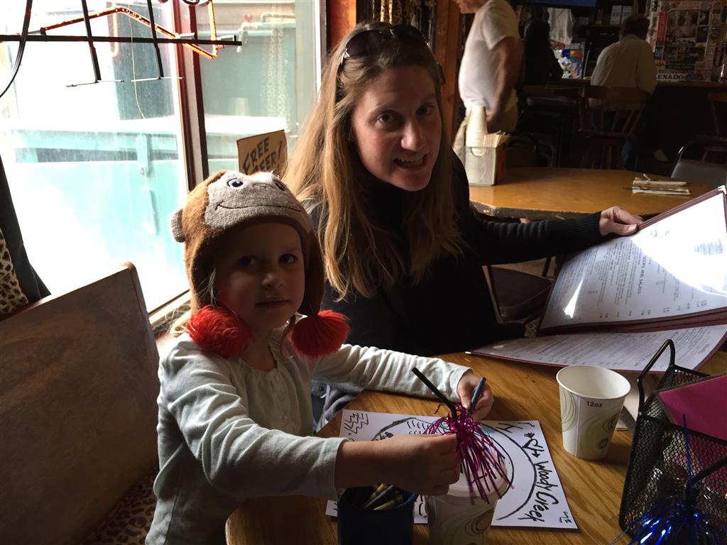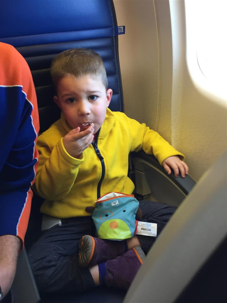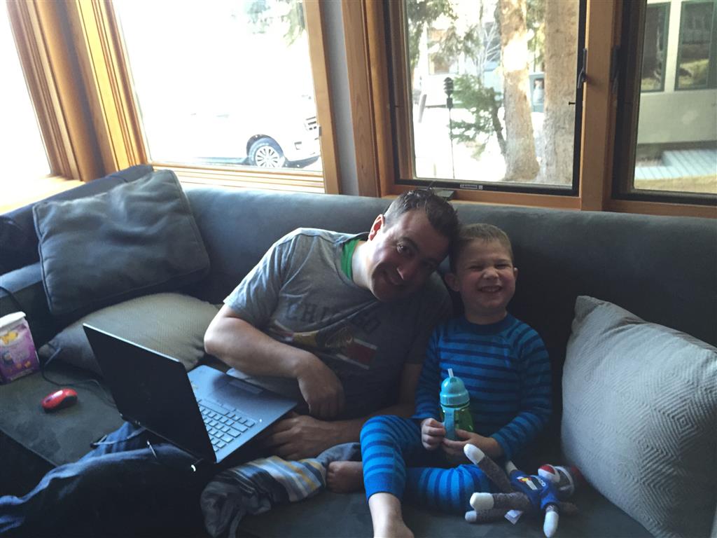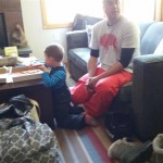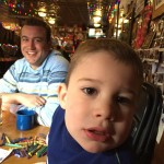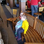 Eleanor and Henry hit the slopes this week for some spring skiing. They have both tried skiing before, but this year was the first time that they really seemed to “get” it. By the second day, they were both coming down the bunny hill with minimal help, and by the end Eleanor was had totally conquered it. She could get down the hill all by herself, making awesome “s” turns and turning to a stop at the bottom. Henry had good balance and could make turns by himself, but sometimes got a little distracted and needed some help slowing down. They were both really excited about riding the chair lift, and by the end they were both getting off without falling. We had a couple of great instructors, and Eleanor really opened up to both of them, telling them all about her school, her cousins and her stuffed friends. She and Henry apparently loved to sing songs while riding the chair lift. Mom, Dad and Lala and Uncle B got to ski a few runs with the kiddos, and it was awesome to see how excited they were. From the top of the lift, they both announced “Follow Me!” and took off down the hill! Eleanor had been a bit apprehensive about the ski trip, but one night she described the trip like this, “I thought it was going to be the worst day ever, but it turned out to be the best day ever!”. In addition to skiing, the kids got to go tubing down the hill, and enjoyed a really fun climbing gym at the bottom of the mountain. One night, we went back up the mountain for dinner and smores, and Henry slid down a covered tube slide that dumped him out so he slid across the snow. One day after skiing, there was a clown doing “free” balloon animals, and of course Eleanor and Henry both wanted one. Thirty minutes later, they each had a cool balloon monkey in a tree. Eleanor requested a pink monkey, and Henry initially requested a train, but when the clown couldn’t do that, he asked for a brown monkey. We also got to meet up with Aunt Jane, cousin Adam, and soon-to-be-cousin-in-law Begonia for a relaxing carry out dinner.