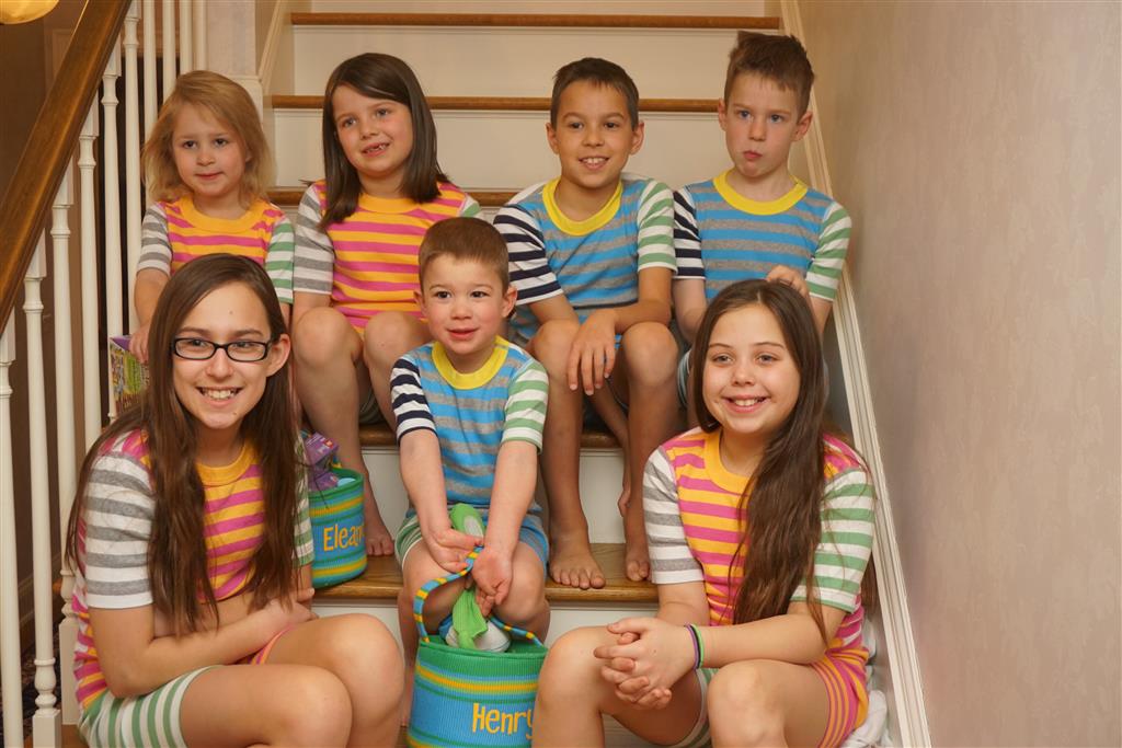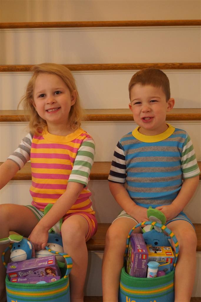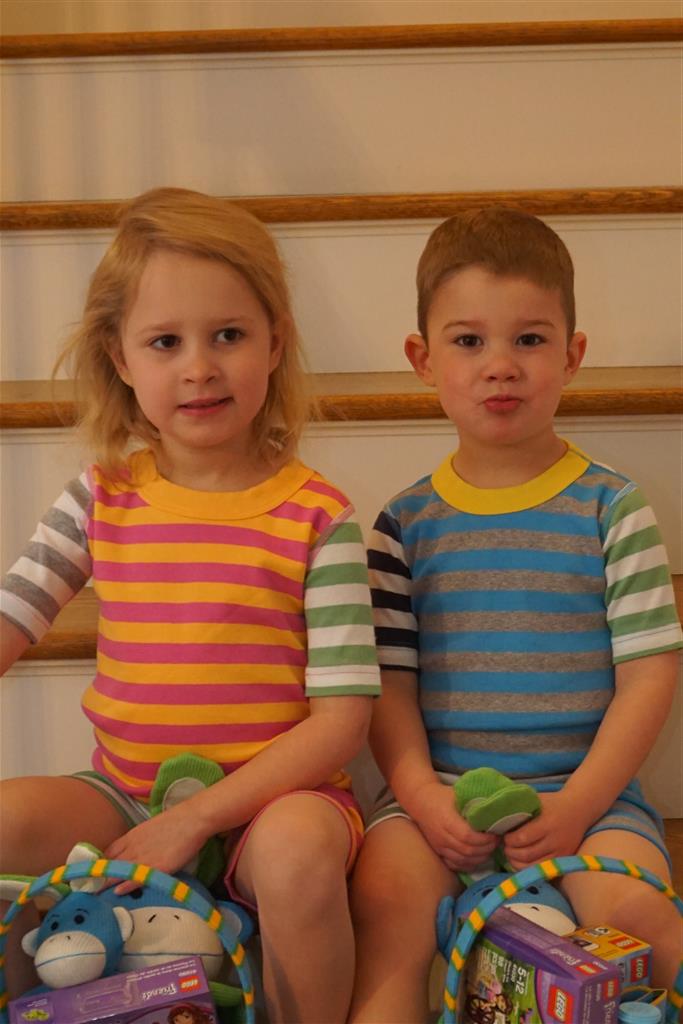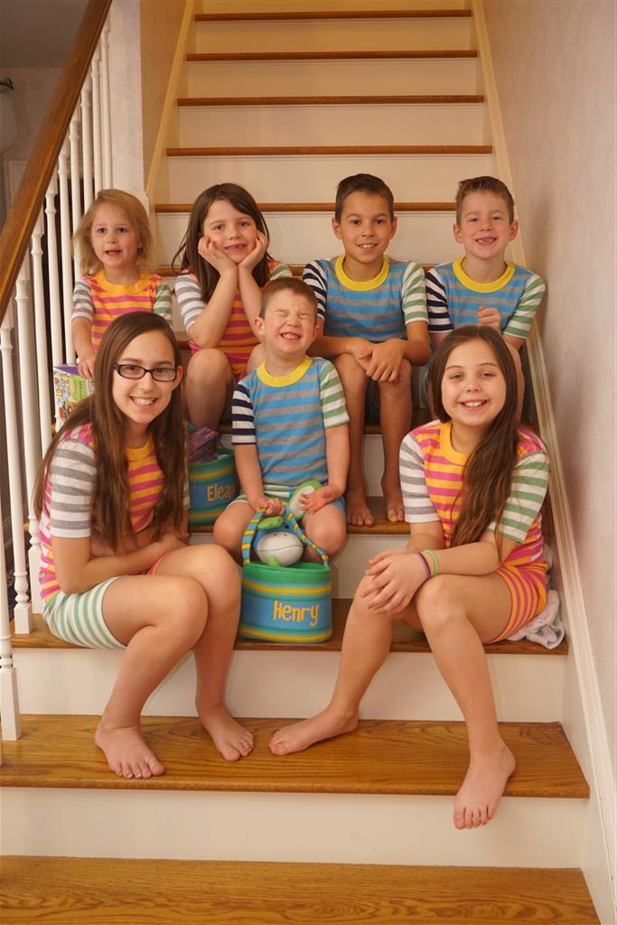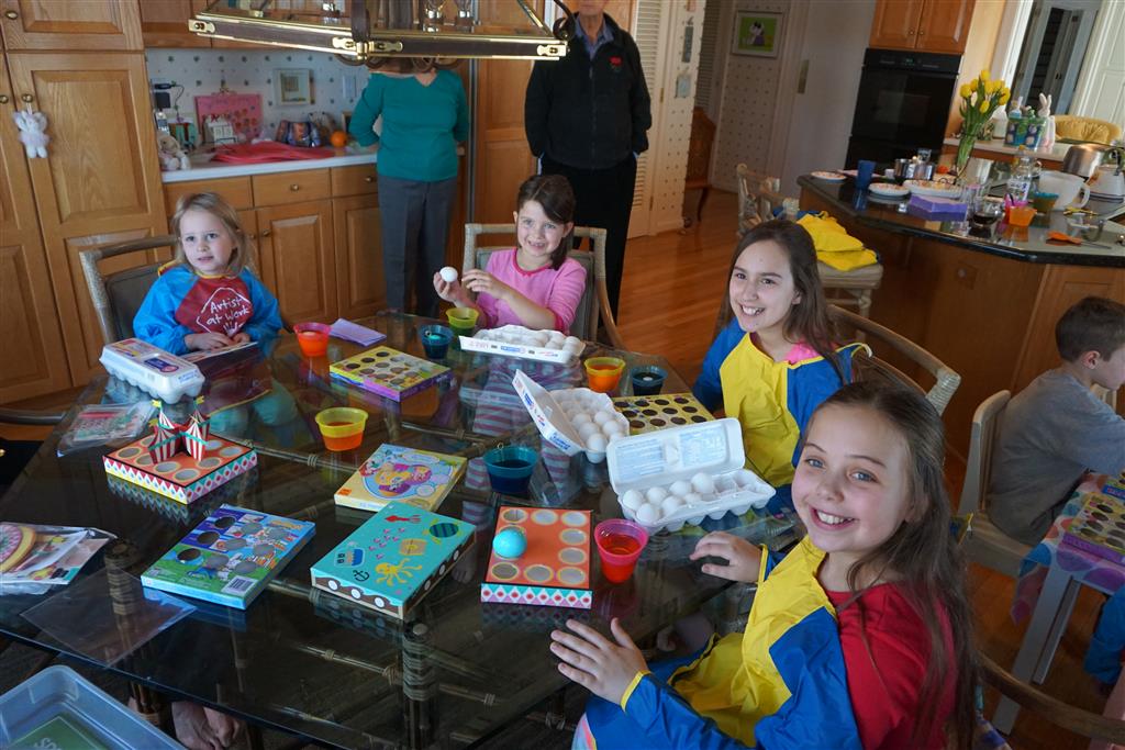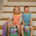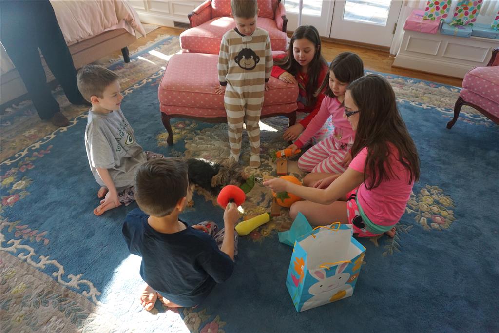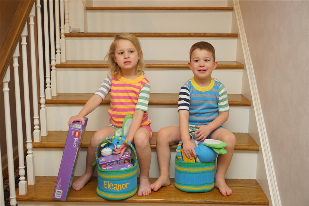 Henry and Eleanor celebrated Easter this week with lots of fun at Grandma and Grandpa’s house. Mackenzie, Jack, Ben, Mahlia, Brooke and Buddy all joined in on the fun. There were new sleeping arrangements, and both Henry and Eleanor were thrilled with their new sheets. I asked Eleanor, “How is your rocket ship bed, is it good?” and she replied, “It’s not good, it’s great!”. Ha! We made it go Gino’s for a pizza dinner, launched some rockets, died some Easter eggs, rode some trikes and generally had a great time.