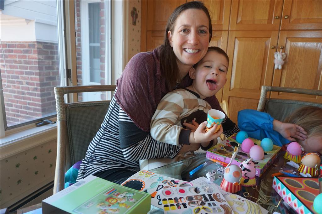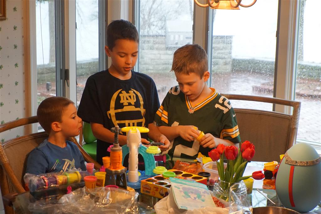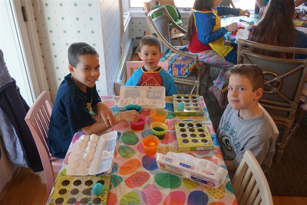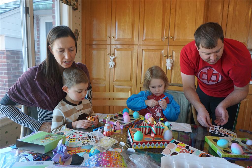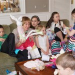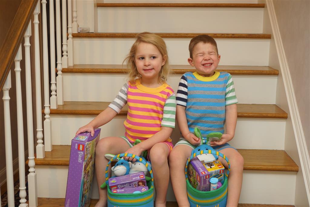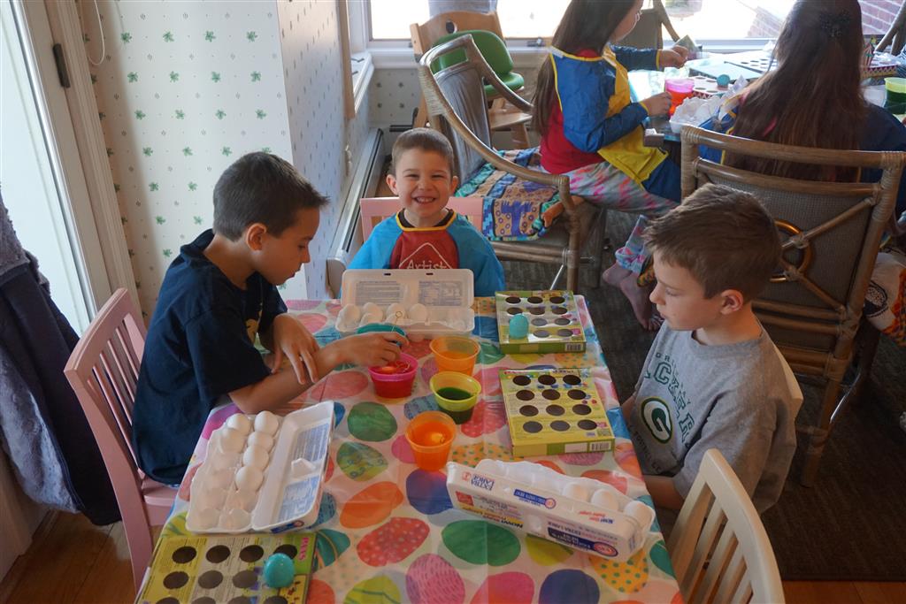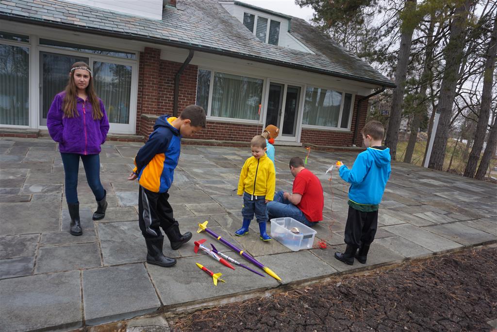 Henry and Eleanor celebrated Easter this week with lots of fun at Grandma and Grandpa’s house. Mackenzie, Jack, Ben, Mahlia, Brooke and Buddy all joined in on the fun. There were new sleeping arrangements, and both Henry and Eleanor were thrilled with their new sheets. I asked Eleanor, “How is your rocket ship bed, is it good?” and she replied, “It’s not good, it’s great!”. Ha! We made it go Gino’s for a pizza dinner, launched some rockets, died some Easter eggs, rode some trikes and generally had a great time.