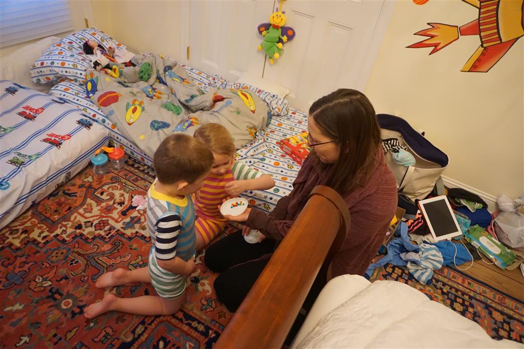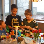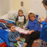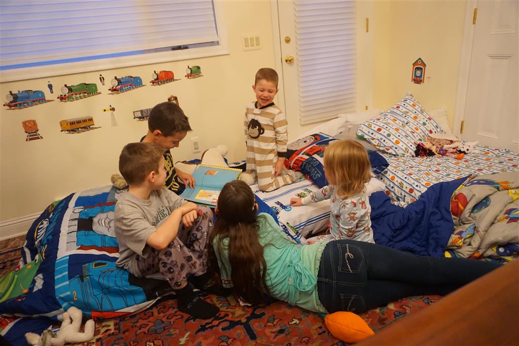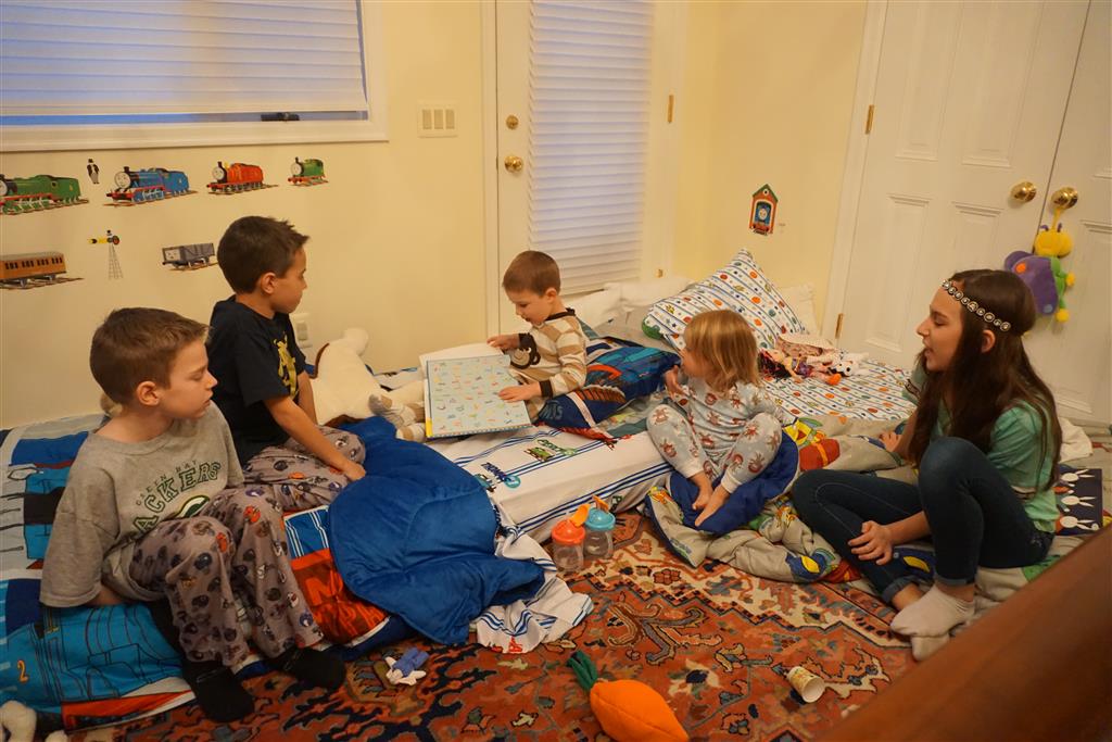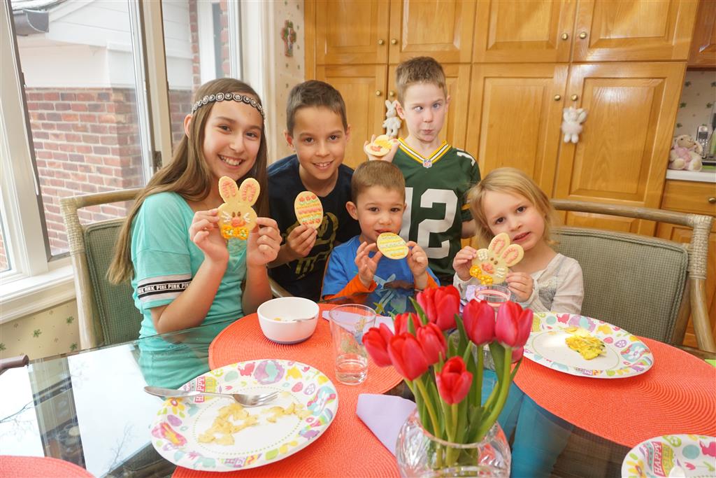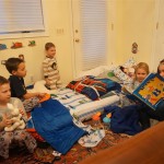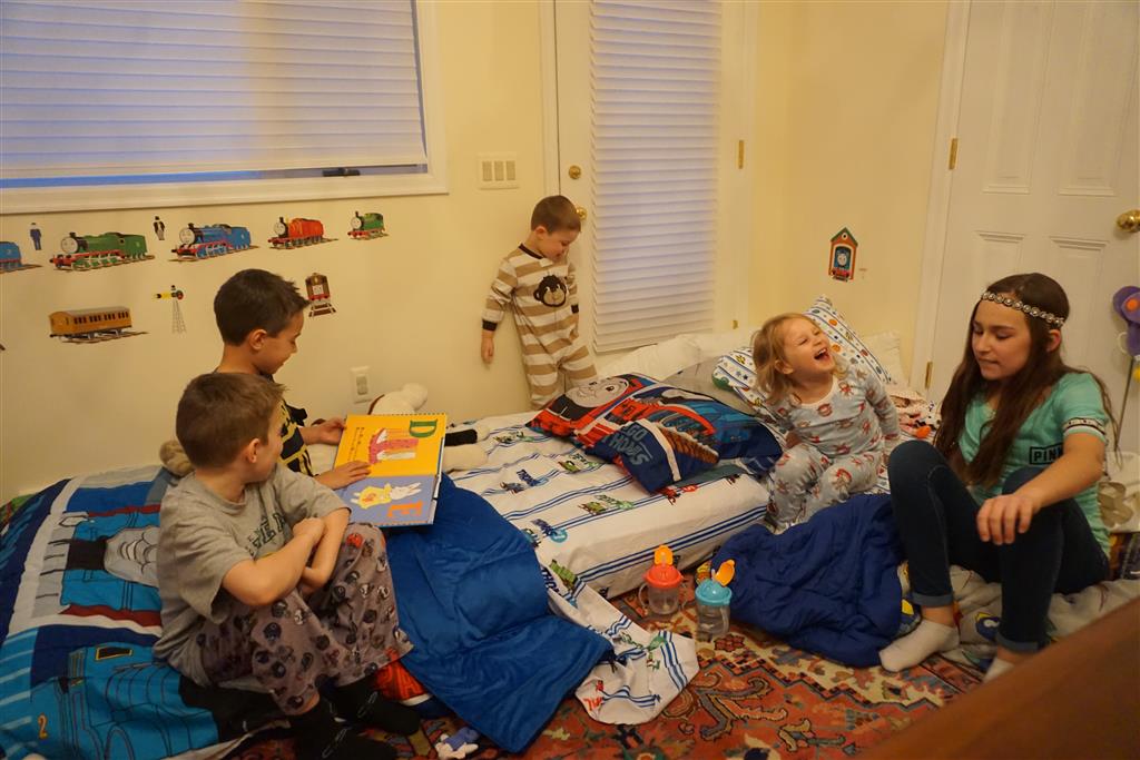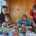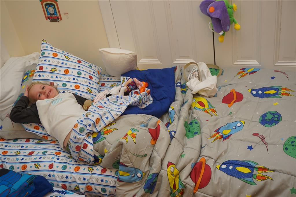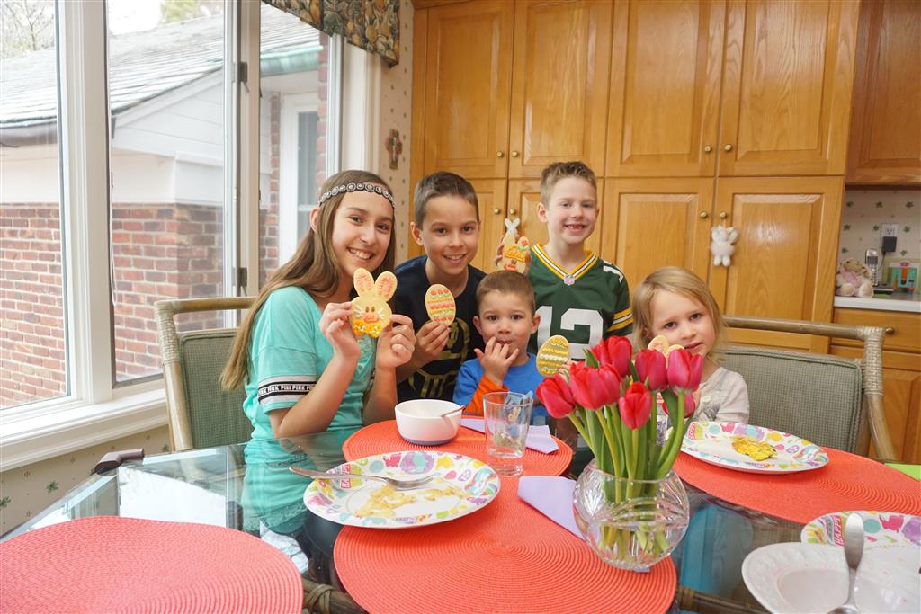 Henry and Eleanor celebrated Easter this week with lots of fun at Grandma and Grandpa’s house. Mackenzie, Jack, Ben, Mahlia, Brooke and Buddy all joined in on the fun. There were new sleeping arrangements, and both Henry and Eleanor were thrilled with their new sheets. I asked Eleanor, “How is your rocket ship bed, is it good?” and she replied, “It’s not good, it’s great!”. Ha! We made it go Gino’s for a pizza dinner, launched some rockets, died some Easter eggs, rode some trikes and generally had a great time.