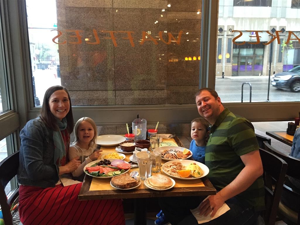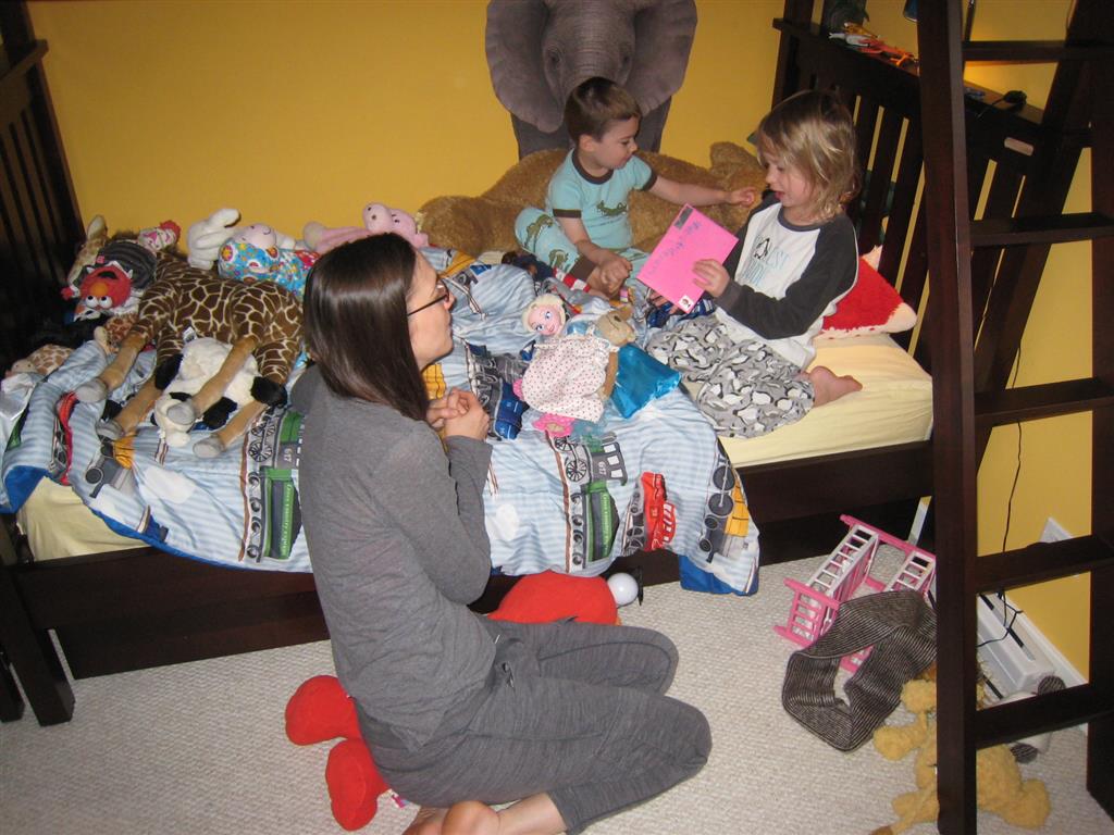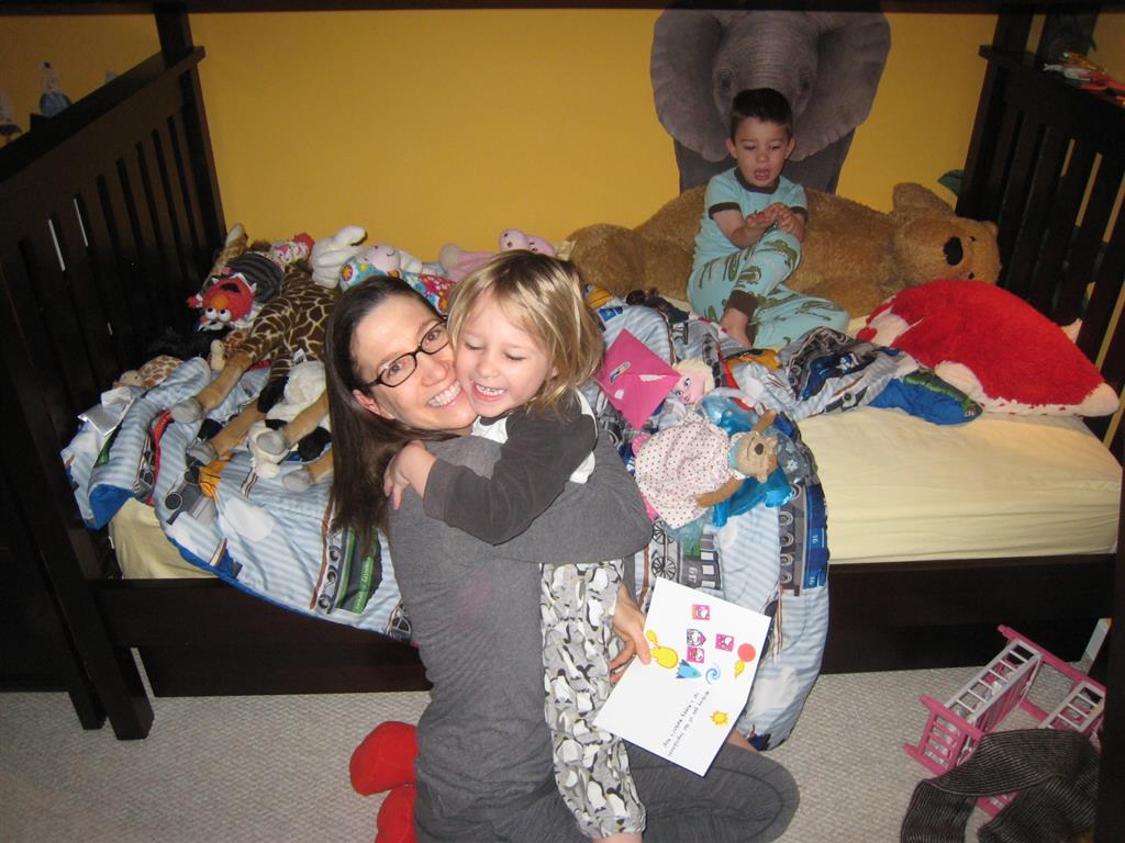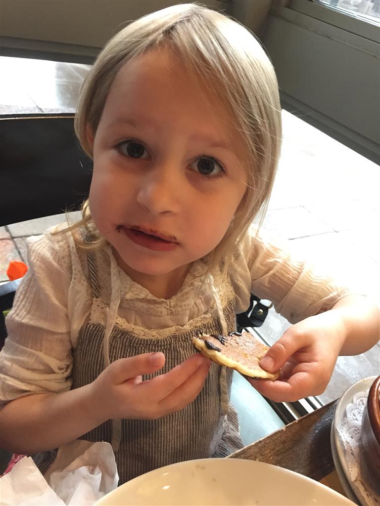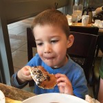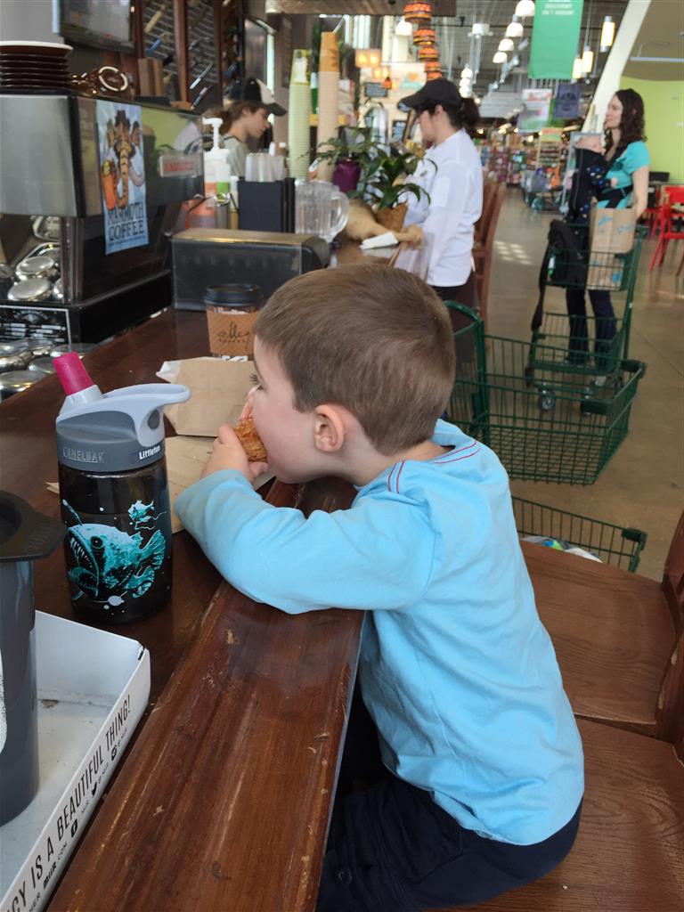 Eleanor and Henry celebrated Mother’s Day this week with a fun breakfast out. Eleanor told Mom on Saturday that she should pick where we go for breakfast, even if it wasn’t Whole Foods, since it was going to be Mother’s Day :) The next morning when Mom picked Eggsperience, Eleanor said, “No, I want to go to Whole Foods!”. Mom reminder her of what she had said yesterday, to which Eleanor replied, “I know, but I thought you would pick Whole Foods!”. It turned out well for everyone, as they had chocolate chip pancakes where we went, and Eleanor and Henry gobbled them up. Eleanor was also very excited to give Mom the special card that she picked out with Lala and decorated, sealed and stamped all by herself. She was very proud of it!