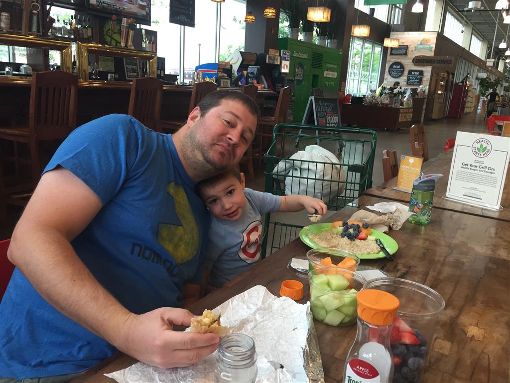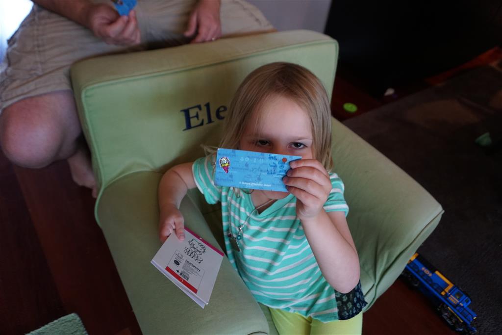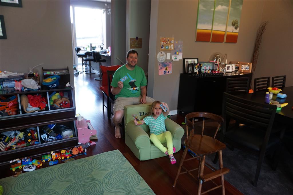 We kicked off the holiday weekend with an action packed Saturday which included park time, lunch out, and a trip to an ice cream shop. On Sunday, we did breakfast at Whole Foods, followed by our first family movie event – Frozen. Eleanor was super excited, and Dad has been singing the songs from the movie ever since. Then, Uncle B, Lala, Tia and Uncle Jay came over for some playtime and BBQ. Uncle B got to try out the new tee ball set, and learned the rules that Eleanor and Henry play by, which results in a home run every time :) We finished off the night with some matching pajamas. Monday was a bit rainy, so we did some shrinkey dinks, and watched family movie #2, Cars. Eleanor didn’t love it, and Henry showed only medium interest.