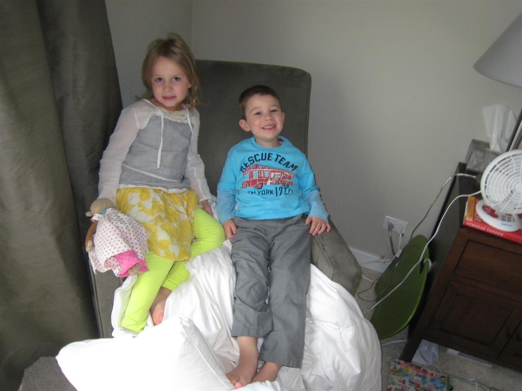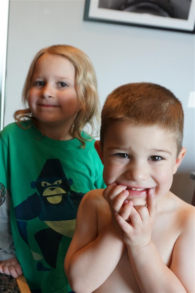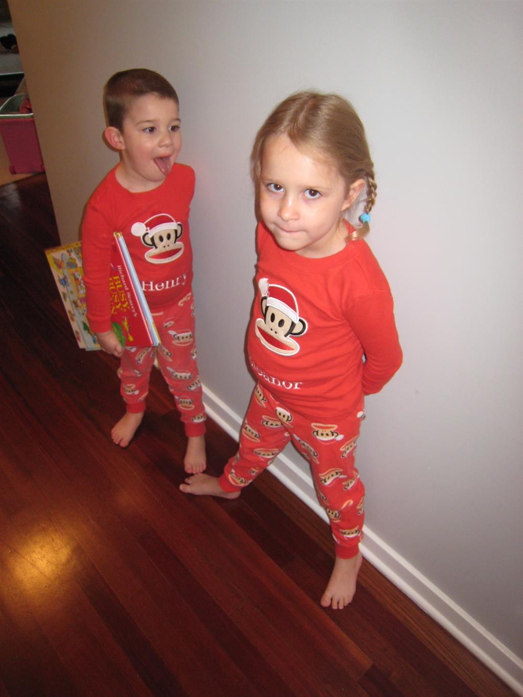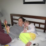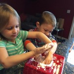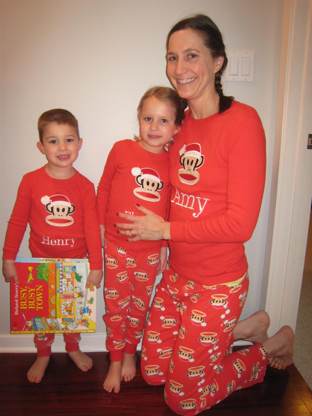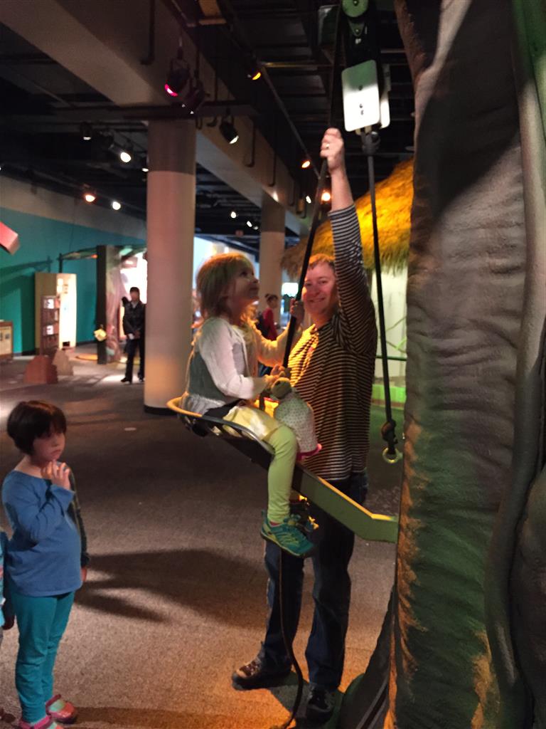 Saturday we stayed home most of the day and did some science experiments, and made some new felt puppets. Henry gave me a challenging one by wanting a train puppet, and Eleanor made things easy asking for a banana. Sunday morning the kids got up before either Mom or Dad, and decided to get dressed into their swimsuits and play “pool”. We had a fun lunch out and then explored the Nature Museum for a few hours. We finished up the week with some matching pajamas, and matching braids for Mom and Eleanor.