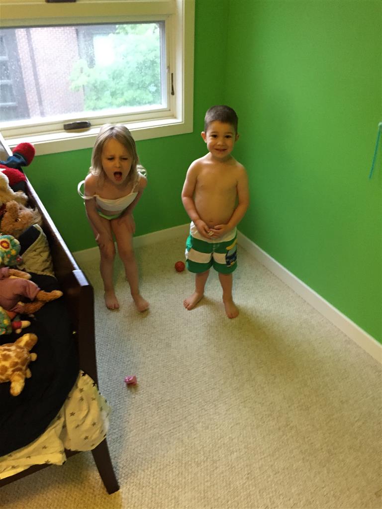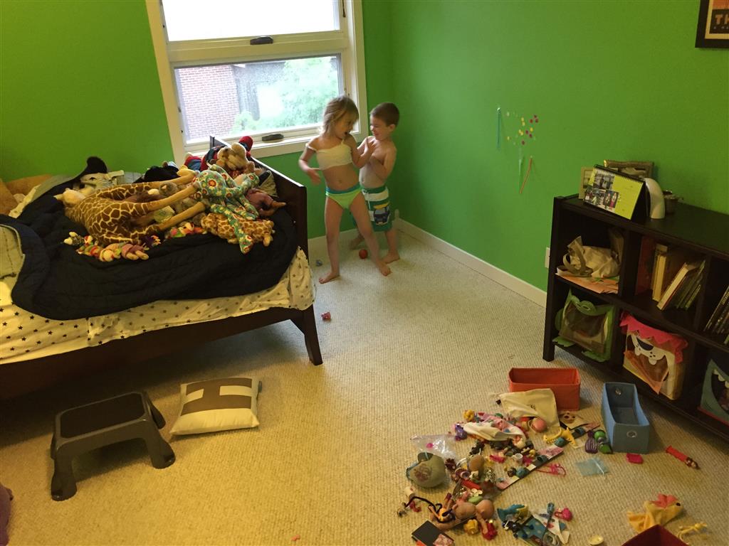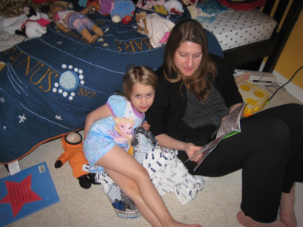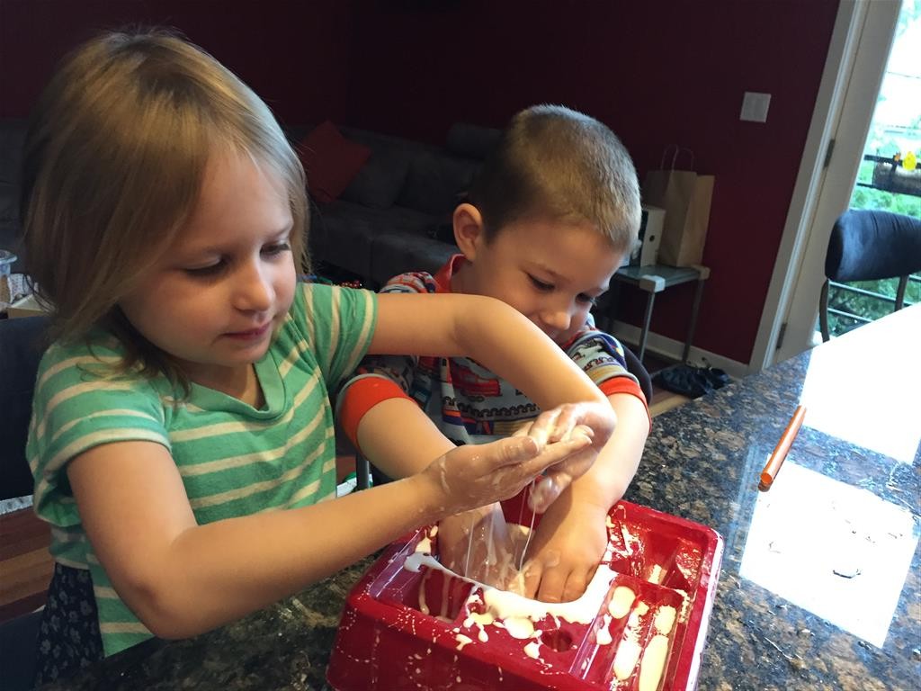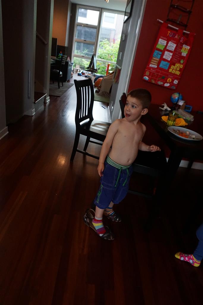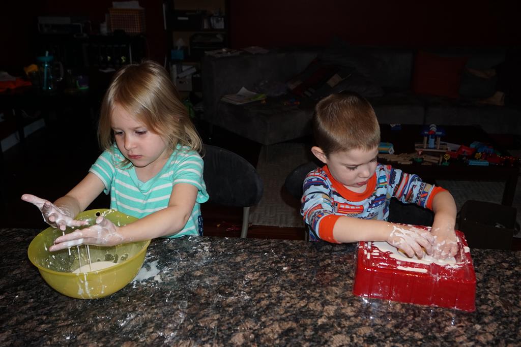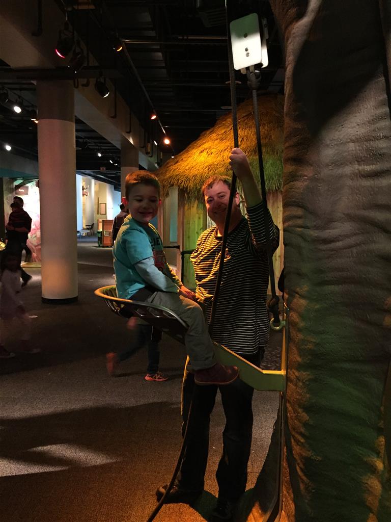 Saturday we stayed home most of the day and did some science experiments, and made some new felt puppets. Henry gave me a challenging one by wanting a train puppet, and Eleanor made things easy asking for a banana. Sunday morning the kids got up before either Mom or Dad, and decided to get dressed into their swimsuits and play “pool”. We had a fun lunch out and then explored the Nature Museum for a few hours. We finished up the week with some matching pajamas, and matching braids for Mom and Eleanor.