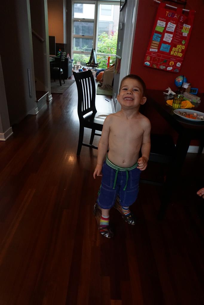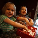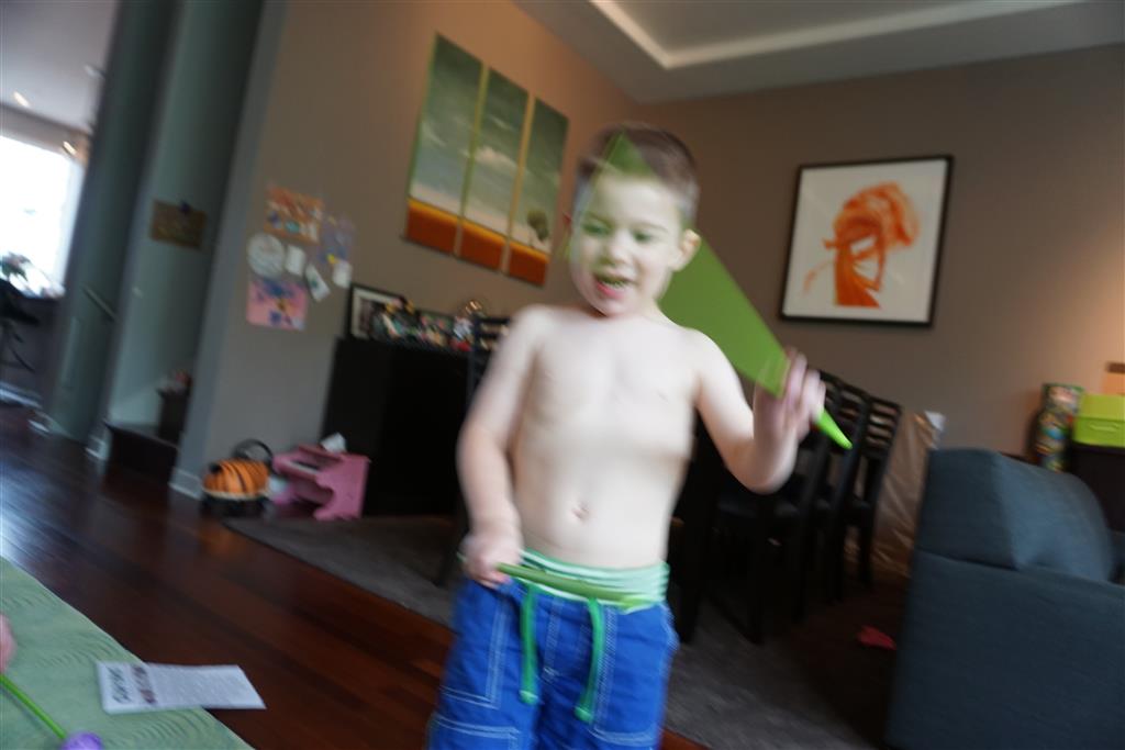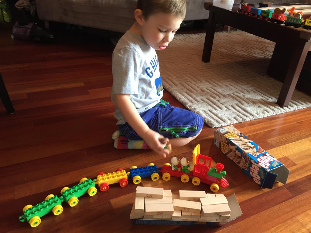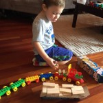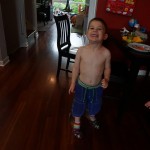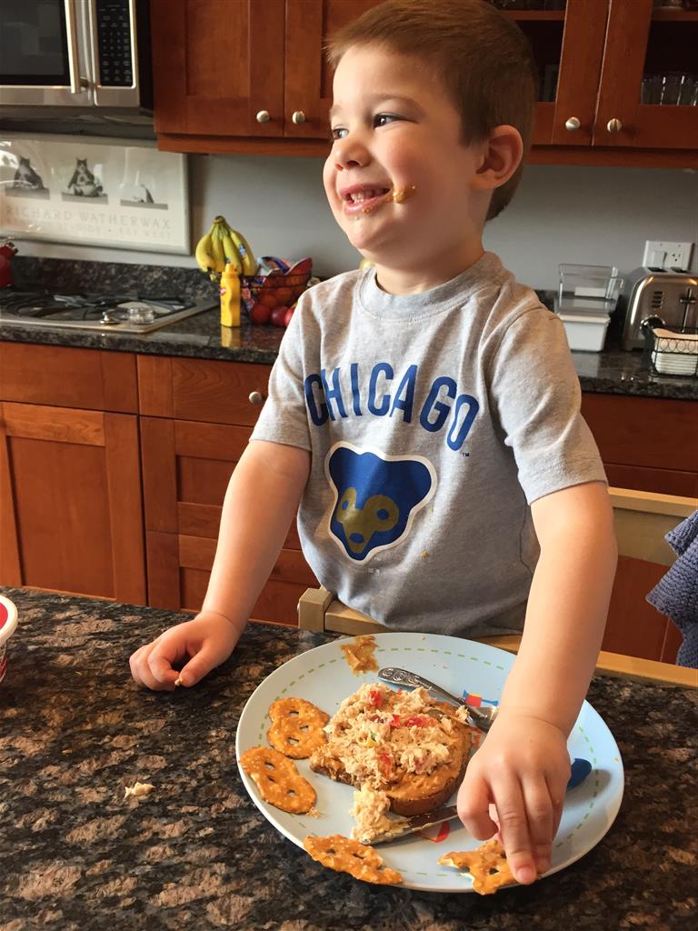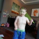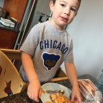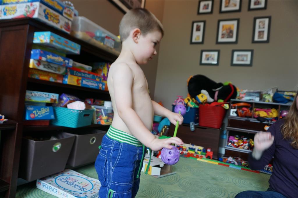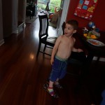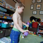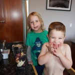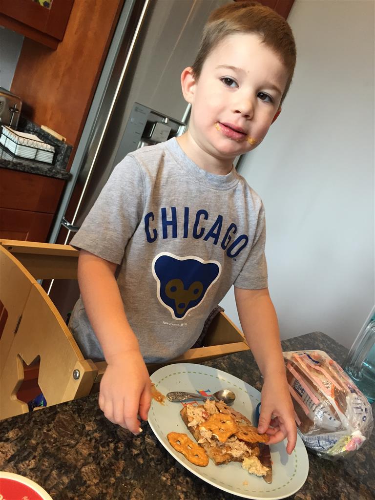 For lunch on Friday, Henry requested (and then ate) toast with a layer of cream cheese, then a layer of peanut butter, followed by a layer of Roman tuna salad on that, topped off with pretzels. Uh, yum? Also, Henry is getting much better with his pencil/crayon grip and can make a few letters of his own. I noticed particularly when he was playing tic-tac-toe with Mom and lunch on Sunday and he was making excellent O’s that fit properly inside the board. He also beat Mom at that game, due mostly to Eleanor providing timely distractions :)