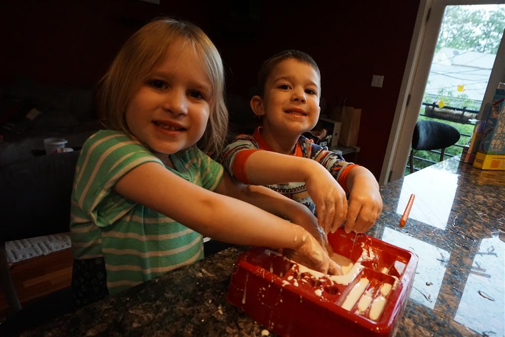 Another week of unusually cold and rainy weather kept Eleanor and Henry inside most of the week, but we still managed to have some fun. Eleanor started her last unit in school, which involves looking back to the beginning of the year and seeing how far she has come, as well as looking forward to next year in Senior Kindergarten. She made a drawing for the hall bulletin board where she was supposed to draw her hopes and dreams for next year. She choose “Learning my lowercase letters” and drew a few letters that she already knew.