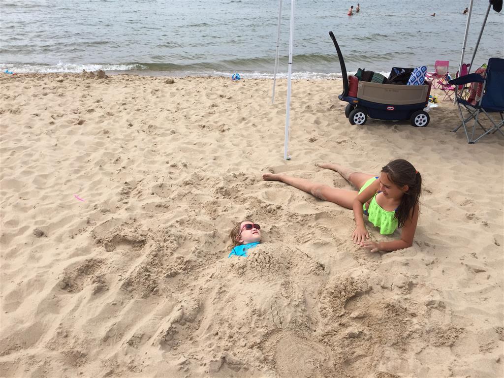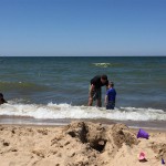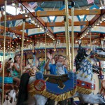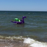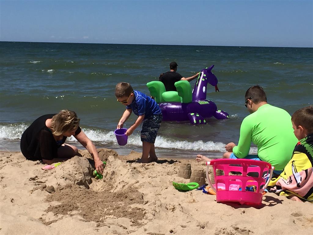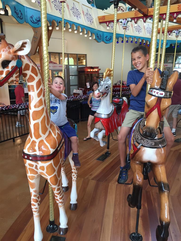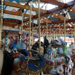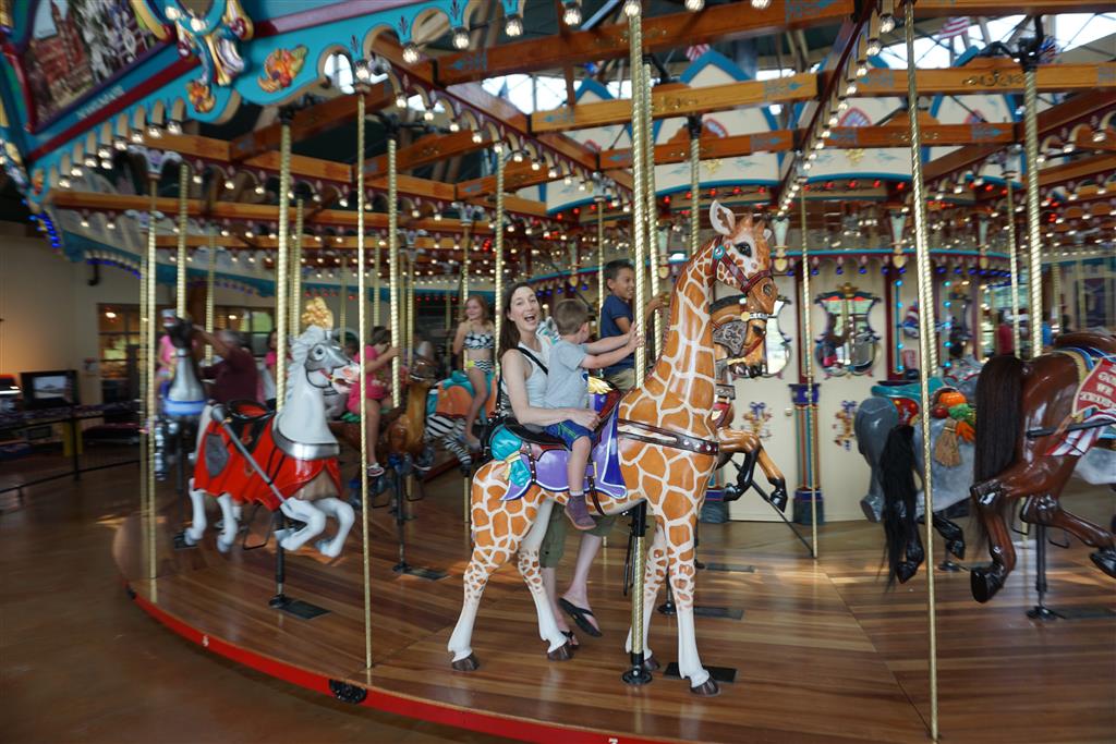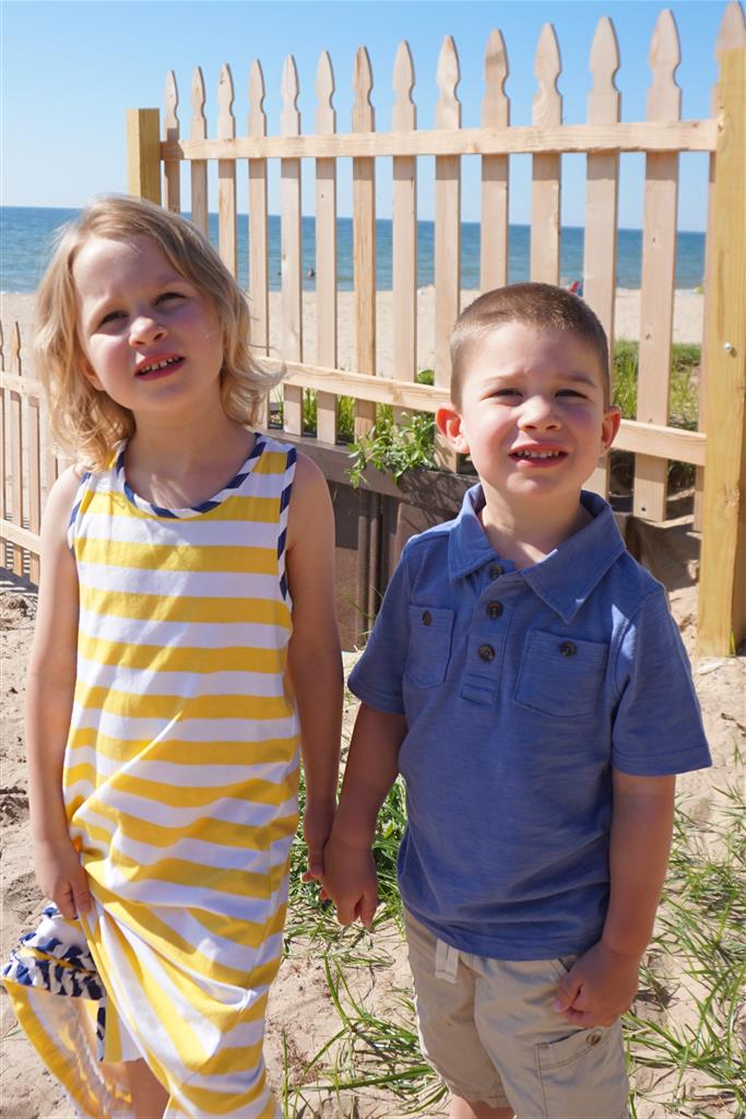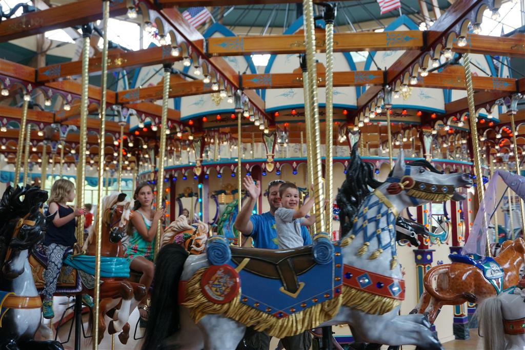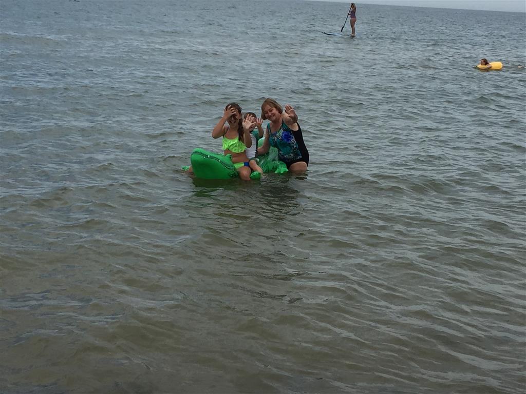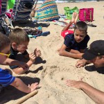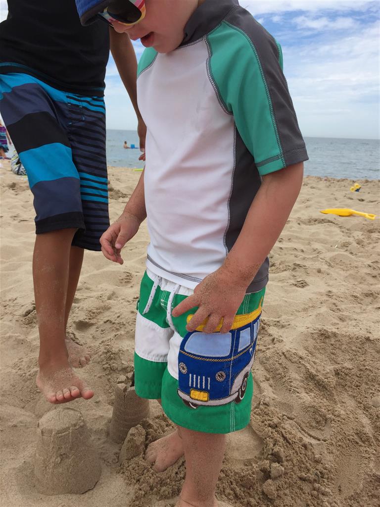 Eleanor and Henry had a fantastic trip to the beach this week with Grandma, Grandpa, Mackenzie, Jack, Ben, Auntie Susan, Uncle Gabe and Uncle B. Both kids ended up having a lot of fun in the water, which was great to see. Eleanor really liked riding on the inflatable dragon with Mackenzie, and also did some swimming by herself with her arm floaties on. Henry didn’t spend as much time on the rafts, but loved running in and out of the waves and on the second to last day got comfortable enough to swim by himself with his floaties on. We also had lots of fun building and burying in the sand, and made a trip to see the carousel. I asked the kids what their favorite part of the trip was, and Eleanor said “Playing dolls with Mackenzie”, and Henry said “Having a sleepover with Jack and Ben”. While Elanor slept with Mackenzie all week, Henry slept with Mom for the first part of the week. We decided to finally give him a shot at sleeping in the same room as Jack and Ben – and it turned out to be quite the crazy event. They had so much fun that Mom and Dad had to keep coming down to remind them to get some sleep. Finally, after a spilled water bottle necessitated a change of sheets, we had to get a threaten an end to the sleepover. Fortunately, they got right to sleep after that – and Auntie Susan heard Henry say as he woke up the next morning, “Jack, we made it! We had a sleepover!”.