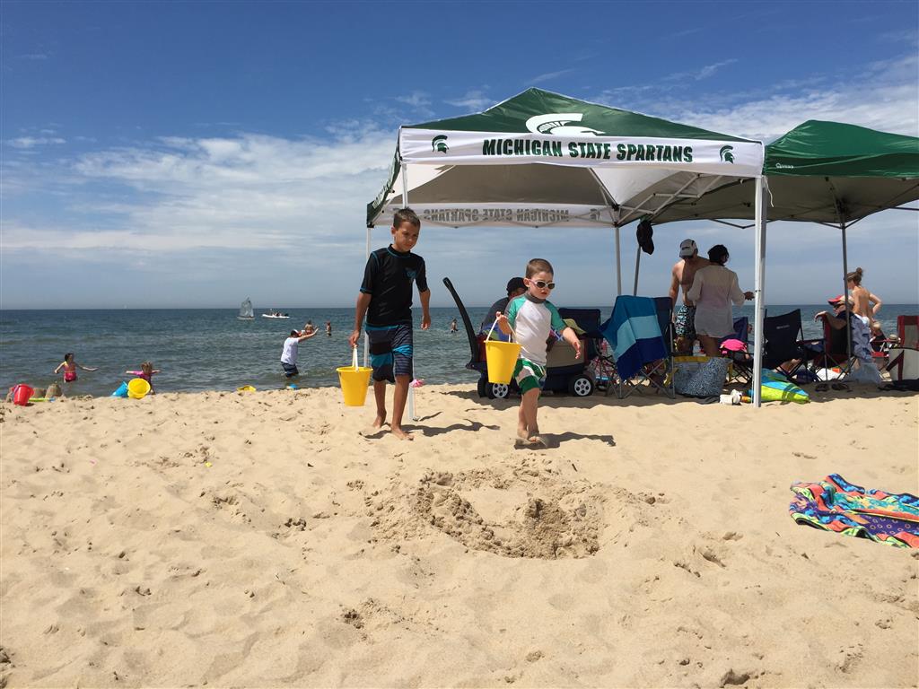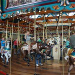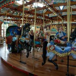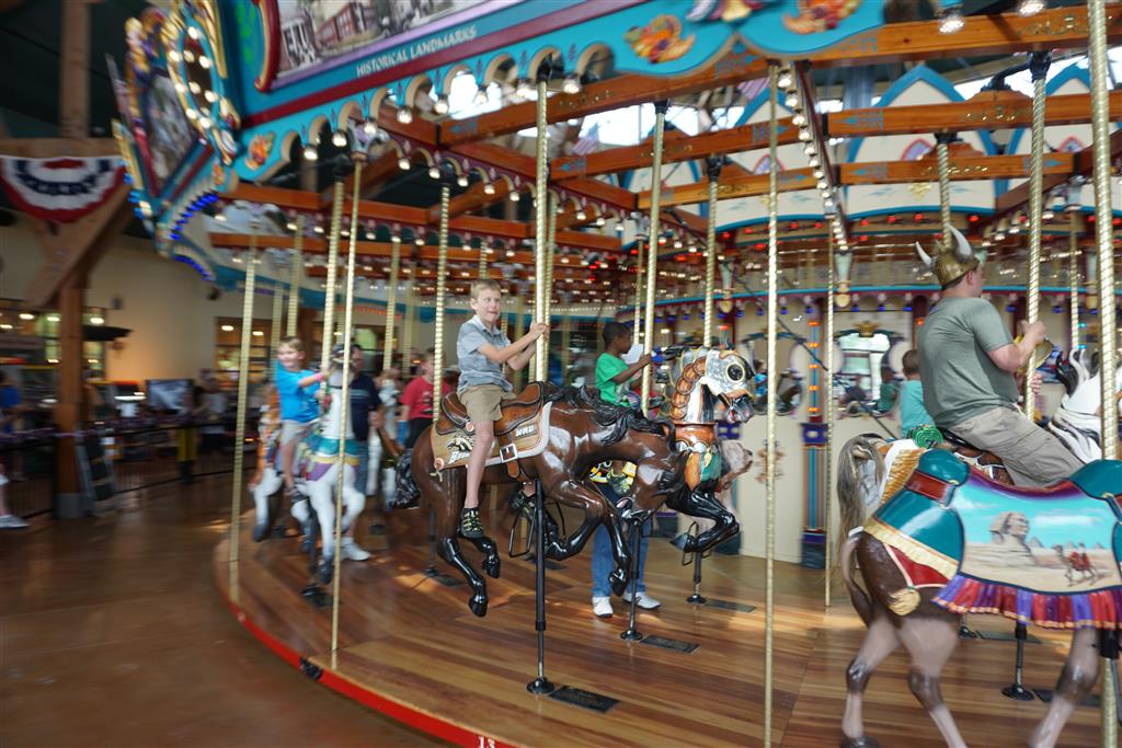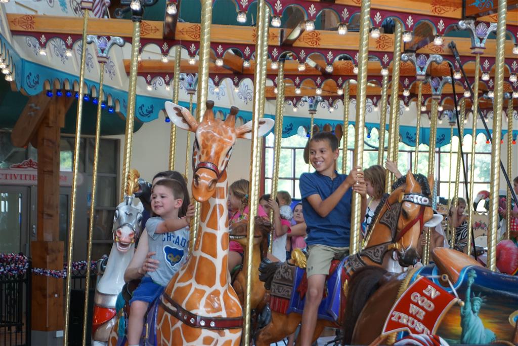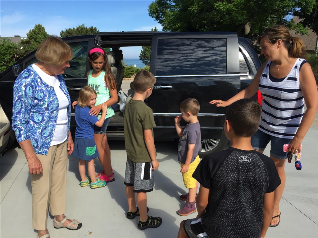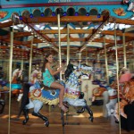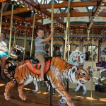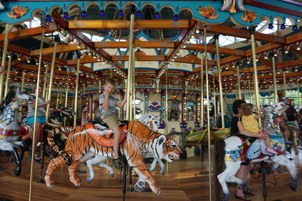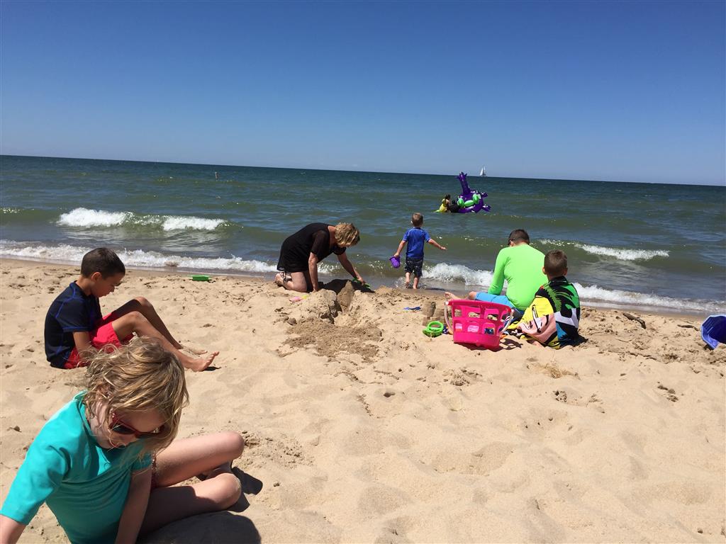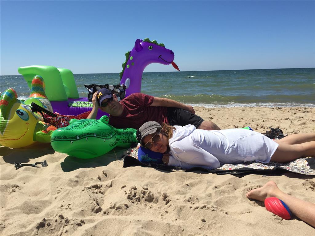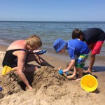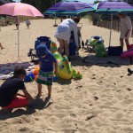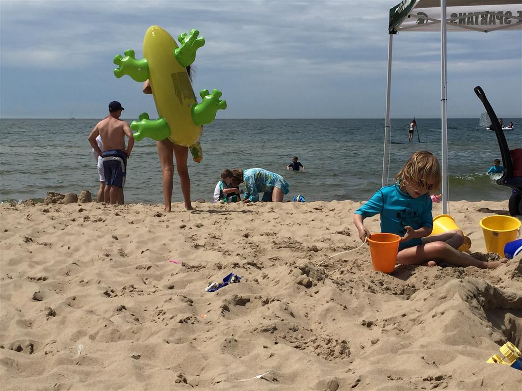 Eleanor and Henry had a fantastic trip to the beach this week with Grandma, Grandpa, Mackenzie, Jack, Ben, Auntie Susan, Uncle Gabe and Uncle B. Both kids ended up having a lot of fun in the water, which was great to see. Eleanor really liked riding on the inflatable dragon with Mackenzie, and also did some swimming by herself with her arm floaties on. Henry didn’t spend as much time on the rafts, but loved running in and out of the waves and on the second to last day got comfortable enough to swim by himself with his floaties on. We also had lots of fun building and burying in the sand, and made a trip to see the carousel. I asked the kids what their favorite part of the trip was, and Eleanor said “Playing dolls with Mackenzie”, and Henry said “Having a sleepover with Jack and Ben”. While Elanor slept with Mackenzie all week, Henry slept with Mom for the first part of the week. We decided to finally give him a shot at sleeping in the same room as Jack and Ben – and it turned out to be quite the crazy event. They had so much fun that Mom and Dad had to keep coming down to remind them to get some sleep. Finally, after a spilled water bottle necessitated a change of sheets, we had to get a threaten an end to the sleepover. Fortunately, they got right to sleep after that – and Auntie Susan heard Henry say as he woke up the next morning, “Jack, we made it! We had a sleepover!”.