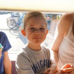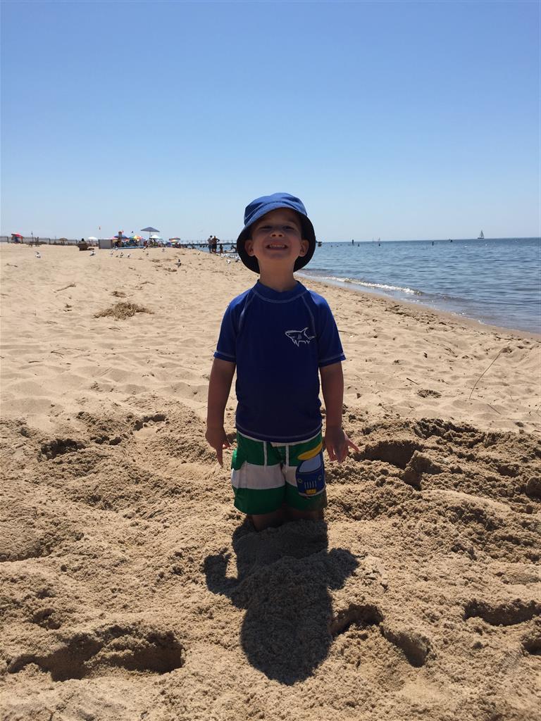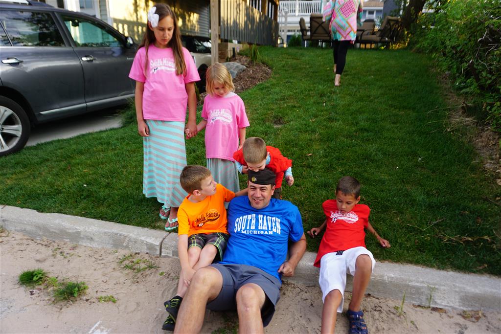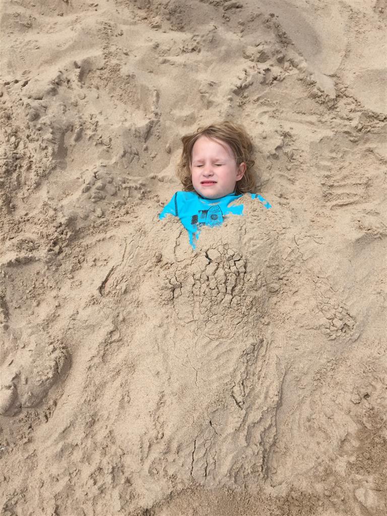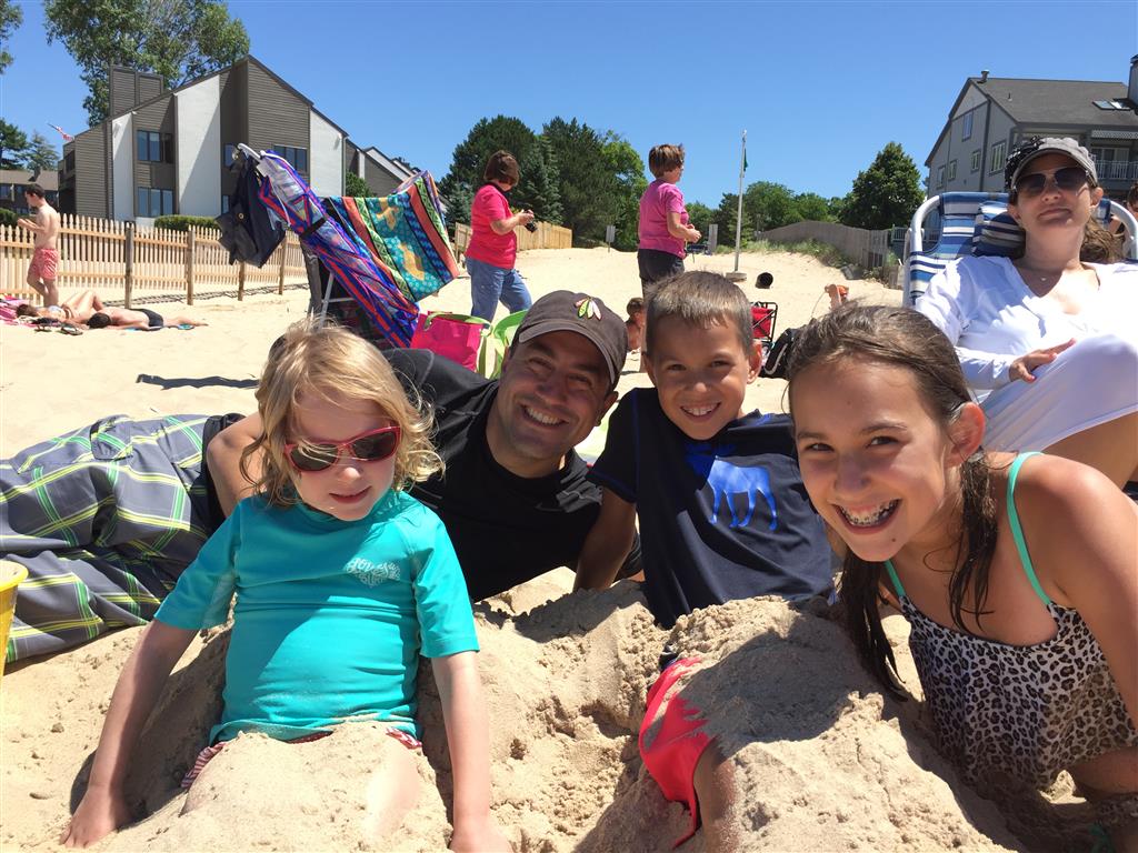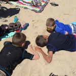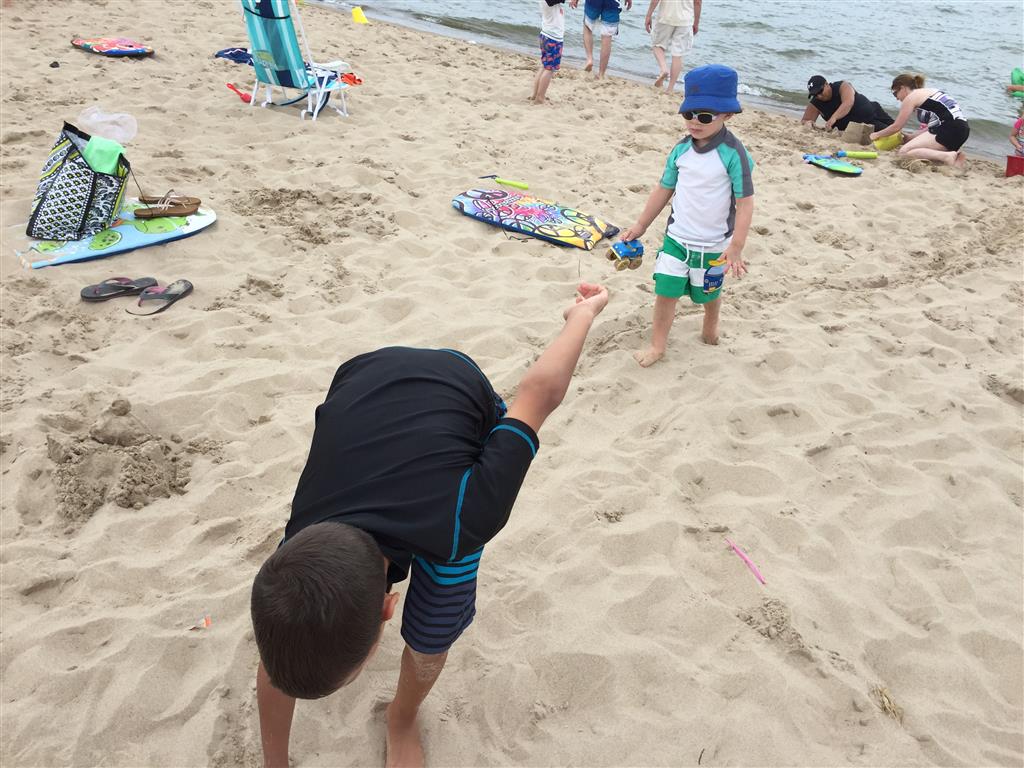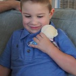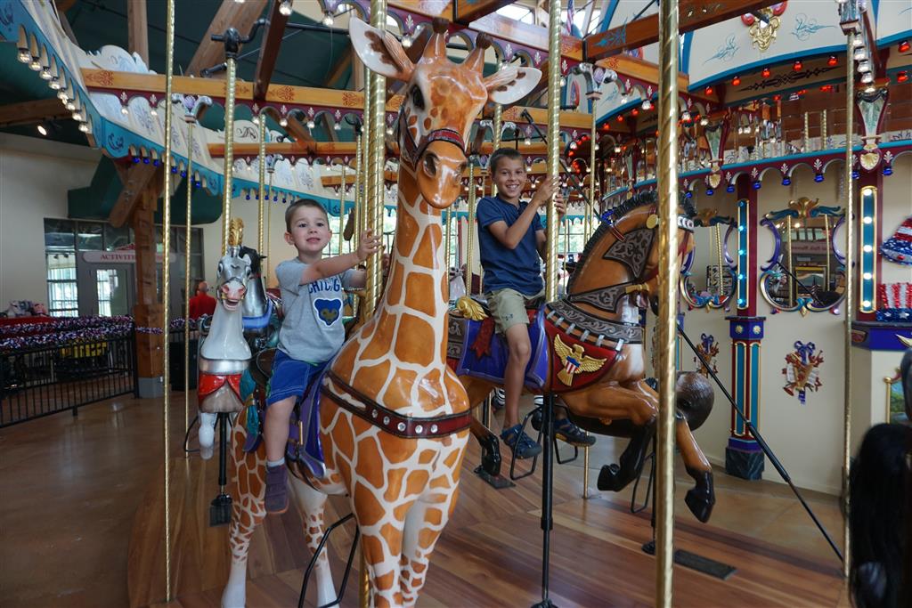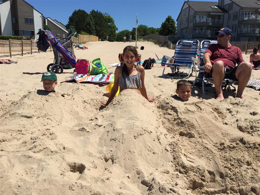 Eleanor and Henry had a fantastic trip to the beach this week with Grandma, Grandpa, Mackenzie, Jack, Ben, Auntie Susan, Uncle Gabe and Uncle B. Both kids ended up having a lot of fun in the water, which was great to see. Eleanor really liked riding on the inflatable dragon with Mackenzie, and also did some swimming by herself with her arm floaties on. Henry didn’t spend as much time on the rafts, but loved running in and out of the waves and on the second to last day got comfortable enough to swim by himself with his floaties on. We also had lots of fun building and burying in the sand, and made a trip to see the carousel. I asked the kids what their favorite part of the trip was, and Eleanor said “Playing dolls with Mackenzie”, and Henry said “Having a sleepover with Jack and Ben”. While Elanor slept with Mackenzie all week, Henry slept with Mom for the first part of the week. We decided to finally give him a shot at sleeping in the same room as Jack and Ben – and it turned out to be quite the crazy event. They had so much fun that Mom and Dad had to keep coming down to remind them to get some sleep. Finally, after a spilled water bottle necessitated a change of sheets, we had to get a threaten an end to the sleepover. Fortunately, they got right to sleep after that – and Auntie Susan heard Henry say as he woke up the next morning, “Jack, we made it! We had a sleepover!”.